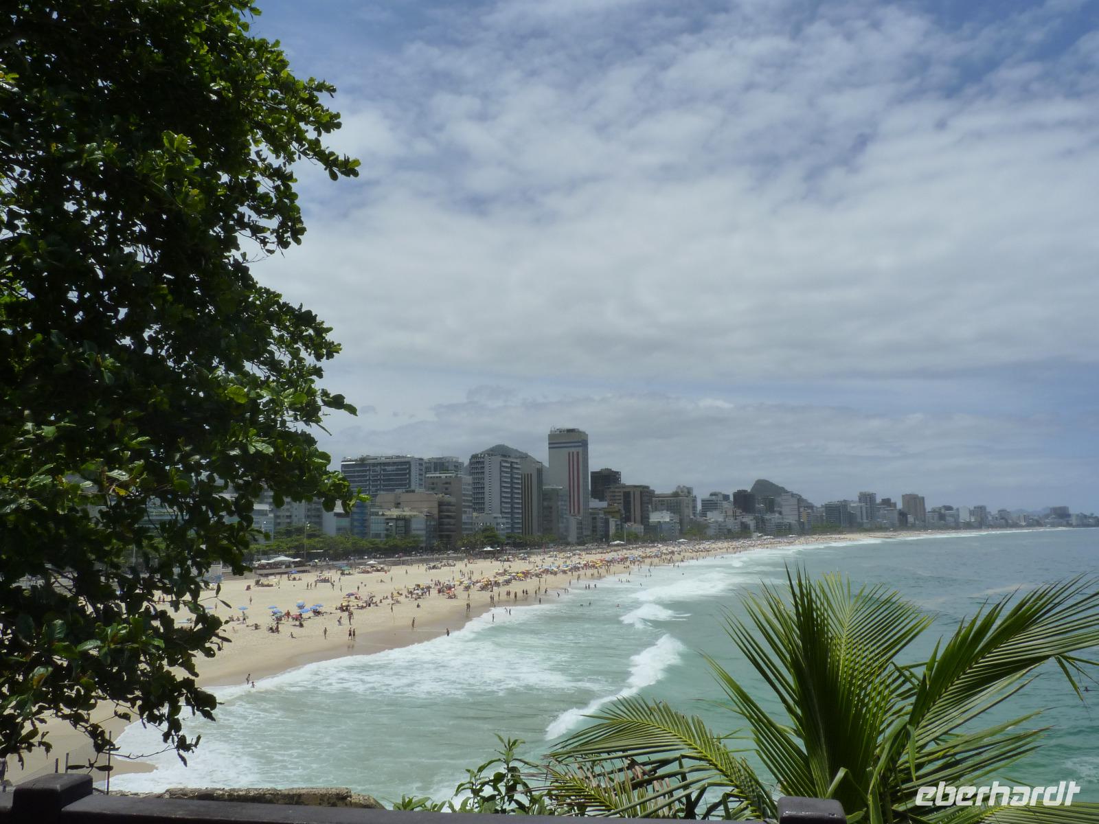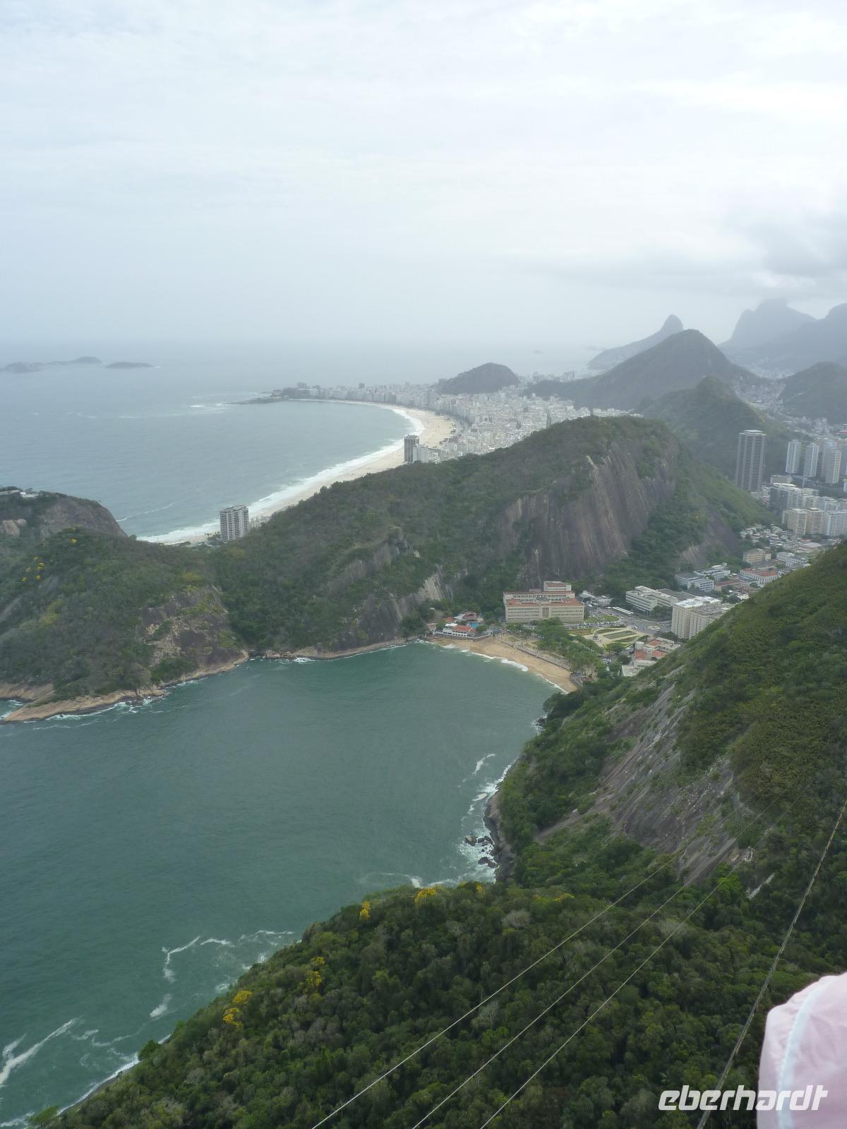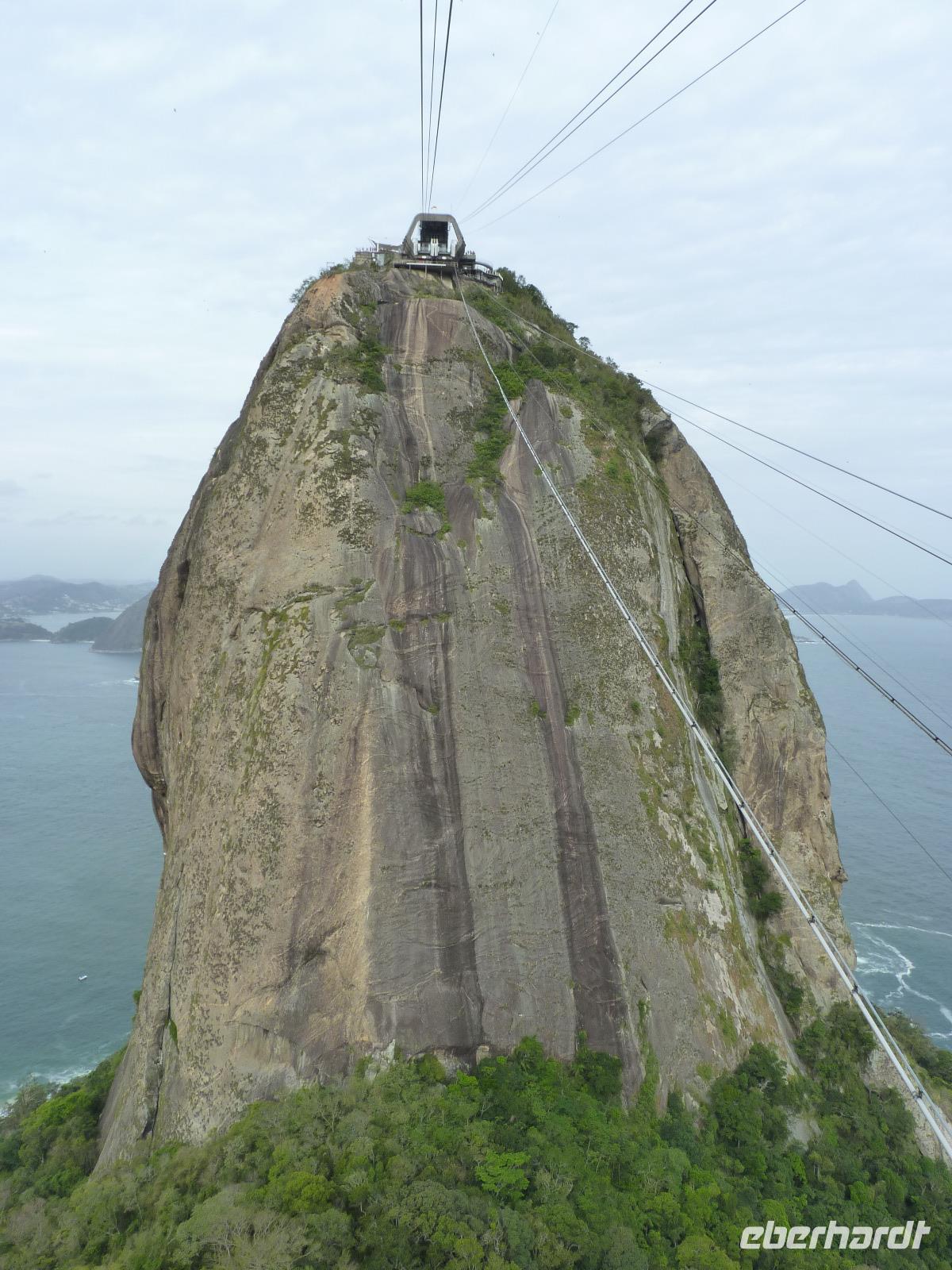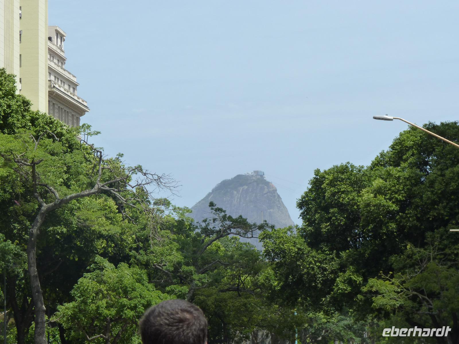 Heute mussten wir etwas früher aus den Betten, den es ging zurück nach Rio de Janeiro und dort wollten wir ja noch einiges sehen. Bereits um 7:00 Uhr verließen wir Paraty und fuhren wieder entlang der Küste zurück zur nach Sao Paulo zweitgrößten Stadt von Brasilien. Wieder wurden wir von Natalina über viel Wissenswertes informiert, so über das Schul- und Krankensystem oder auch darüber, warum mit Brasilia eine „künstliche" Hauptstadt aufgebaut wurde. Angekommen in Rio de Janeiro, war unser erstes Ziel das Sambodromo, wo sich jedes Jahr die 12 großen Sambaschulen des Landes beim Karneval präsentieren. Weiter ging es zur futuristisch gestalteten Catedral Metropolitana, in der es aufgrund der Bauweise selbst bei heißen Temperaturen angenehm kühl ist. Nach einem kleinen Fußweg durch die R. Gonçalves Dias erreichten wir den Ort unseres heutigen Mittagessens, Rio´s schönstes Jugendstil-Cafe, die Confeitaria Colombo. Nicht nur das 1894 erbaute und liebevoll restaurierte Cafe war eine Augenweide, auch das Buffet war sehr gut, so dass wir nach dem Essen satt und zufrieden die weiteren Highlights von Rio in Angriff nehmen konnten. So besichtigten wir zu mindestens von außen die sehr schöne Staatsoper, bevor wir zur berühmten Fliesentreppe Escadaria Selaron fuhren, einer Treppe von 125 Meter Länge und mit über 2000 Fliesen aus aller Welt versehen. Hier stellte ich die Gäste vor die Aufgabe, die Fliese mit der Frauenkirche von Dresden zu finden. Mit ein bisschen Hilfe von außen wurde sie dann entdeckt und war ein gefragtes Fotomotiv. Weiter ging es mit dem Bus zu dem Highlight des Tages, die Auffahrt zu dem vielleicht berühmtesten Wahrzeichen von Rio, dem Zuckerhut. Der Andrang an den Seilbahnen hielt sich in Grenzen, so dass wir sehr schnell die Auffahrt starten konnten. Wir hatten zudem Glück mit dem Wetter, so dass wir wenn auch leicht diesig doch relativ gute Sicht auf Rio, den Corcovado und die Copacabana hatten. Die Abfahrt gestaltete sich dann zu einem kleinen Abenteuer, hatten wir doch auf der Strecke zur Zwischenstation kurz vor dieser einen Stromausfall und durch den plötzlichen Halt fing unsere Gondel stark an zu schwanken. Kurze Zeit später war der Strom wieder da und wir konnten nach wenigen Augenblicken unsere Gondel verlassen und die zweite Strecke abwärts angehen. Diese Fahrt verlief reibungslos. Der Abend stand zur freien Verfügung und so ging der Großteil unserer Gruppe mit mir zur Copacobana, um in einer Strandbar bei angenehmen Temperaturen und mit Livemusik den Tag gemütlich ausklingen zu lassen.