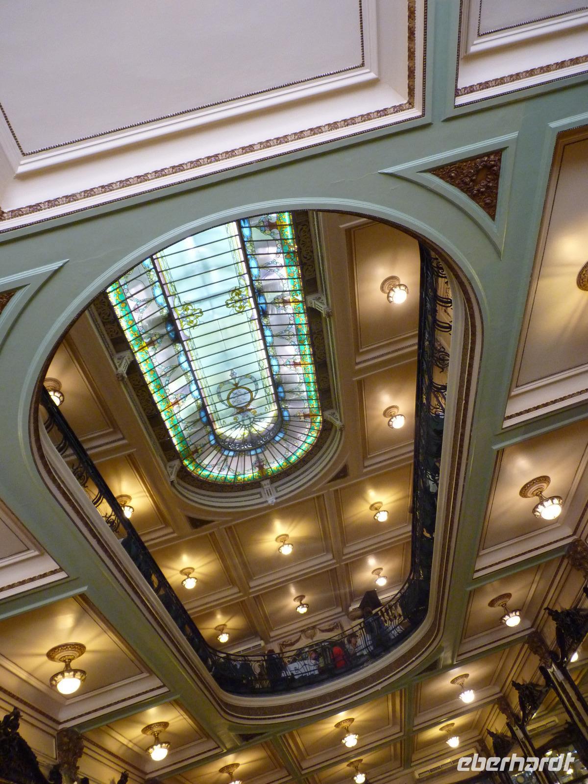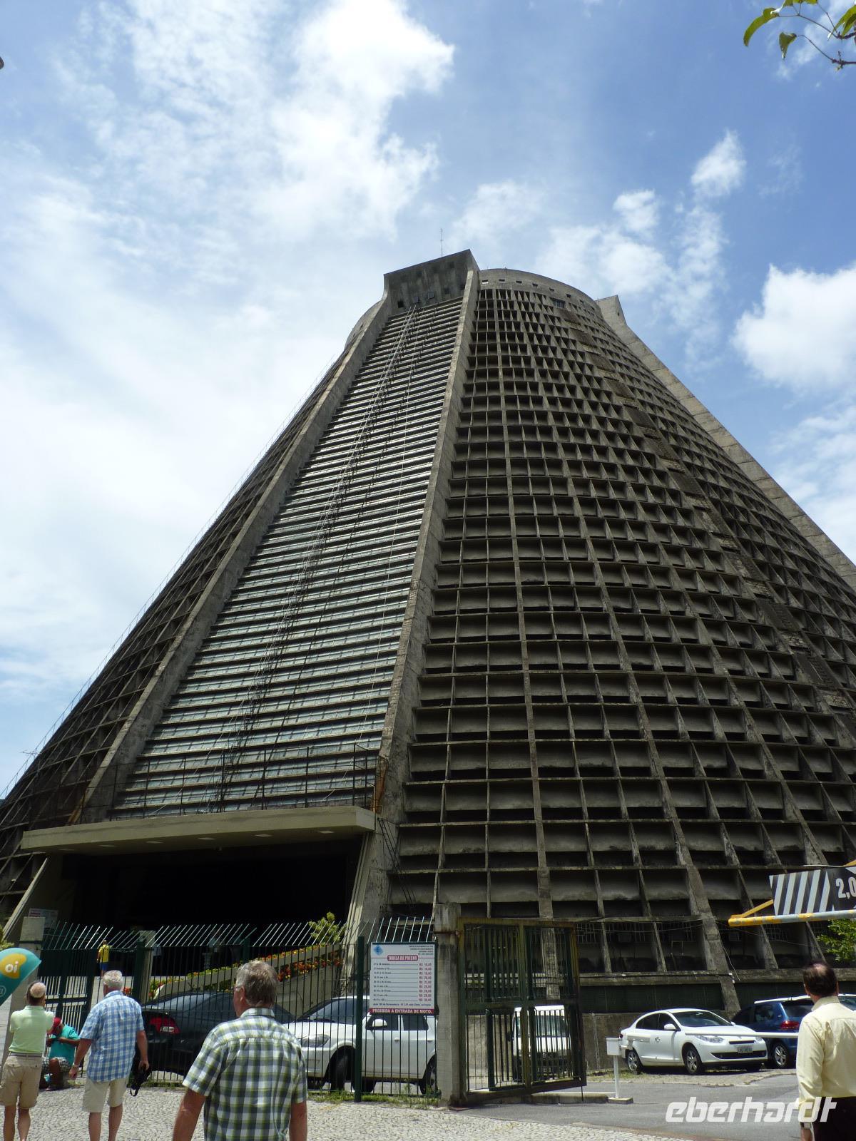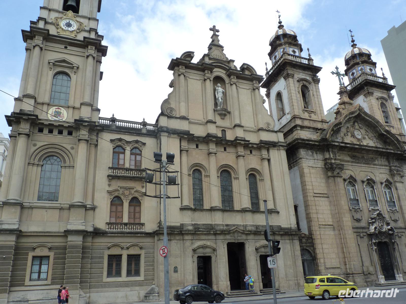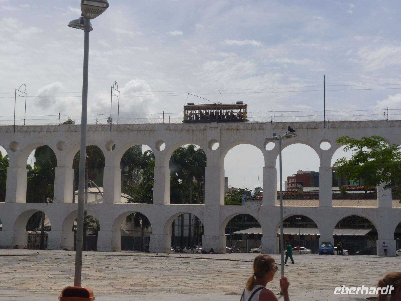 Heute mussten wir etwas früher aus den Betten, den es ging zurück nach Rio de Janeiro und dort wollten wir ja noch einiges sehen. Bereits um 7:00 Uhr verließen wir Paraty und fuhren wieder entlang der Küste zurück zur nach Sao Paulo zweitgrößten Stadt von Brasilien. Wieder wurden wir von Natalina über viel Wissenswertes informiert, so über das Schul- und Krankensystem oder auch darüber, warum mit Brasilia eine „künstliche" Hauptstadt aufgebaut wurde. Angekommen in Rio de Janeiro, war unser erstes Ziel das Sambodromo, wo sich jedes Jahr die 12 großen Sambaschulen des Landes beim Karneval präsentieren. Weiter ging es zur futuristisch gestalteten Catedral Metropolitana, in der es aufgrund der Bauweise selbst bei heißen Temperaturen angenehm kühl ist. Nach einem kleinen Fußweg durch die R. Gonçalves Dias erreichten wir den Ort unseres heutigen Mittagessens, Rio´s schönstes Jugendstil-Cafe, die Confeitaria Colombo. Nicht nur das 1894 erbaute und liebevoll restaurierte Cafe war eine Augenweide, auch das Buffet war sehr gut, so dass wir nach dem Essen satt und zufrieden die weiteren Highlights von Rio in Angriff nehmen konnten. So besichtigten wir zu mindestens von außen die sehr schöne Staatsoper, bevor wir zur berühmten Fliesentreppe Escadaria Selaron fuhren, einer Treppe von 125 Meter Länge und mit über 2000 Fliesen aus aller Welt versehen. Hier stellte ich die Gäste vor die Aufgabe, die Fliese mit der Frauenkirche von Dresden zu finden. Mit ein bisschen Hilfe von außen wurde sie dann entdeckt und war ein gefragtes Fotomotiv. Weiter ging es mit dem Bus zu dem Highlight des Tages, die Auffahrt zu dem vielleicht berühmtesten Wahrzeichen von Rio, dem Zuckerhut. Der Andrang an den Seilbahnen hielt sich in Grenzen, so dass wir sehr schnell die Auffahrt starten konnten. Wir hatten zudem Glück mit dem Wetter, so dass wir wenn auch leicht diesig doch relativ gute Sicht auf Rio, den Corcovado und die Copacabana hatten. Die Abfahrt gestaltete sich dann zu einem kleinen Abenteuer, hatten wir doch auf der Strecke zur Zwischenstation kurz vor dieser einen Stromausfall und durch den plötzlichen Halt fing unsere Gondel stark an zu schwanken. Kurze Zeit später war der Strom wieder da und wir konnten nach wenigen Augenblicken unsere Gondel verlassen und die zweite Strecke abwärts angehen. Diese Fahrt verlief reibungslos. Der Abend stand zur freien Verfügung und so ging der Großteil unserer Gruppe mit mir zur Copacobana, um in einer Strandbar bei angenehmen Temperaturen und mit Livemusik den Tag gemütlich ausklingen zu lassen.