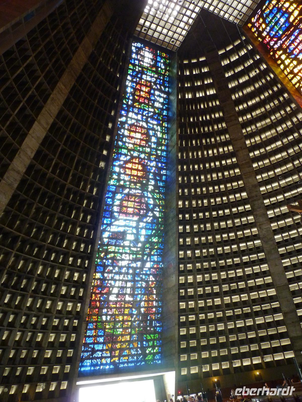 Wieder unten angekommen, fuhren wir in die Altstadt von Rio und besichtigten zuerst die alte Kathedrale von Rio, die Capela Real Imperial um dann zum Maracana-Stadion, welches offiziell Estádio Jornalista Mário Filho heißt, weiterzufahren. Dort konnten wir feststellen, dass der Schmerz über die 1:7 Niederlage der Brasilianer gegen Deutschland bei der Fußball-WM vor 3 Jahren noch tief sitzt. Weiter ging es dann durch die zu den bevorzugten Wohngegenden zählenden Stadtteile Lagoa (Lagune) und Leblon zu den Stränden von Rio. Zurück in unserem Hotel nutzten wir den freien Nachmittag zum Einkauf von Andenken oder einfach nur zum Relaxen an der Copacabana. Das Abendessen nahmen wir an diesem Tage im Restaurant Carretao Churrascaria ein, wo wir verschiedene Fleischsorten vom Spieß unlimited essen konnten. Es gab wohl Niemanden in unserer Gruppe, der hier nicht satt geworden ist.