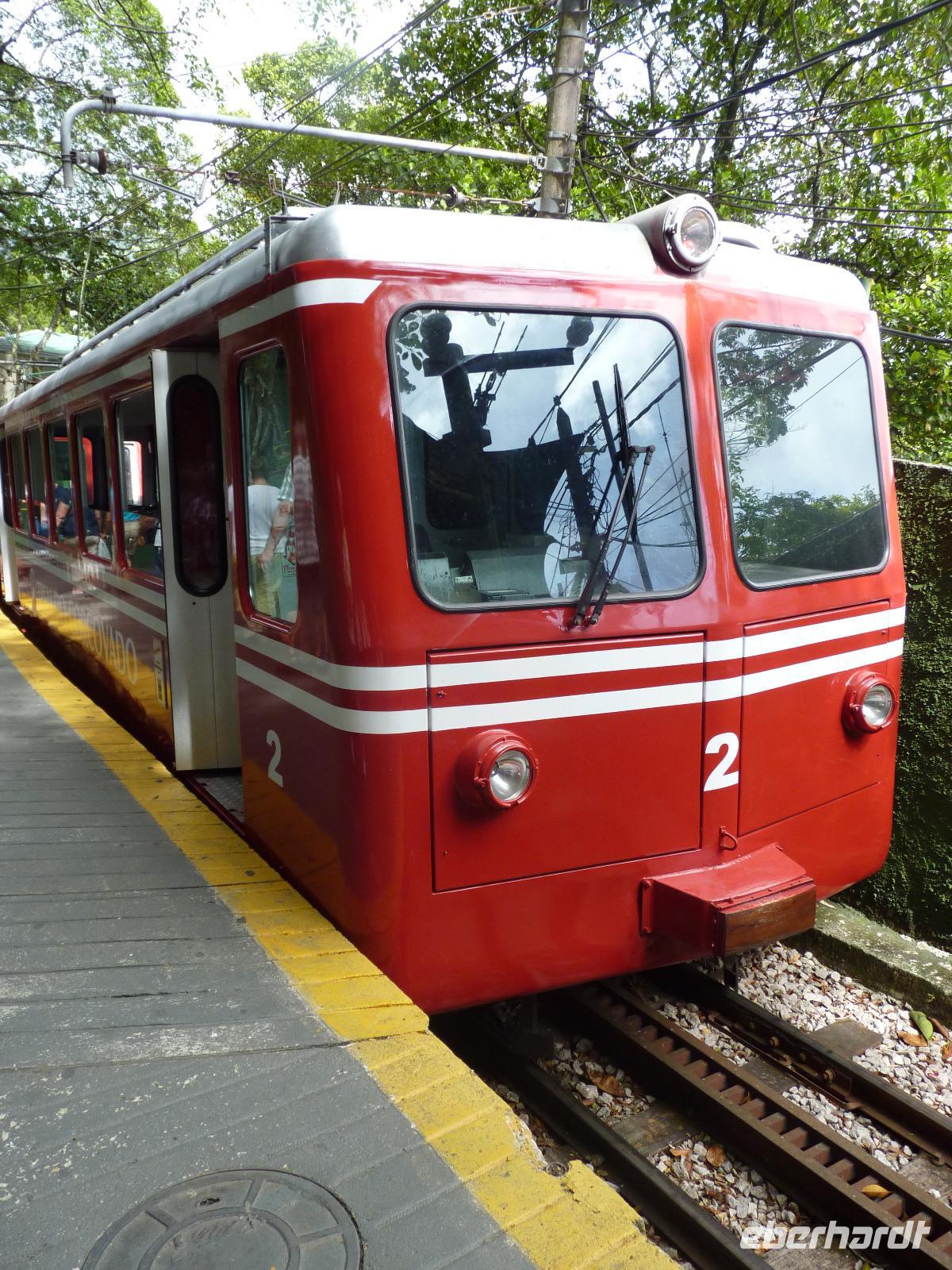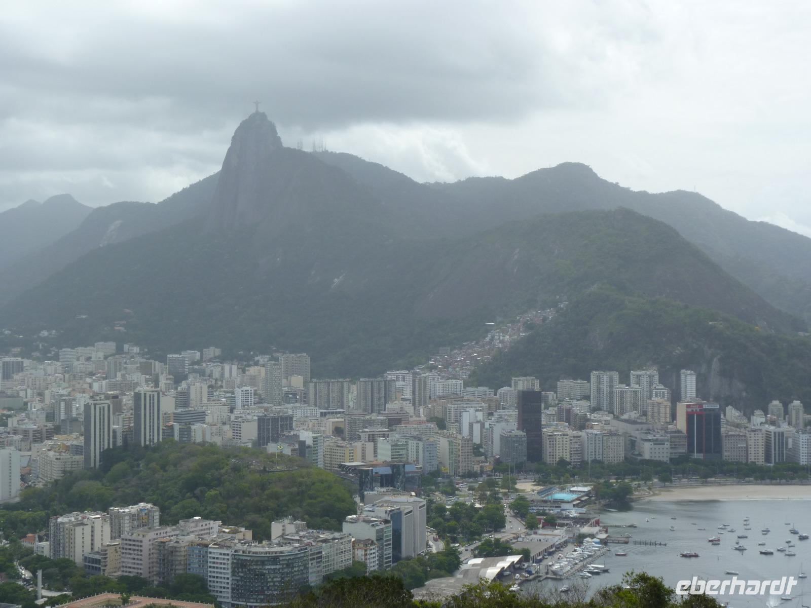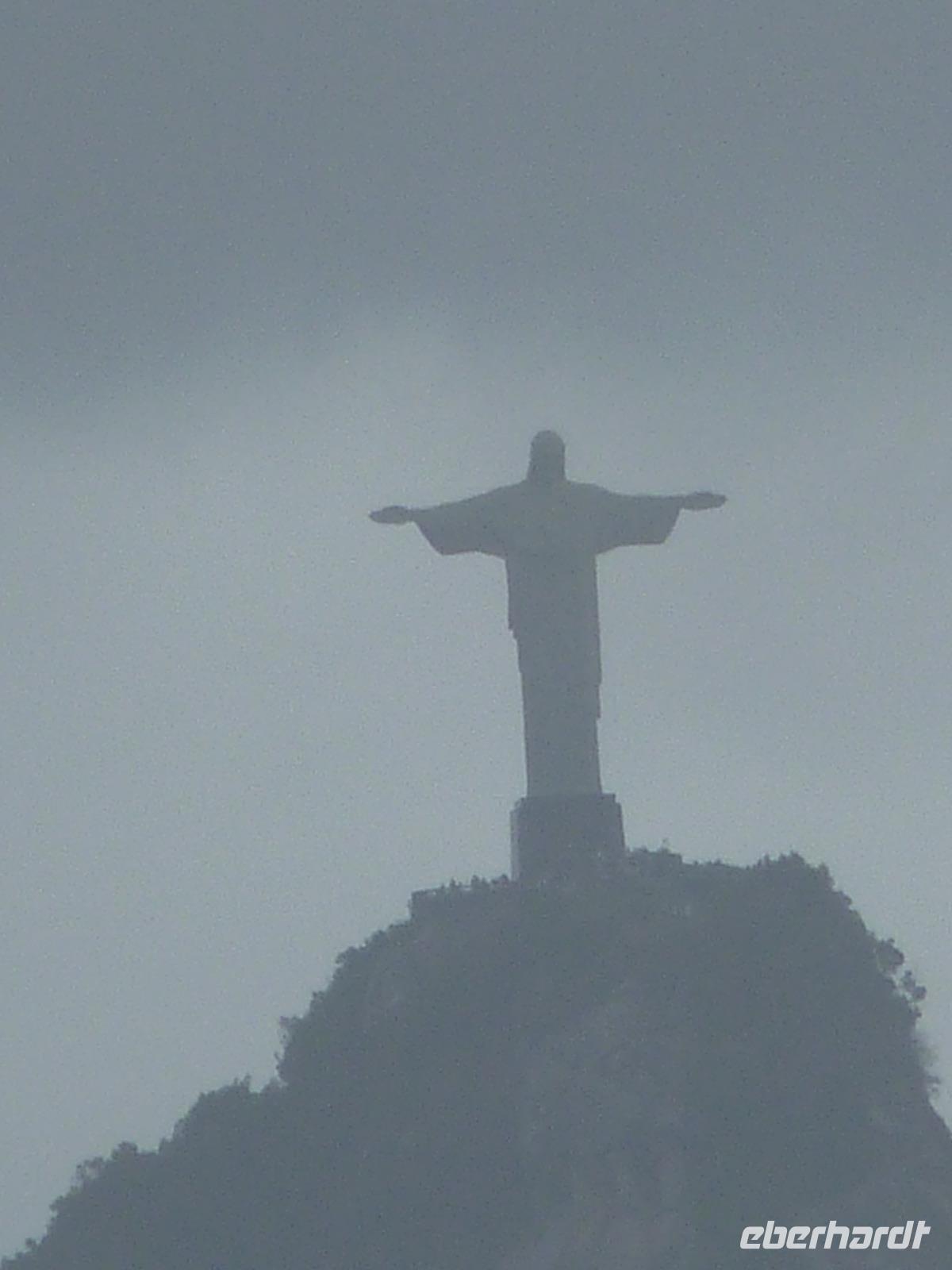 Für uns stand der zweite berühmte Hügel von Rio auf dem Programm, der Corcovado mit der 30 Meter hohen Christusstatue. Daher am Morgen der bange Blick aus dem Hotelfenster, wie ist das Wetter? Die Sonne lachte uns an und so hatten wir nach unserer ca. 20-minütigen Auffahrt auf den Corcovado, diesmal mit einer Zahnradbahn, eine schöne Sicht auf Rio und die Umgebung.