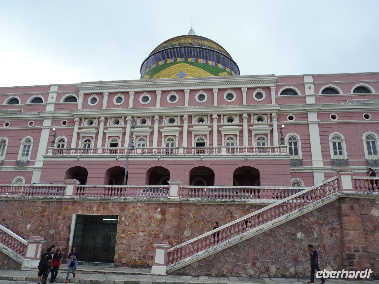 Es hieß Abschied nehmen vom Amazonas, diesem mit bis zu 40 km breiten und wasserreichsten Strom der Erde. Zuvor konnten wir aber am frühen Morgen noch den Zusammenfluss des Rio Negro und Rio Solimões, wie der Amazonas oberhalb der Stadt Manaus genannt wird, beobachten. Interessant dabei ist, dass aufgrund der unterschiedlichen Strömungsgeschwindigkeiten die Flüsse eine unterschiedliche Farbe aufweisen. Nach unserem Frühstück verließen wir unser Schiff und starteten mit Maria unsere Stadtrundfahrt durch Manaus. Zuerst besuchten wir die Oper, das Teatro Amazonas, welches durch die Kautschukbarone finanziert und 1896 eingeweiht wurde. Dort konnte man an dem Glanz der Oper erkennen, welch reiche Stadt Manaus einmal gewesen sein muss. Heute ist leider davon in den Straßen nicht mehr viel zu sehen. Unser nächstes Ziel waren gleich 3 größere Märkte, die wir zu Fuß erkundeten, um uns einen Eindruck von der Vielfalt des Angebotes an Obst, Gemüse und Fisch zu machen. Nach einem Mittagessen war es dann wieder soweit, um zum Flughafen zu fahren und unser nächstes Ziel, das Pantanal anzusteuern. Dazu flogen wir erst nach Brasilia, der Hauptstadt des Landes, um hier in den Flieger nach Campo Grande, einer Millionenstadt im Südwesten Brasiliens, umzusteigen. Dort erlebten wir dann etwas heute nicht mehr Alltägliches - wir mussten über das Flughafengelände zum Terminal laufen. Valdir, unser örtliches Reiseleiter für die nächsten 2 Tage erwartete uns bereits und so wurden wir gleich in unser heutiges Hotel Deville gefahren.