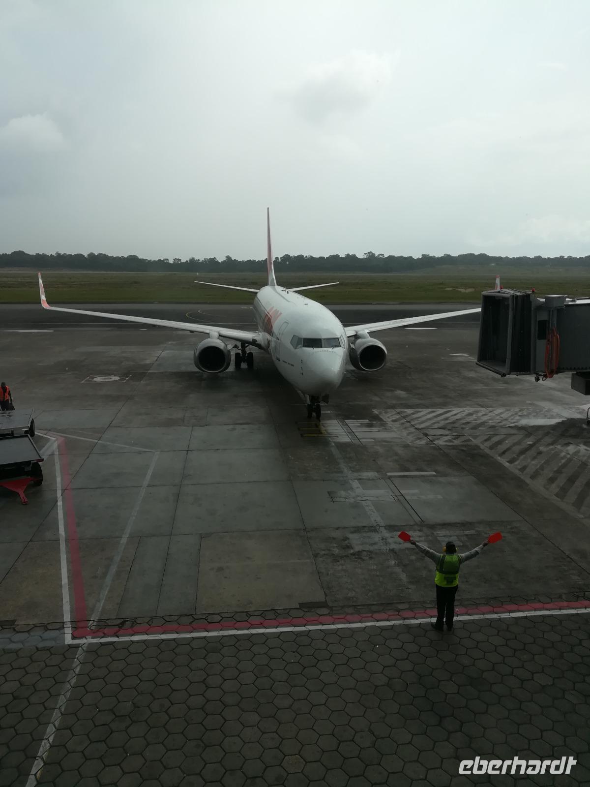 Stürmisch war es an diesem Tag in Dresden. Nachdem einige Flüge von Dresden gestrichen wurden oder extrem verspätet abgeflogen sind, stellte sich die Frage, ob unser Flug nach Frankfurt pünktlich abheben würde. Aber der Wettergott hatte mit uns ein Einsehen, steckte den (Wind-)blasebalg weg und so konnte die komplette Gruppe mit 10 Gästen und mir mit nur 20 Minuten verspätet nach Frankfurt losfliegen. Dort auf einer Außenposition angekommen, hatten wir noch einen weiten Weg bis Gate C15 zurück zu legen, die Pass- und eine weitere Sicherheitskontrolle zu passieren, um dann mit unserer Boing 747 gegen 22:30 Uhr relativ pünktlich abzuheben. Ein mehr als 11-stündiger Flug nach Rio de Janeiro stand uns bevor.