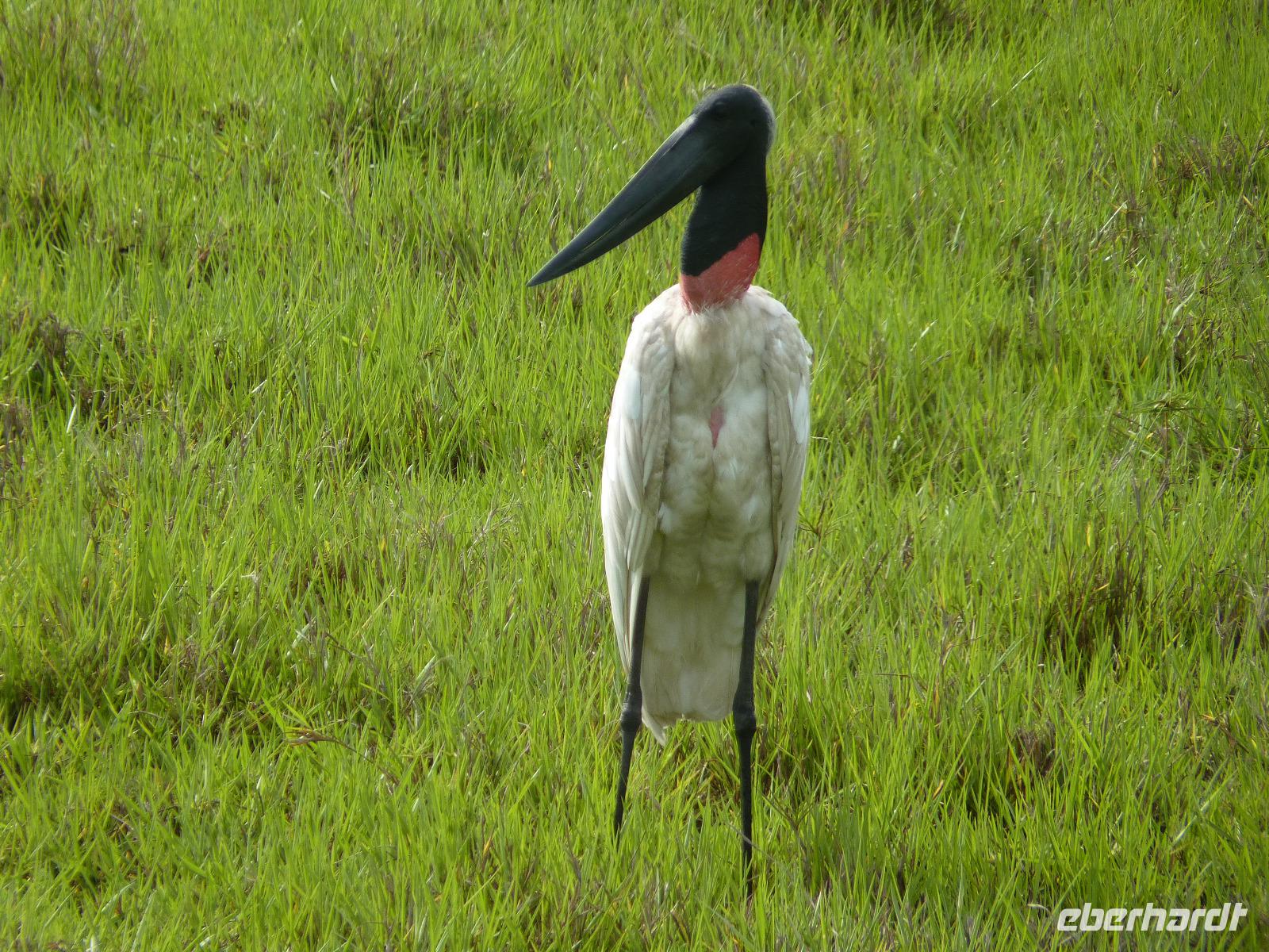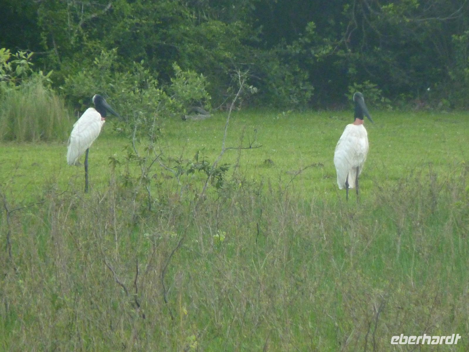 Nach so viel Wasser und Regenwald an den Vortagen hofften wir, möglichst viele Tiere Brasiliens im Pantanal, dem zum UNESCO-Weltkulturerbe gehörenden größten Binnenland-Feuchtgebiet der Erde, zu sehen. Dazu fuhren wir von Campo Grande aus westlich zur Pousada Aquape. Die letzten 54 km wurden wir ordentlich durchgeschüttelt, denn da die Pousada inmitten der Natur lag, führte auch nur ein Feldweg dorthin. Kaum dort angekommen, begrüßten uns schon die ersten großen blauen Araras direkt am Eingang unseres Quartiers. Die Zeit bis zum Bezug der Zimmer wurde fleißig zum Fotografieren aller möglichen Tiere, in der Regel Vögel, genutzt. Da denkt man, Natur heißt gleich Ruhe, aber hier war es anders. Natur ist hier ein ständiges Gezwitscher, Pfeifen und Krächzen. Einzigartig. Arara, Caracara-Geier, Spechte, Finken, Kiebitze, Tauben, Krähen und der Bienenfresser ließen die Fotoapparate nicht zu Ruhe kommen.