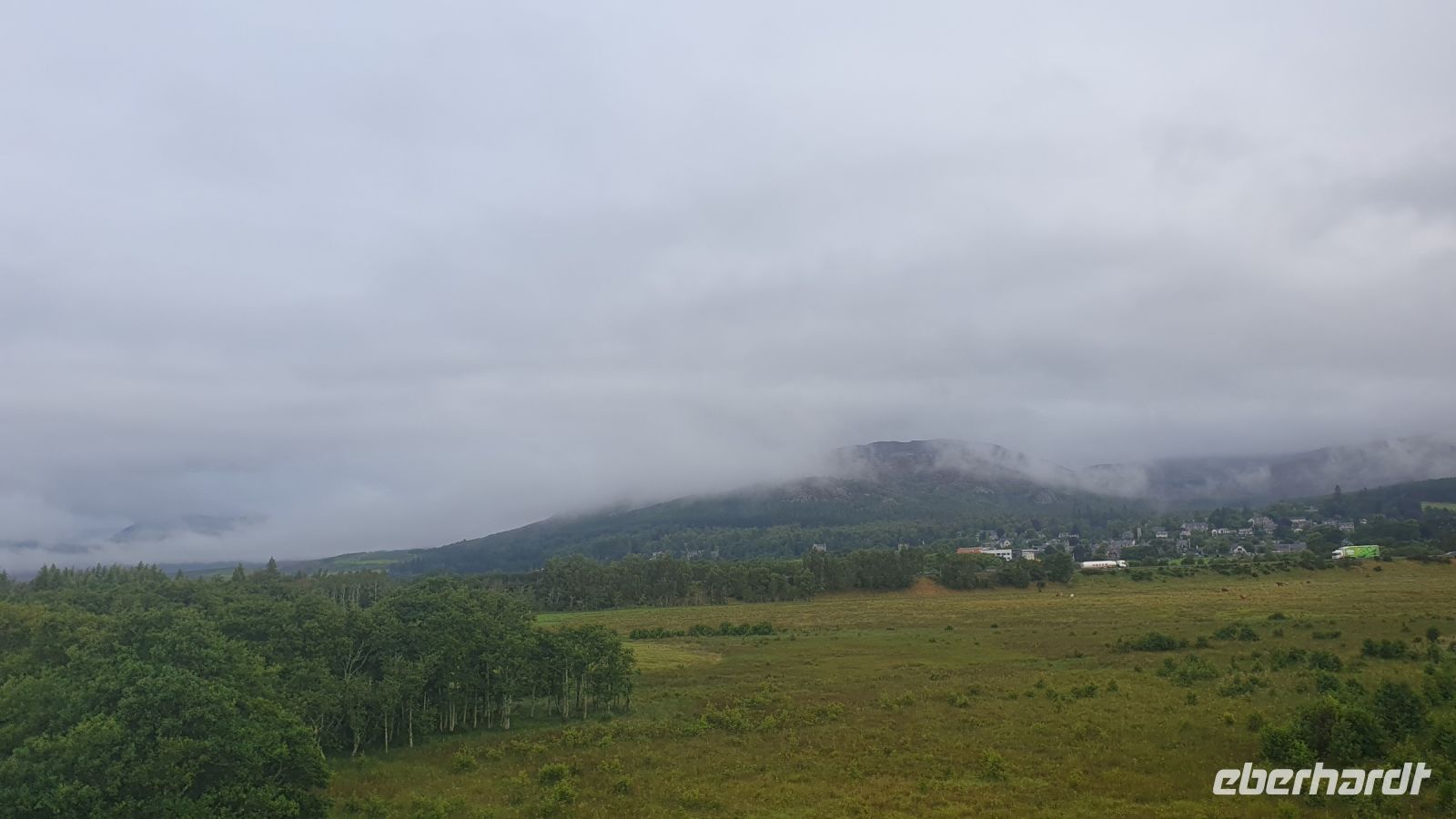 Heute fahren wir in die West-Highlands und weiter bis zur Westküste und zum Atlantik. Also geht es zeitig los. Über die Kessock Bridge in Inverness überqueren wir den Moray Firth. Hatten wir beim Start wenigstens etwas Sonne und blauen Himmel zog es sich nun zunehmend zu und bei unserer ersten Pause in Tarvie begann es leicht zu nieseln. Leider helfen hier in den westlichen Highlands keine 15 Minuten , hier kann es schon mal ununterbrochen regnen....Es hörte auch nicht auf, als wir unser erstes Ziel für heute erreichten: die Corrieshalloch Gorge mit den Falls of Measach. Aber was solls: es gibt kein schlechtes Wetter, nur unpassende Kleidung. Wir starten vom neuen Besucherzentrum aus unsere kleine Wanderung zum Wasserfall. Eine Hängebrücke spannt sich über die Schlucht, die bis zu 60 Meter tief ist. Vor ca. 13.000 Jahren trug hier Schmelzwasser der Eiszeitgletscher das weiche Gestein ab. So entstand Corrieshalloch Gorge. Die Schlucht ist bis zu 1,5 Kilometer lang. Wir gehen davon einige hundert Meter, direkt unter der Brücke rauscht der 45 Meter hohe Wasserfall in die Tiefe. Ein Stück weiter des Weges wurde eine Aussichtsplattform errichtet, von hier aus kann man das majestätische Spektakel perfekt sehen. Aber auch der Weg hierhin wurde komplett neu gestaltet. Durch den Regen der vergangenen Tage rauschten die Bäche am Weg entlang, stürzten sich in Kaskaden über Felsen und boten an jeder Biegung neue Bilder. Gegen Mittag sind wir zurück am Bus und setzen unsere Reise fort. Eigentlich hatten wir einen wunderschönen Viewpoint für die Mittagspause ausgesucht, aber es schüttete und schüttete. Die Berge verhüllten sich mit Nieselwolken und Nebel und nix war zu sehen. Also hoffen wir auf Wetterbesserung und verschieben das Lunch. Und am Little Loch Broom wurde es etwas heller, wir stoppen am Viewpoint mit einer Aussicht auf diesen Meeresarm, der schon zum Atlantik führt. Dann geht es direkt an der Westküste entlang, mit Blicken hinüber zur Gruinard Island und später im Loch Ewe zur Isle of Ewe. (sprich: ju:) In einer kleinen Bucht liegt geschützt unser nächstes Ziel: Inverewe Gardens. Es ist einer der nördlichsten botanischen Gärten der Welt. Schaut man sich andere Orte auf diesem Breitengrad an findet man Tundra und Eis. Hier aber bietet der Golfstrom beste Bedingungen, so dass sich mittlerweile Pflanzen und Bäume aus der ganzen Welt hier heimisch fühlen. Osgood Mackenzie hat sich hier seinen Traum verwirklicht, auf kargem und felsigen Boden schuf er eine unglaubliche Blüten- und Artenvielfalt. Heute gedeihen im "Bambooselem" Bambus und Rhodedendron, Ahorn im Amerika-Bereich und Eukalyptus im Australien-Bereich. Selbst Pflanzen aus Südamerika gedeihen und im ummauerten Garten nahe des Besucherzentrums erfreuen unzählige Blumen und Gräser nicht nur die Hobbygärtner-Herzen. Am Nachmittag schließlich brechen wir zur Rückfahrt auf. Wir folgen dem wunderschönen Loch Maree und haben für alle noch eine kleine Überraschung: Es gibt tatsächlich eine Regenpause und in der bauen wir rasch ein kleines Picknick auf. Es gibt Küchlein und Kekse, Obst und natürlich einen Whisky für alle. Wer möchte stößt mit einem Sektchen auf das Bergfest gestern mit uns an und dann öffnet der Himmel wieder alle Schleusen. Ganz Mutige halten den großen Regenschirm bis auch das letzte Plätzchen und die letzte Erdbeere verputzt sind, dann geht es pitschnass zurück in den Bus. Auf der Fahrt zurück lüften die Berge ab und zu ihren Wolkenschleier und lassen ihre Größe und Anmut erahnen. Noch ein kurzer Servicestopp am Rogie Falls, dann geht es wieder über die Kessock Bridge über den Moray Firth und nach Kingussie zum Hotel. Ein spätes Abendessen führt uns noch einmal alle zusammen, wir lassen es uns schmecken und den Tag Revue passieren.