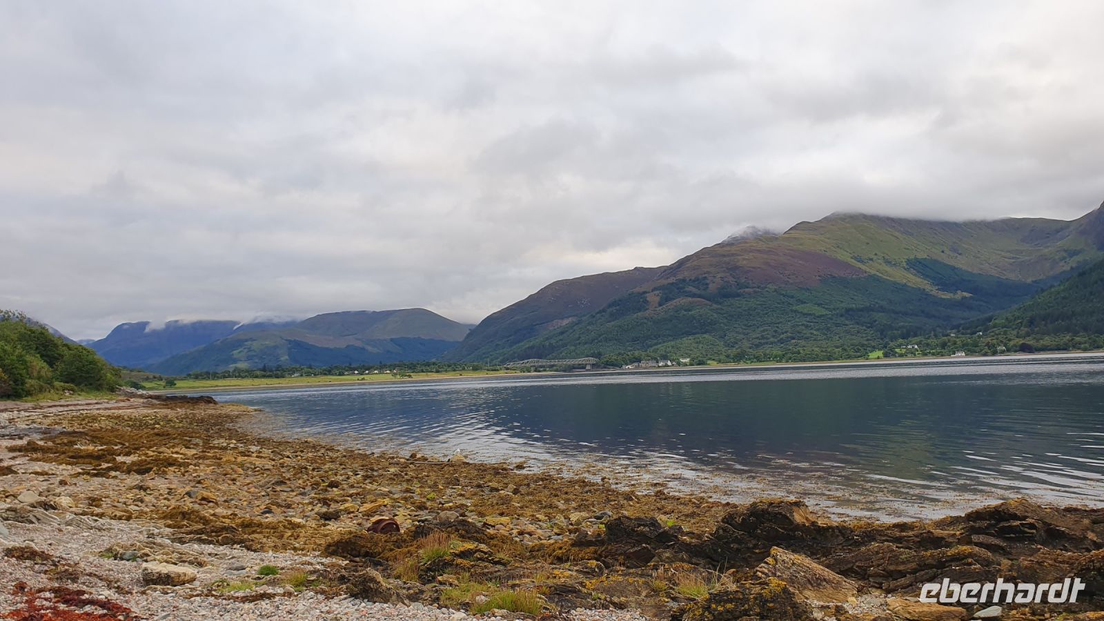 Heute nehmen wir Abschied von Kingussie und laden unsere Koffer in den Bus. Die ganze Nacht hindurch hat es geregnet, so ziehen heute morgen dicke Nebelschwaden durch die Berge. Trotzdem wagen wir einen kurzen Ausflug zu den Ruthven Barracks, die sich in unmittelbarer Nähe unseres Hotels befinden. Erbaut, um die Highlands unter Kontrolle zu halten nach den ersten Aufständen der Jakobiter waren sie auch Sammelpunkt der letzen Jakobiter-Einheiten, die auf Nachricht vom Culloden Battlefield warteten. Es kam aber nur die Nachricht des Prinzen, dass sie sich so schnell als möglich selber in Sicherheit bringen sollten. Der Aufstand war verloren. Auf einer Anhöhe gelegen bietet es einen tollen Überblick über das Land ringsherum. Davon konnten wir uns selber überzeugen und stiegen gern hinauf. Anschließend wurde es schwierig, die Straße, die wir zum Schäfer fahren wollten war nur bis 7,5 t ausgelegt und so mußten wir einen Riesen Umweg fahren- inklusive Zeitverlust. Als wir beim Schäfer ankamen war das Tor jedoch verschlossen- wir waren zu spät. Andere Zufahrtswege erwiesen sich als für den Bus nicht fahrbar- sie blieb uns nur- umzukehren, denn unser nächster Termin in Aviemore wartete bereits. So schade. In Aviemore stiegen wir in den Zug der Strathspey Railway um. Ein Museums-Zug, denn die Strecke war offiziell stillgelegt worden. Enthusiasten ist es jedoch zu verdanken, dass hier heute wieder Züge fahren. Mit einer Dampflok fahren wir durch das Tal des Spey, erleben das Wasser- Auffüllen der Lok in Boat of Garten und können an Bord als kleine Überraschung von Eberhardt Travel einen Tee oder Kaffee genießen. In Broomhill angekommen fahren wir zunächst durch den Bahnhof durch, die Lok wird umgespannt und zieht dann den Zug zurück zum Bahnhof. Hier steigen wir aus und können noch viele tolle Fotos vom Zug und der Lok schießen. Roy wartete unterdes mit dem Bus bereits und weiter ging unsere Fahrt. In Carrbridge halten wir. Hier befindet sich die älteste Steinbrücke Schottlands- die "Old Packhorse Bridge" aus dem Jahr 1717. Sie führt über den Dulnain, am anderen Ufer befinden sich Kirche und Friedhof, diese waren bei Hochwasser nie zu erreichen. Also ließ die Gemeinde diese Brücke bauen. In kühnem Bogen schwingt sie sich über den Fluss der heute aufgrund des vielen Regens reißend geworden war. Tolle Bilder entstanden, wenn sich das torfdunkle Wasser schäumend über die Felsen ergoß. Nach diesem WOW- Stopp geht es weiter zur heimlichen Hauptstadt der Highlands- Inverness. Roy stoppt an der Kathedrale, die wir auch besuchen können, den Eintritt übernahm Eberhardt Travel für uns. Eintritt in Kirchen mag für uns ungewöhnlich sein- in Schottland bekommen die Kirchen jedoch keinerlei staatliche Unterstützung, es gibt keine Kirchensteuer. Finanzieren muss alles die Gemeinde. Und da die Inverness Kathedrale zu den wenigen gehört, die die Reformation überlebt hat wollen wir sie uns auch ansehen. Dank unseres Audio-Systems kann ich unserer großen Gruppe auch Infos geben, ohne die ganze Kathedrale uz unterhalten, so erzähle ich von den Presbyterianern, den Verbindungen zu den USA, zum eichengeschnitzten Chorgestühl und den russischen Ikonen. Anschließend lade ich zu einem Bummel in die Stadt ein, die viele annehmen. Über den Ness erreichen wir das Zentrum und durch die Church Street auch den Viktorianischen Markt. Er wurde in den letzten Jahren restauriert und beitet eine Vielzahl an Geschäften und Läden. Besonders beindruckt die große Food- Hall, hier gibt es leckeres Essen für jeden Geschmack und wer möchte gönnt sich noch Fish&Chips. Die sind hier frisch und ultralecker. Mit einem Blick aufs Castle, das derzeit restauriert wird geht es zurück zum Bus und dann ruft auch schon der legendäre Loch Ness. Wir halten Ausschau, aber Nessie läßt sich nicht sehen. So fahren wir zum Urquhart Castle, sehen zu Beginn im Besucherzentrum einen Film zur über 1000jährigen Geschichte und können uns dann selber im Castle umsehen. Allerdings regnet es wieder die ganze Zeit und so müssen wir schon hart im Nehmen sein heute. Am Südufer des Sees liegt Fort Augustus. Die alte Garnisons-Stadt weist keine Spuren einer Garnison mehr auf, vielmehr zieht sie heute die Besucher wegen der Schleusentreppe an. Fünf Treppen überwinden hier den Höhenunterschied vom Loch Ness zum Kanal, Teil des Kaledonischen Kanals, der im "Great Glen", dem großen Tal gebaut wurde. Die drei großen Seen wurden mit künstlichen Kanälen verbunden- Werk vom Baumeister Thomas Telford. So entstand eine Verbindung von der Ostküste zur Westküste, die den Heringsfischern einst den Umweg über die Nordküste ersparen sollte. Als die Schiffe aber größer wurden erwies sich der Kanal als zu schmal. Heute wird er vorwiegend von den Freizeitkapitänen genutzt. Auch wir können einen Schleusenvorgang verfolgen und auch die Straße wurde geöffnet, um die Schiffe zum Loch Ness passieren zu lassen. Ein tolles Erlebnis. Roy fährt uns dann weiter nach Spean Bridge. Am Commando Memorial stoppen wir noch einmal. Hier war einst eine Ausbildungsstätte für Offiziere und Soldaten. Das Denkmal erinnert an die Gefallenen und ein Gedenkgarten auch an die der letzten Kriege. Ein wundervolles Bergpanorama rahmt das ganze ein. Es hat aufgehört zu regnen und für kurze Zeit zeigt sich sogar der Ben Nevis in voller Pracht. Durch Fort William geht es weiter am Loch Linnhe entlang. In Onich am Ufer dess Sees erreichen wir schließlich unser Hotel für diese Nacht. Das Abendessen hatten wir bereits unterwegs bestellt und so freuen wir uns auf tolle Blicke auf den See, ein gutes Abendessen und den Sonnenuntergang.