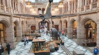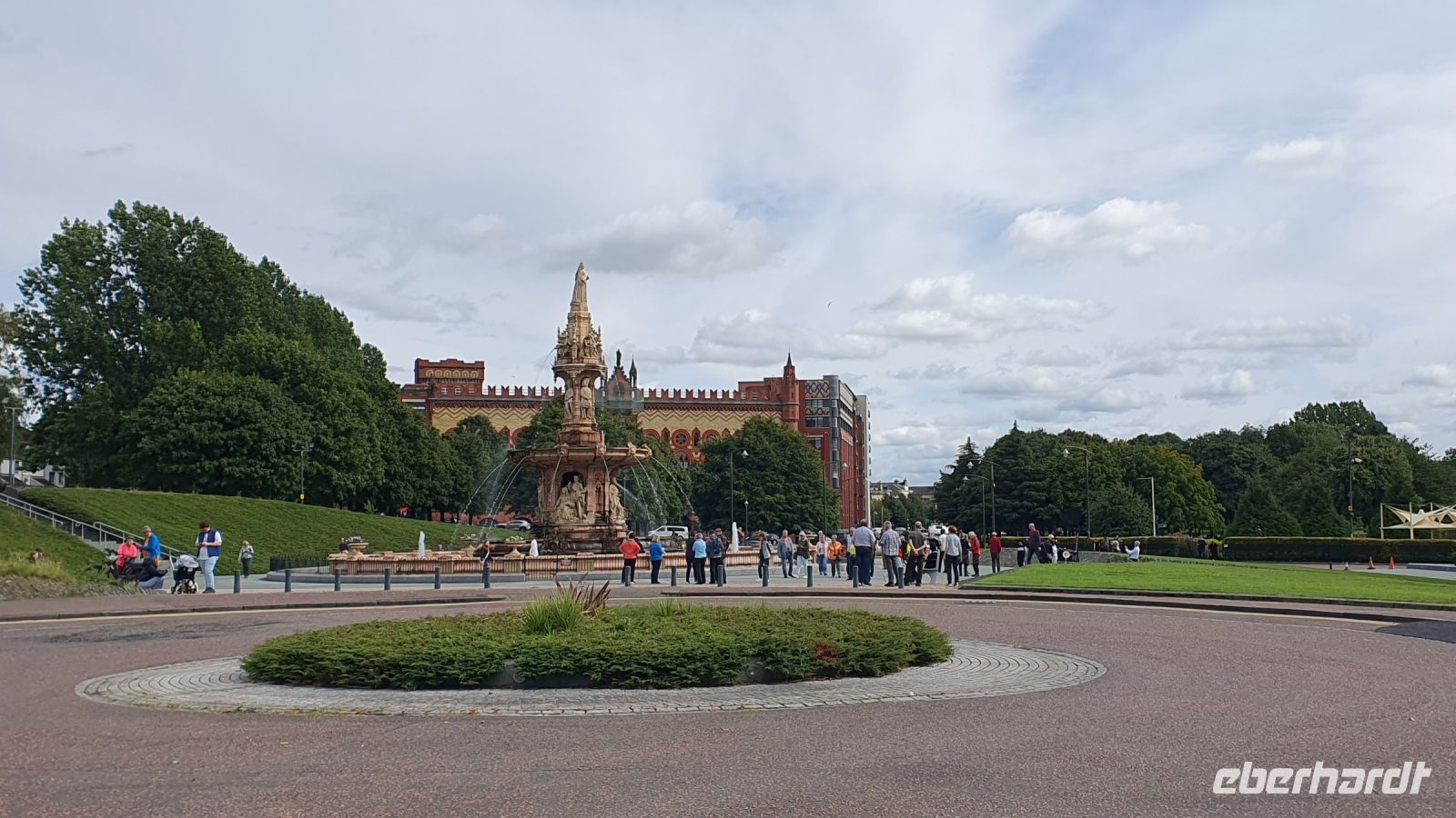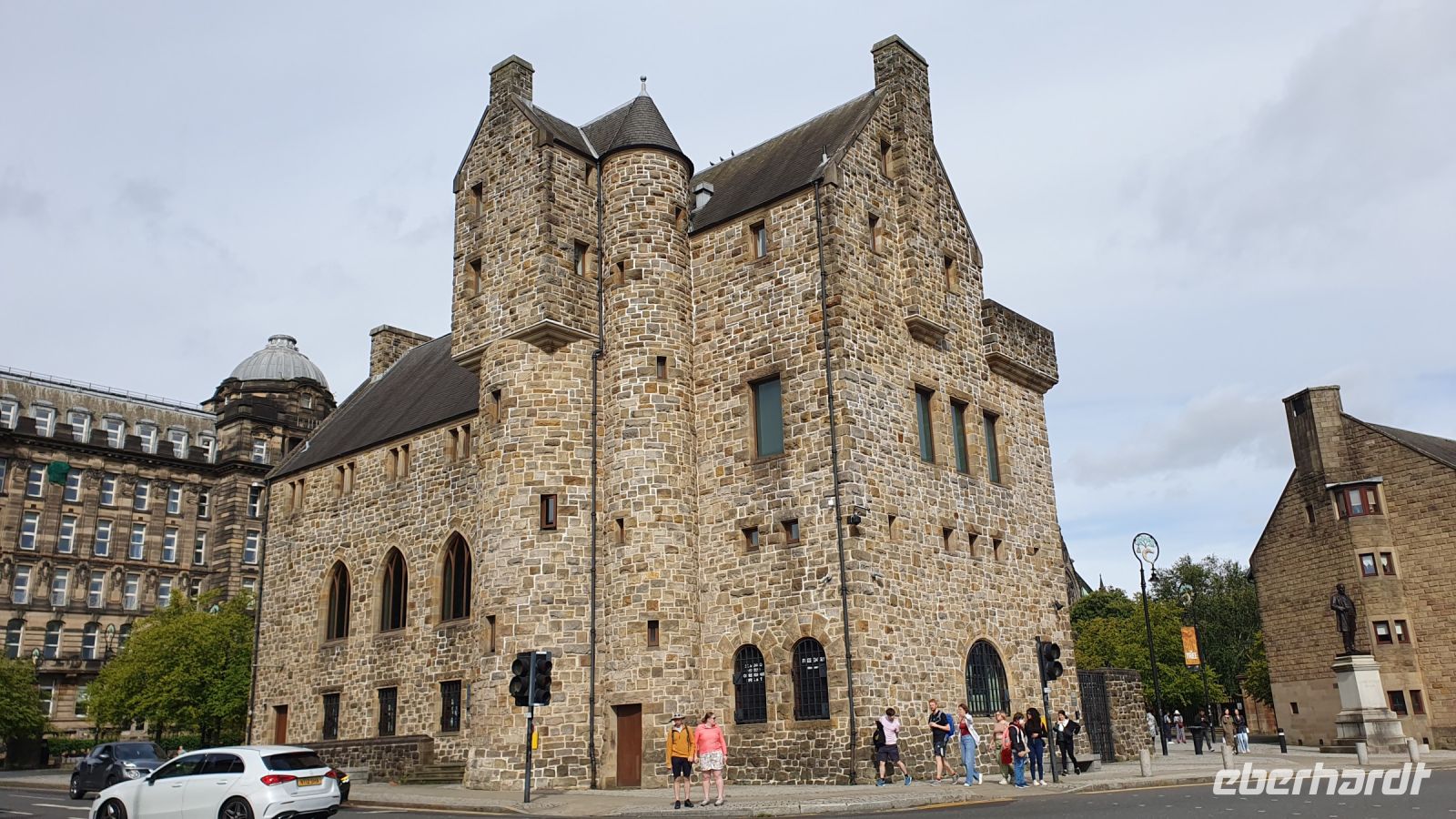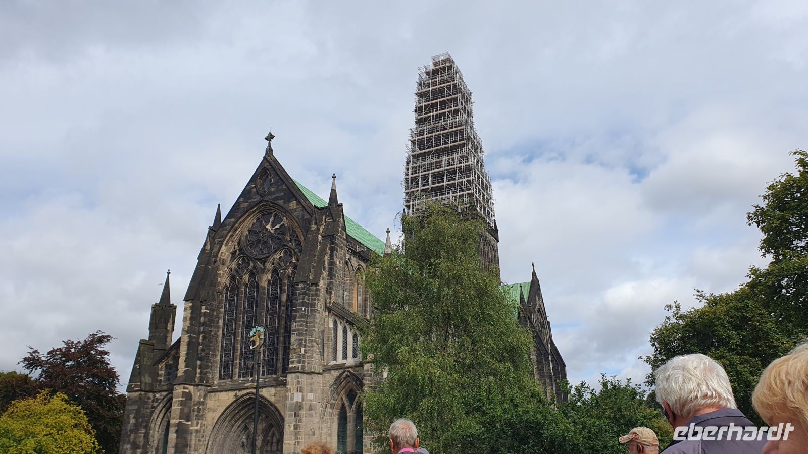 Das schönste Tal Schottlands ist heute unser erstes Ziel- und ist quasi gleich um die Ecke. Am Besucherzentrum am Anfang des Tals wurde eine Torfhütte originalgetreu nachgebaut. Die schauen wir uns natürlich an. Der Geruch von Torffeuer liegt noch in der Luft und ringsumher erheben sich majestätisch der Berge des Bidean nam Bian- Massivs. Bis zu 1150 Meter sind sie hoch. Durch das Tal fließt der Fluss Coe, gespeist von unzähligen Bächen, die von den Bergen herabfließen. Unsere Fahrt führt uns genau durch dieses Tal und an den Aussichtspunkten erleben wir heute immer wieder Piper- Dudelsackspieler. Sehr zu unserer Freude. Am Ausgang des Tales ändert sich die Landschaft. Die Berge weichen etwas zurück und geben eine Moorfläche frei- das Rannoch Moor. Durchzogen von scheinbar tausenden kleinen Seen, aber es ist ein einziger: Loch Ba. Die tief hängenden Wolken hüllen die Berggipfel ein, zaubern aber auch schöne Schattenspiele auf das Wasser. Oberhalb des Loch Tulla stopppen wir noch einmal und genießen die phantastische Aussicht- natürlich wieder mit Piper. Nach dem schönste Tal erwartet uns nun der schönste See Schottlands: der Loch Lomond. Am Nordufer werden wir erwartet- von einem Piper ;-) Er geleitet uns zur Anlegestelle der Ausflugsschiffe und wir gehen an Bord. Ein Whisky-Kaffee hilft gegen das feuchtkalte Wetter und wir genießen die Fahrt auf dem See. Zurück an Land fahren wir mit unserem Bus immer am Ufer entlang. Schließlich ist der Loch Lomond auch der größte See, bis zu 35 Kilometer lang und an anchen Stellen 5 Kilometer breit. In Luss, einem kleinen verträumten Städtchen am See, stoppen wir für eine Mittagspause und einen Spaziergang zum Ufer, wer möchte folgt mir noch zur Kirche mit ihrem Friedhof, der einen sogenannten Hogback aufweist. Ein Grab der Wikinger. Bis kurz vor Glasgow kamen die "Nordmänner" damals, erst im Jahre 1266 endete ihre Herrschaft und sie zogen sich zurück. Wir können noch einen kurzen Blick in die Kirche werfen, es ist ja Sonntag und so haben wir Glück. Roy fährt uns nun nach Glasgow. Die größte Stadt des Landes. Rechnet man das Umfeld dazu leben hier mehr als eine Million Menschen. Und die haben die Stadt verändert. War sie früher für ihren Schiff- und Maschinenbau, für Lokomotiven und Handel bekannt, so sind es heute die Architektur, die Kunst und die Festivals, die Glasgow ausmachen. Die Hafenanlagen am Clyde wurden umgebaut, das Science Center entstand, das Riverside Museum und auch eine neue Destillerie nahm 2017 ihren Betrieb auf- in einem umgebauten Pumpenhaus des alten Hafens. Wir starten an der St. Mungo Cathedral- nach dem Gründer der Stadt benannt, der hier in der Unterkirche auch begraben liegt. Als eine der wenigen hat die Kathedrale die Reformation überlebt, die Zünfte und Stände der Stadt verteidigten sie erfolgreich gegen den randalierenden Mob. Wir sind beeindruckt und steigen natürlich auch hinab zu St. Mungo. Weiter geht es zum Glasgow Green. Ein Fotostopp am Peoples Palace darf nicht fehlen, ebenso wie Fotos vom größten Terrakottabrunnen der Welt. Gegenüber ein Gebäude wir ein Dogenpalast- es war aber eine Teppichfabrik, die der Besitzer so bauen ließ. Unsere Fahrt führt uns nun zum Veranstaltungszentrum: Das SSE Hydro, das "Ufo" genannt und das "Gürteltier" stammen vom Architekten Sir Norman Foster, der ja auch die Kuppel des Berliner Reichstages entwarf. Ein Abstecher zur Uni darf nicht fehlen, Glasgow hat drei davon. Den Abschluss bildet unser kurzer Besuch des Kelvingrove Art Gallery and Museum. Es beeindruckt schon von außen- aber erst innen! Riesige hohe Hallen mit Ausstellungsstücken aus allen Bereichen: Technik, Natur, Geschichte, Kunst...Nun wird es aber Zeit fürs Hotel. Wir checken ein und treffen uns für einen Spaziergang zum Pub wieder. Unser Abschieds-Abendessen im "Waxy O`Connors" ist super lecker mit einem tollem Ambiente. Über den nächtlichen George Square mit einem Blick aufs Rathaus geht es schließlich zurück zum Hotel.