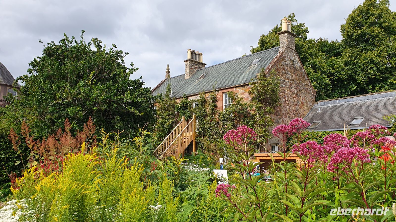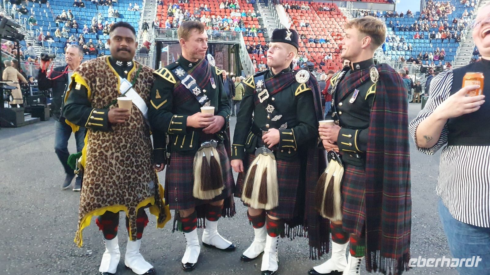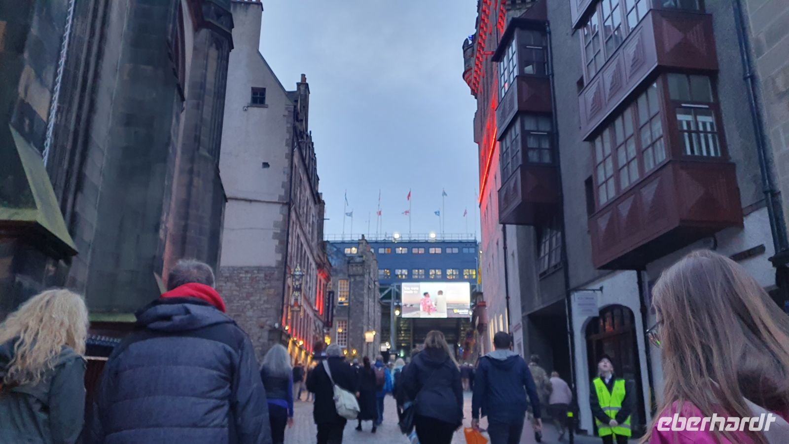 Der Tag heute gehört der Hauptstadt Schottlands- Edinburgh. Meriel, unsere Stadtführerin, treffen wir im Hotel am Morgen. Noch weist die Wolkendecke Lücken auf und sogar blauer Himmel blitzt durch- aber nicht mehr lange. Schon als wir am ehemaligen College vorbeifahren, in dem heute sündhaft teure Eigentumswohnungen entstanden sind zieht es sich immer mehr zu und am Calton Hill, wo wir eigentlich aussteigen und den Blick auf die Stadt geniessen wollten- Platzregen vom feinsten. Also fällt das ins Wasser. Dafür fahren wir aber auf Arthurs Seat hinauf. So heißt einer der Gipfel des "Hausbergs Edinburgh" mit königlichen Gärten, denn er schließt sich unmittelbar am Palast of Holyrood an. Hier wurden auch Teiche angelegt und Wanderwege geschaffen- heute vielfach von den Einheimischen und ihren Gästen genutzt. Wir können heute mit unserem Bus ganz nach oben fahren und- auch wenn es noch etwas nieselt - den Blick auf die Stadt genießen. Dann geht es zurück. Gegenüber vom Holyrood Palace entstand das neue schottische Parlament- eine etwas gewagte Architektur an diesem Ausgangspunkt der Royal Mile. Diese "königliche Meile " führt zum Castle hinauf und ist exakt eine Meile lang. Wir fahren ein Stück mit dem Bus die Royal Mile hinauf: passieren The Worlds End- den Pub, der an der alten Stadtmauer tatsächlich für viele das "Ende der Welt" bedeutete, da sie sich die Steuern für das Verlassen bzw. den Zugang zur Stadt nicht leisten konnten. Durch die Altstadt geht es dann in die "Neustadt". Sie wurde konzipiert, als es in der Altstadt zu eng und viel zu stickig wurde. Hier dominieren breite Straßen, große Fenster und viel Grün das Stadtbild. Beide Stadtteile gehören heute zum UNESCO Weltkulturerbe. Am Botanischen Garten ist Zeit für eine kleine Pause und ein Blick auf eine berühmte Privatschule darf auch nicht fehlen: Fettes College. Einst gegründet für Jungs aus armen Verhältnissen ist sie heute eine der teuersten privaten Schulen des Landes. Den Abschluss bildet unser Besuch des Edinburgh Castle. Auf dem Vulkanfelsen gelegen überblickt es die Stadt und ist Endpunkt der Royal Mile. Ich besorge unsere Tickets und gemeinsam mit Meriel "entern" wir das Castle. Hier kann jeder nach einem Überblick, was sich wo befindet selber entscheiden, was er/sie anschauen möchte. Natürlich gehören die Palastgemächer und die Kronjuwelen zu den Highlights, aber auch die uralte Margrets Chapel oder die vielen Ausstellungen zu den Regimentern hatten es etlichen Gästen angetan. Und da wir zeitlich perfekt hier waren, konnten wir auch das Abfeuern der 1-o-clock-gun erleben. Warum gerade um ein Uhr und nicht 12 Uhr ? Nun, wir sind in Schottland, da verschiesst man nicht eben mal 12 Kanonenkugeln...;-) Der Nachmittag stand allen Gästen zur freien Verfügung, da wurde die Royal Mile entlang gebummelt, ein Blick in die zahlreichen "Closes" geworfen, das sind die kleinen Gassen zwischen oder unter den Häusern der Royal Mile. Dort verbergen sich Kleinode wie das Writer´s Museum und viele andere Berühmtheiten. Am späten NAchmittag bringt uns Roy dann mit unserem Bus zurück zum Hotel. Wir haben heute ein zeitiges Abendessen denn wir haben etwas Sensationelles vor: Wir besuchen am Abend das Edinburgh Royal Tattoo. Ein Bus bringt uns zurück ins Stadtzentrum, den Weg zum Castle, auf dessen Esplanade das Tattoo jedes Jahr im August stattfindet, kennen wir ja, allerdings jetzt am Abend vor dem Tattoo mit jeder Menge Ordnern und Kontrollen. Problemlos erreichen wir unsere Plätze auf den Tribünen und warten gespannt. "Stories" ist das diesjährige Motto des Tattoos, und diese werden auch erzählt. Von den Militärkapellen verschiedenster Länder, Norwegen war dabei und auch Mexiko und den USA, genauso wie die Schweiz und einheimische Künstler. Highlight aber wie immer der Auftritt der Massed Pipes and Drums mit ihren Dudelsäcken und Trommeln. Alle waren restlos begeistert, unseren Bus fanden wir relativ schnell am verabredeten Platz und Alan fuhr uns zurück zum Hotel. Das Servicepersonal des Hotels ließ sich noch zur Ausgabe von verschiedenen Schlummertrunks überreden- war das ein Tag heute!