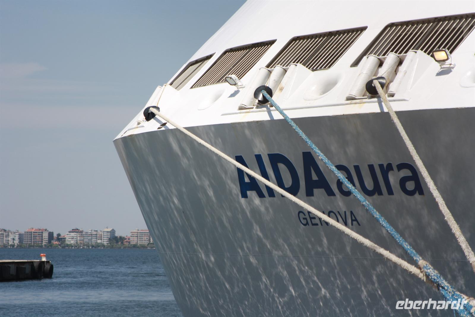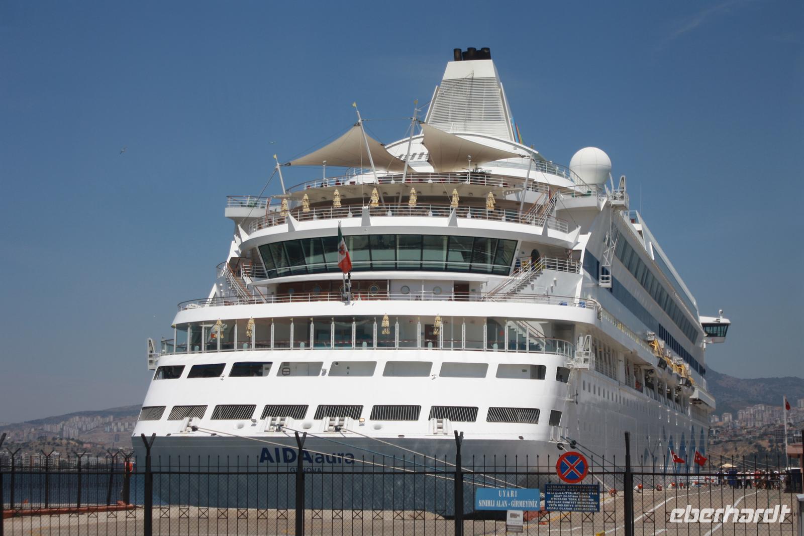 Ein Seetag auf der AIDAaura bedeutet Erholung pur. Was für den einen ein entspannter Tag auf dem Pooldeck ist, ist für den anderen aktiver Urlaub mit Sport, Spiel und Spaß. Nach dem leckeren Brunch (aus dem engl. Eine Kombination aus Frühstück und Mittagessen) auf dem Pooldeck konnte man an Tanz- oder Kreativkursen teilnehmen und von dem Lektor Gerrit Aust bei einem Vortrag so einiges über Izmir und seine Geschichte hören. Am Abend wurden wir in das Theater des Schiffes eingeladen und es hieß: Leinen Los! Es begrüßte uns der Club Direktor Harald Bernberger und Entertainment Chef Jürgen Neff zu einer Willkommensveranstaltung. Bei AIDA darf sich jeder kleiden wie er sich wohlfühlt und es gibt keine strenge Kleiderordnung wie bei klassischen Kreuzfahrten. Der Kapitän Boris Becker (nein „Bobbele“ hat nach seiner Tenniskariere nicht umgelernt, wir sprechen hier von einem anderen - aus Angst vor Nachahmungsversuchen ließ der Clubchef jedoch alle Besenkammern abschließen) und seine Offiziere hießen uns auch herzlich willkommen. So nahm uns das Showensemble musikalisch auf eine große Fahrt mit.
