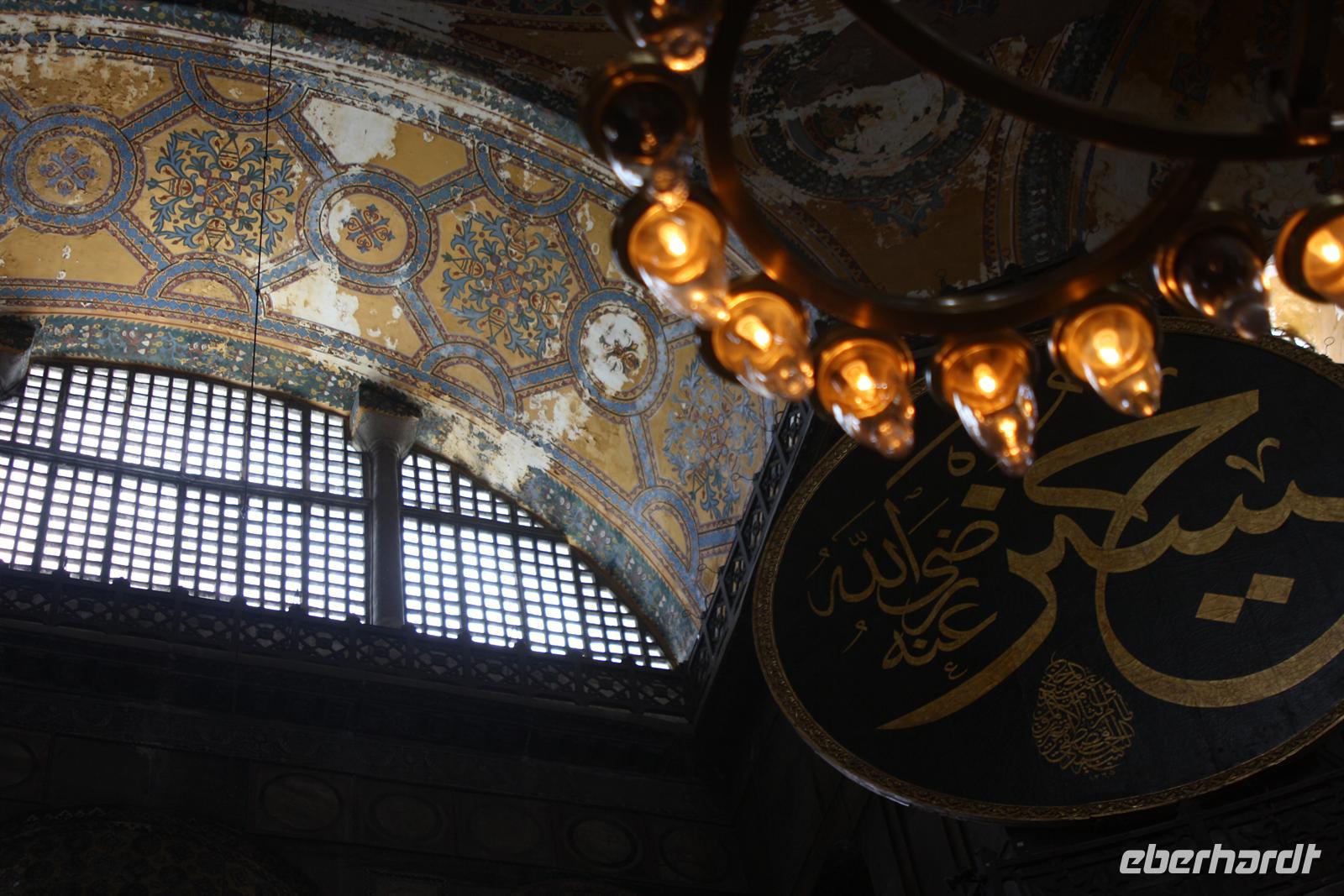 Gemeinsam in der Eberhardt Gruppe fuhren wir auf den ersten Stadthügel auf dem sich eine Vielzahl der imposanten Sehenswürdigkeiten Istanbuls befinden. Unser erster Spaziergang führte uns durch das Hippodrom, die alte Pferderennbahn. Auf diesem Platz stehen einige Artefakte wie der Wilhelmbrunnen, der Obelisk aus Ägypten. Gleich nebenan ragt ein beachtliches Bauwerk empor, die Blaue Mosche. Barfüssig und bedeckt traten wir in diesen ehrwürdigen Sakralbau ein und bestaunten die schönen blau-weißen Fliesen. Anschließend gingen wir ein paar Schritte bis zur Hagia Sophia, die ehemalige Katholische Kirche ist heute ein Museum, indem man sowohl christliche, als auch islamische Mosaike und Relikte zu sehen sind. Für Stärkung sorgte ein landestypisches Dreigangmenü, bevor wir den Topkapi Palast besuchten. Der ehemalige Sultanspalast beherbergt viele Schätze aus vergangenen Zeiten, wie die Edelsteinschmuckstücke, Gewänder und Waffen. Am Nachmittag besuchten wir den großen Basar - ein Labyrinth aus Schmuck, Tüchern, Leder, Fellen, Dekorationsartikel und vielem mehr. Hier findet der ein oder andere ein schönes Souvenir. Am Abend kamen sowohl die Fussballfans , als auch die Freunde von Abendshows auf Ihre Kosten. Die Gäste Felix Schlebusch (Fussballexperte und Radiomoderator) und Elke Winter (Travestiekünstlerin) haben uns ab diesem Tag auf unserer Reise begleitet. Im Theater präsentierte uns Elke Winter eine brisante und überaus humorvolle Show.