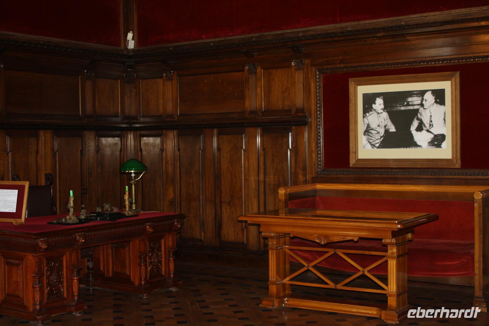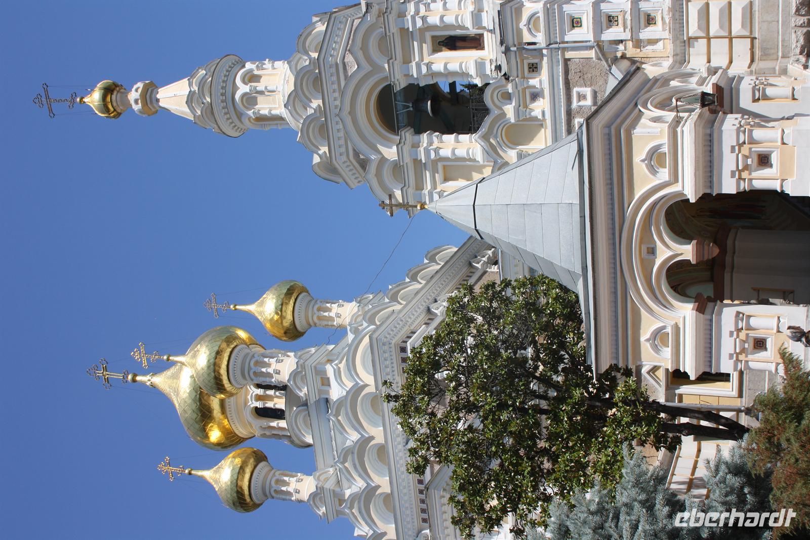 In Jalta wurde große Geschichte geschrieben - 1945 kamen die alliierten Regierungschefs Churchill, Stalin und Roosevelt im Liwadija-Palast zusammen um die Weltmacht neu aufzuteilen. Auf dem inkludierten Eberhardt Ausflug betraten wir historischen Boden - den weißen Palast mit Blick auf das schwarz Meer, welchen bereits Zar Nikolaus II mit seiner Familie genoss. Wahrzeichen der Krimhalbinsel ist jedoch ein anderes Bauwerk - das Schwalbennest thront über der Schwarzmeerküste. Das angenehme Klima, welchen den Anbau des Krimsektes ermöglicht, hat auch den Schriftsteller Tschechow hier her gezogen. Wir besuchen seine weiße Datschia inmitten eines schön angelegten Gartens. Mit einigen Gästen spazierten entlang der belebten Hafenpromenade zur Alexander-Newski-Kathedrale, bevor wir wieder ablegten.
