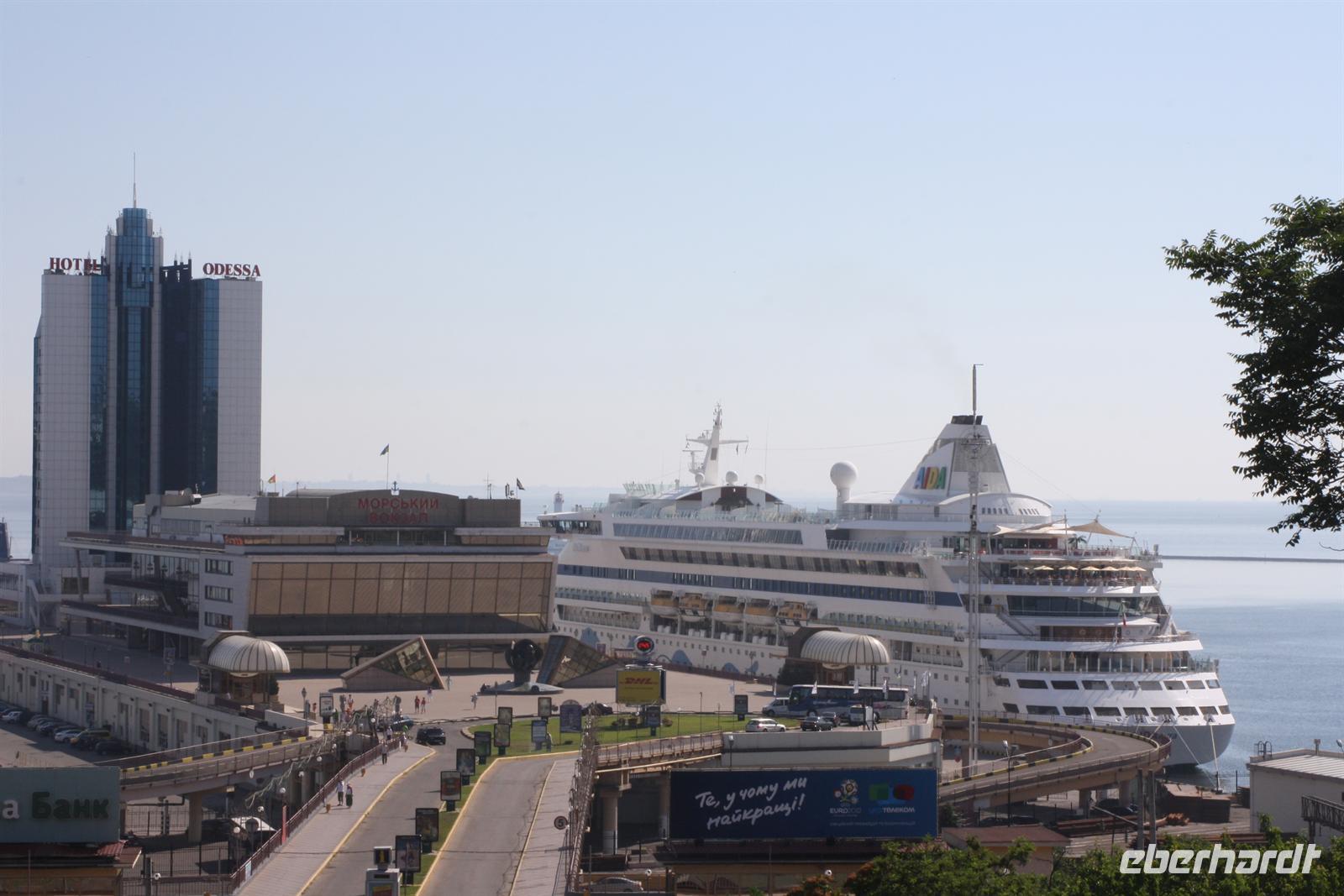 Die majestätische Potemkinsche Treppe führt direkt vom Passagiershafen in die Innenstadt Odessas, durch einen optischen Trick wirkt die Treppe länger und größer als sie wirklich ist. Einige Gäste nutzen den Tag um sich die Planstadt Katharinas der Großen, im italienischen Stil, anzuschauen. Ein Glanzstück ist die das neubarocke Opernhaus, welches im akustischen Vergleich mit der Semperoper und im optischen Vergleich mit der Wiener Oper mithalten kann. Zahlreiche Verzierungen im Rokkokostil zieren das Innengebäude. Gartenanlagen und Hinterhöfe erinnert an Marseille oder italienische Städte wie Florenz. In den Restaurant werden wir auf kulinarische Reise nach Afrika oder Mexico eingeladen. Im Anschluss bot die Gastdarstellerin Elke Winter wieder eine frivole Show im Theater und die Live Bands unterhielten mit bester Musik in den Bars.