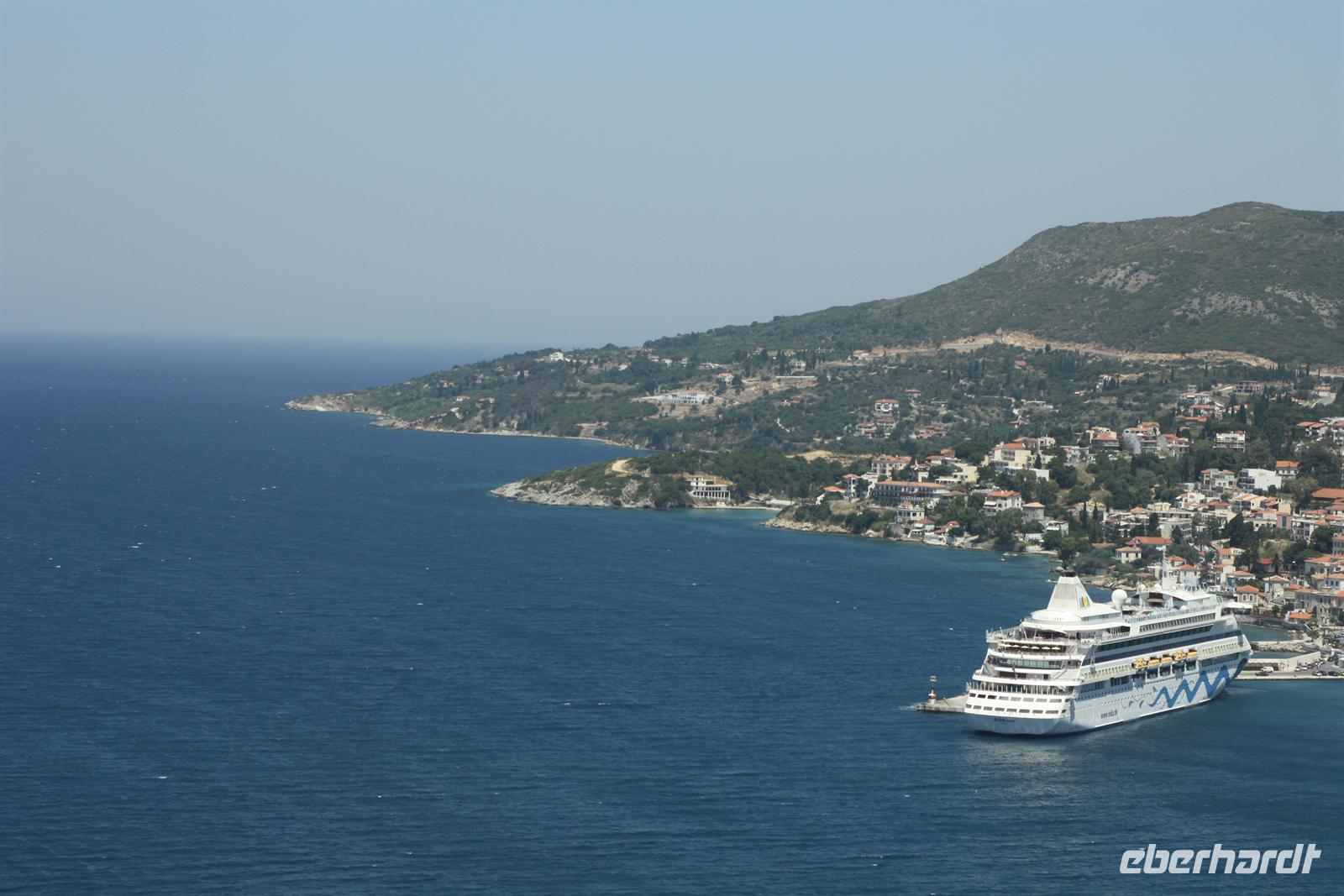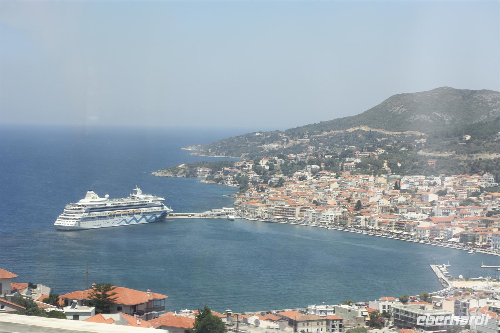 Die kleine beschauliche griechische Insel Samos bot uns an diesem Tag abwechslungsreiches. Sowohl historische Stätten, wie den Tempel der Göttin Hera oder den Hafen von Pythagoria, als auch erlebnisreiches wie der Besuch verschiedener Bergdörfer und einen Badeaufenthalt. Eines der schönsten Örtchen der Insel, Pythagoria, erhielt seinen Namen vom berühmtesten Sohn der Stadt - dem Mathematiker und Philosoph Pythagoras. Hier konnten wir entlang des Hafens oder durch die Gassen schlendern. Am späten Nachmittag reichte man uns griechische Spezialitäten, als wir den Blick auf das türkisblaue Meer genossen. Am Abend boten die Gastkünstler Elke Winter und Jean Pascal im Theater interessierte eine brisante Show.