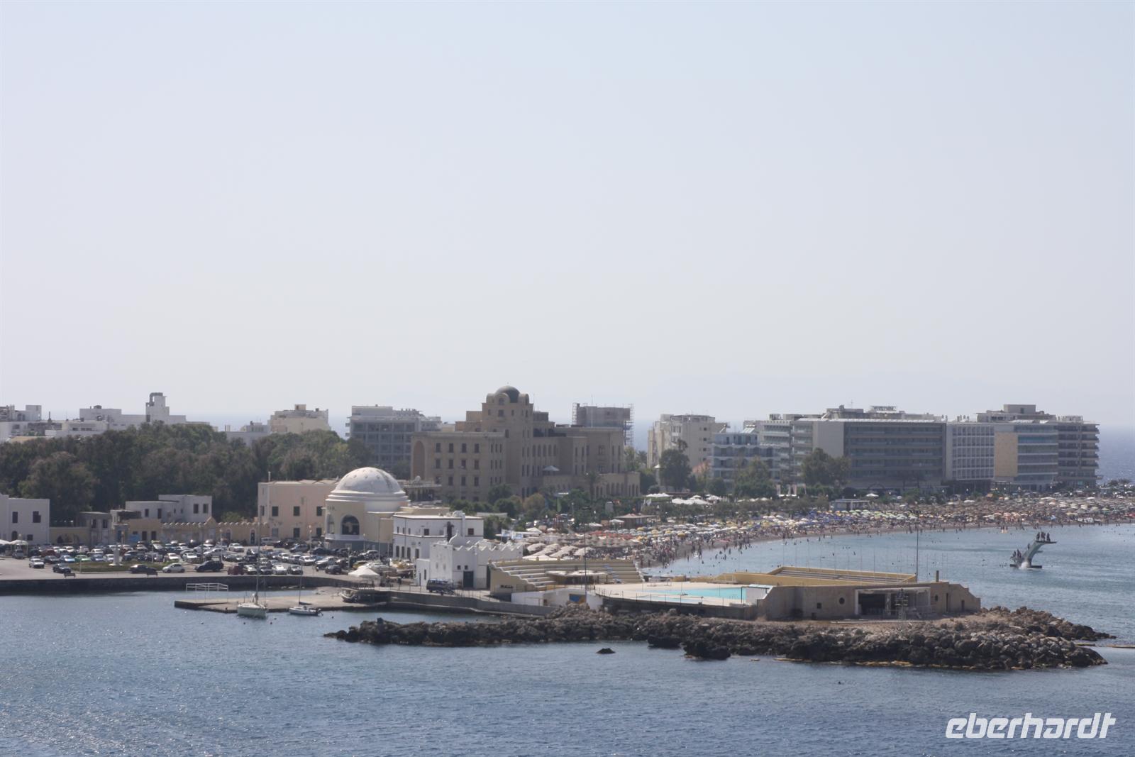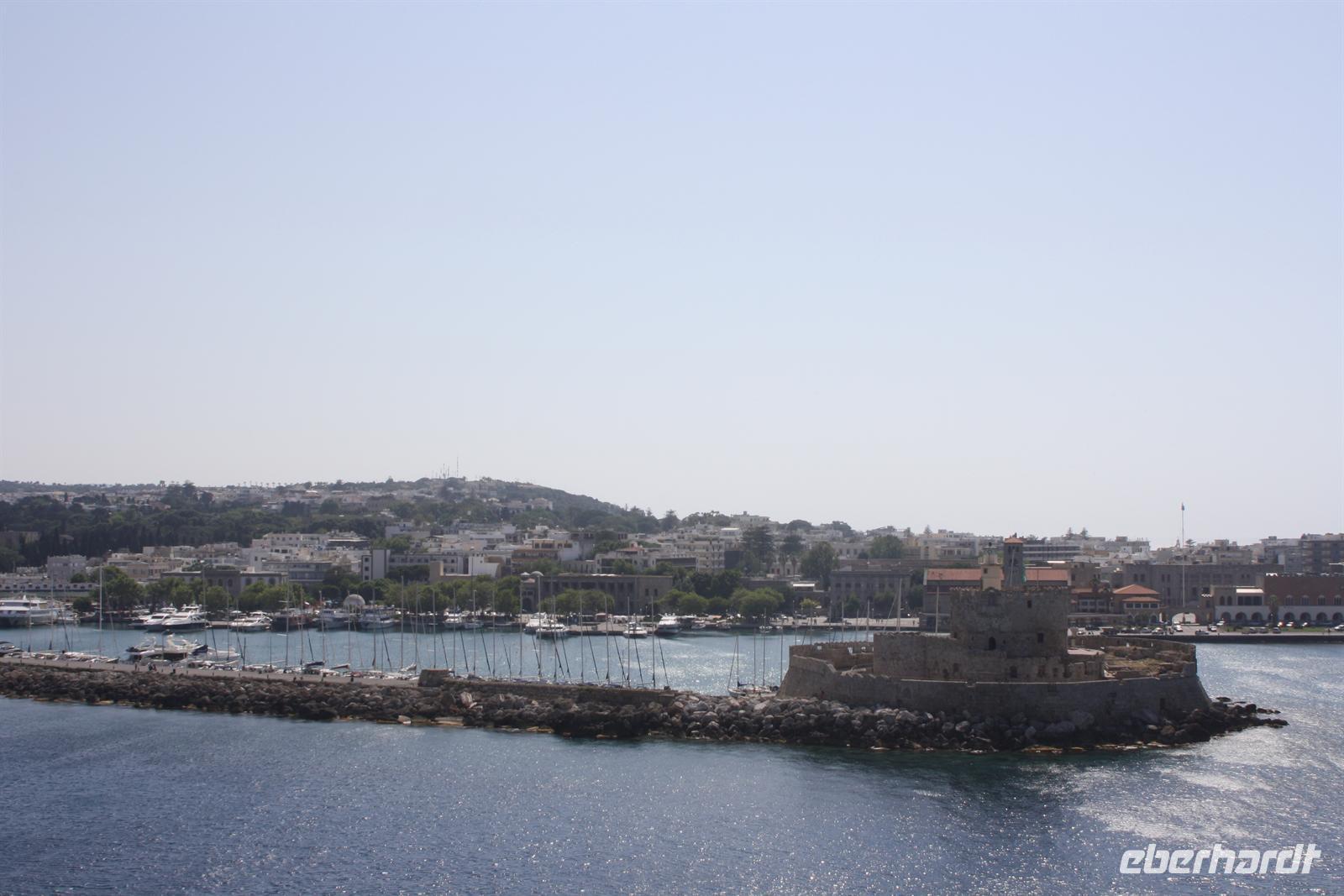 Schon von weitem erkannte man die mächtige Stadtmauer von Rhodos-Stadt als wir in den Hafen einliefen. Hier unternahmen wir einen Eberhardt-Inklusiv Ausflug und spazierten mit unserer Stadtführerin durch die Altstadtgassen zum Großmeisterpalast. Der Großmeisterpalast beherbergt kunstvolle Mosaiken von der Insel Kos, die von den griechischen Göttern erzählen. Außerdem hatte man eine Vorstellung wie man damals hier lebte. Anschließend spazierten wir durch die bekannte Ritterstraße. Nach dem zweistündigen Stadtrundgang durch die Altstadt von Rhodos, spazierten wir in die nahegelegene Neustadt und ihren Hafen. Hier zeugen zwei Säulen auf denen Hirsche, die Wahrzeichen der Stadt, platziert sind vom einstigen Standort des Kollos von Rhodos. Am Abend hieß es dann leider schon Abschied nehmen. Neben einem gemeinsamen Abendessen in der Gruppe, wurde uns an diesem Abend unsere Reise noch einmal in bewegten und unbewegten Bildern ins Gedächtnis gerufen. Von den Offizieren und Mitarbeiter wurden wir im Theater verabschiedet und konnten im Anschluss ein letzes mal dem Showensemble zusehen. Auf dem Pooldeck rundeten wir den Abend bei einem Gläschen Sekt ab.