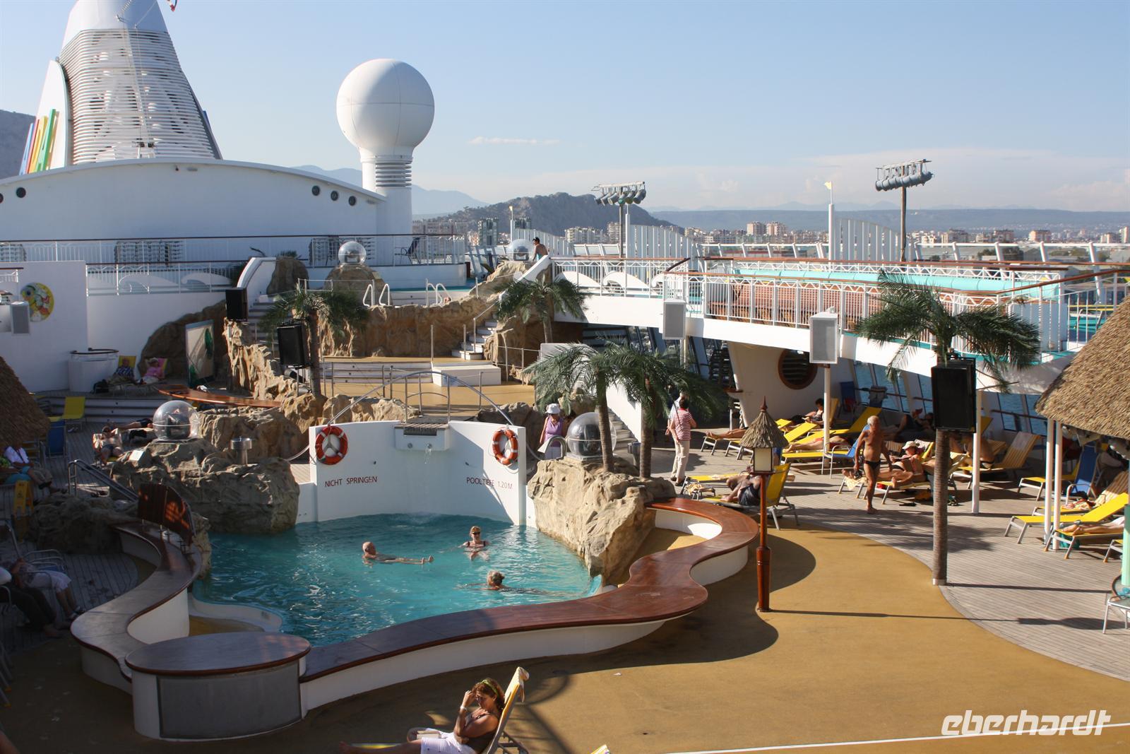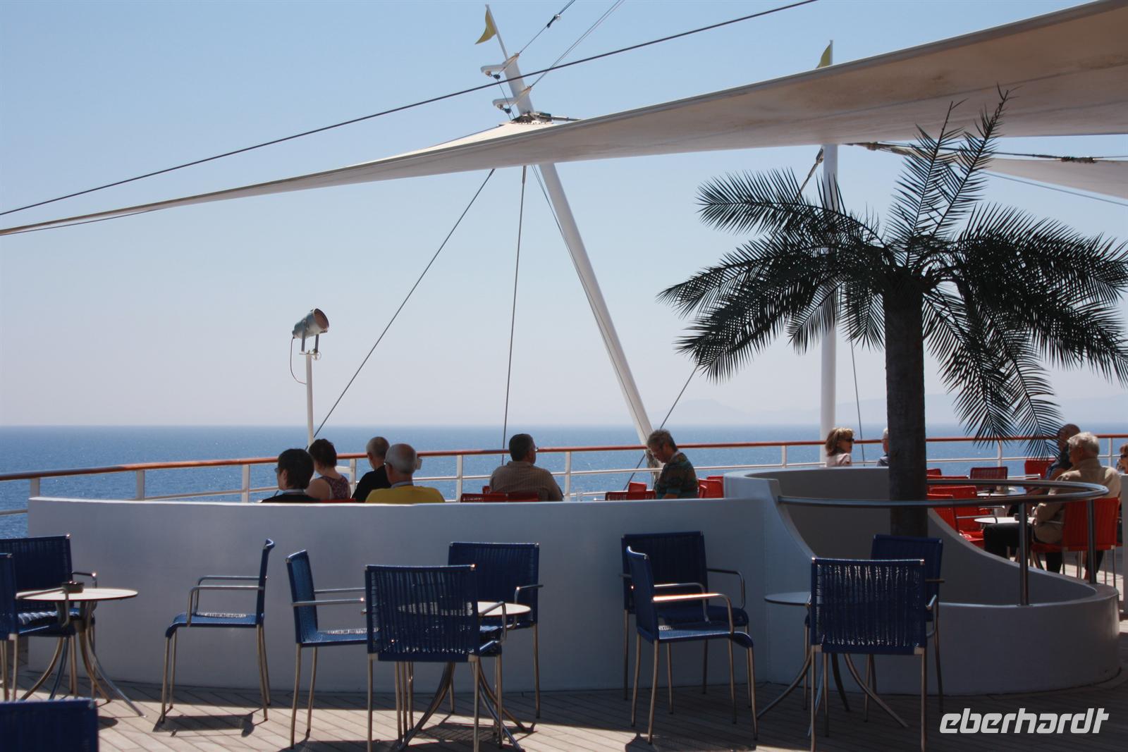 Der letzte Seetag wurde wieder mit einem delikaten Brunchbuffet auf dem Pooldeck eingeleitet. Neben spannenden Vorträgen über Thessaloniki und Makedonien und deren antiken Schätzen oder Rhodos und Samos, konnte man den Tag nutzen um einen Koch- oder Tanzkurs zu besuchen, dem Showensemble auf dem Pooldeck zu lauschen, an den Animationsaktivitäten teilzunehmen oder um sich einfach an den vielen Sonnenstunden zu erfreuen. Auch an diesem Abend spielten Live Bands in der AIDA Bar oder der Nightfly Bar, wurde Bingogespielt oder nach einem Experten Gespräch Fussball geschaut.