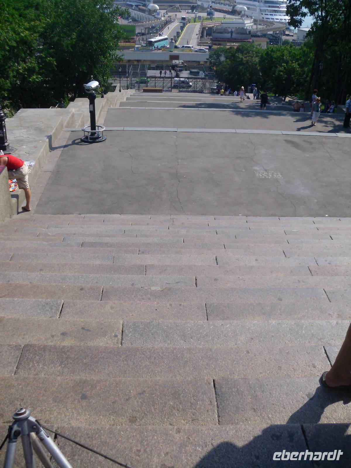 Mehr als die Hälfte unserer wunderschönen Reise war bereits zu Ende. Doch an die Heimkehr dachte von uns noch niemand, dafür genossen wir viel zu sehr, dass was wir erleben konnten während dieser Kreuzfahrt. Und ehe wir uns versahen, lagen wir auch schon im nächsten Hafen in der Ukraine. In Odessa, dem Marseille der Ukraine, sollten wir den heutigen Tag verbringen. Wieder hatte jeder von uns die Möglichkeit, den Ausflug seiner Wünsche zu buchen und sah war es, dass jeder das fand was ihn interessiert. Für die meisten von uns und mich hieß das Odessa mit dem Bus erkunden und die Oper. 1794 wurde Odessa auf Wunsch von Zarin Katharina die Große erbaut, denn sie wollte einen Hafen am Schwarzen Meer. Durch den schachbrettartigen Aufbau der Stadt hatten wir im Bus immer mal wieder das Gefühl, dass wir im Kreis fuhren, doch so war es nicht immer. Den Anfang machten wir mit 192 Treppen, wir erklommen die Potemknischen Treppen. Nein natürlich taten wir das nicht, der Bus setzte uns oberhalb der Treppe ab, wodurch wir einen Blick auf den Passagierhafen hatten, in dem unser schwimmendes Hotel die AIDAaura lag.