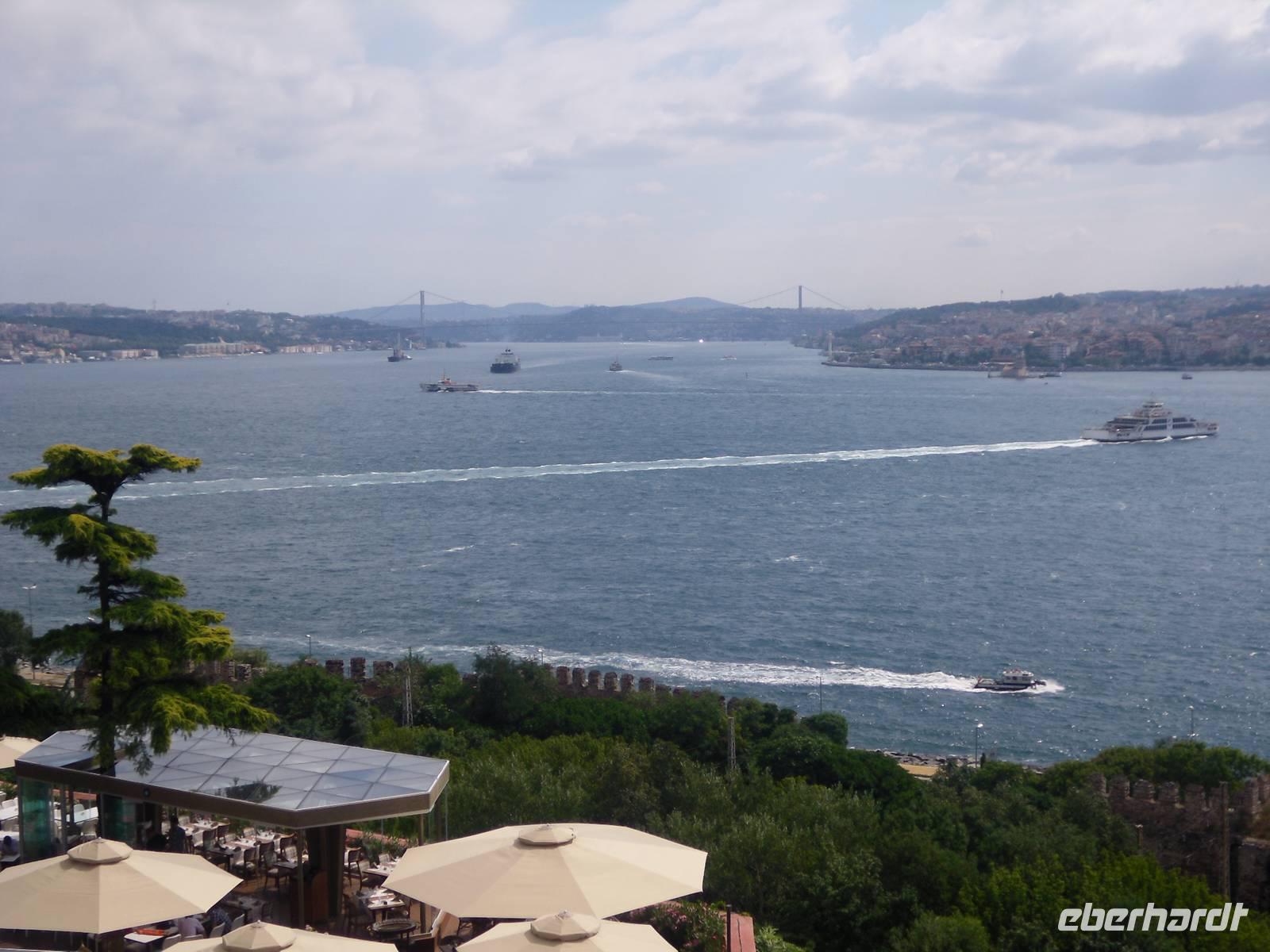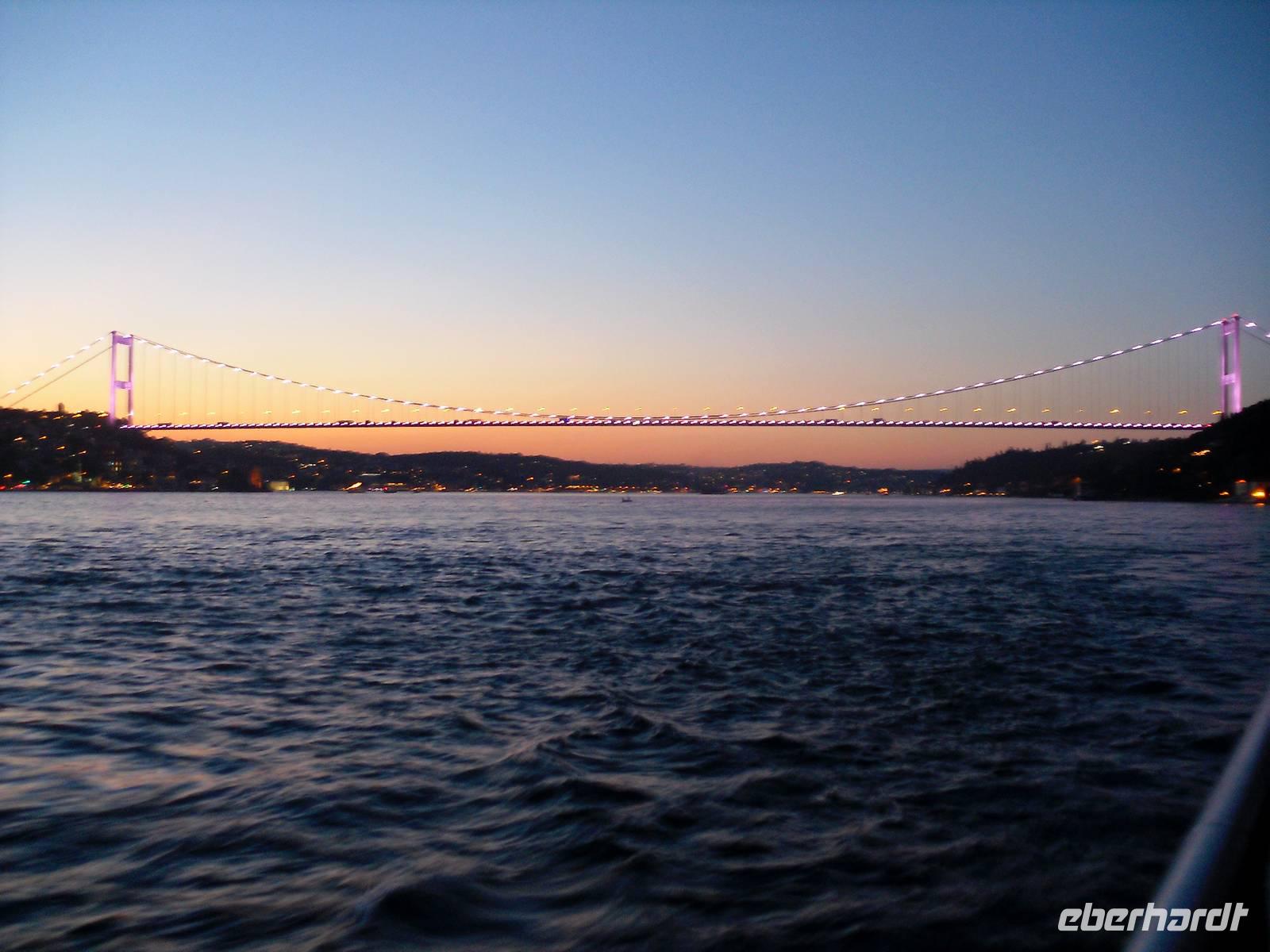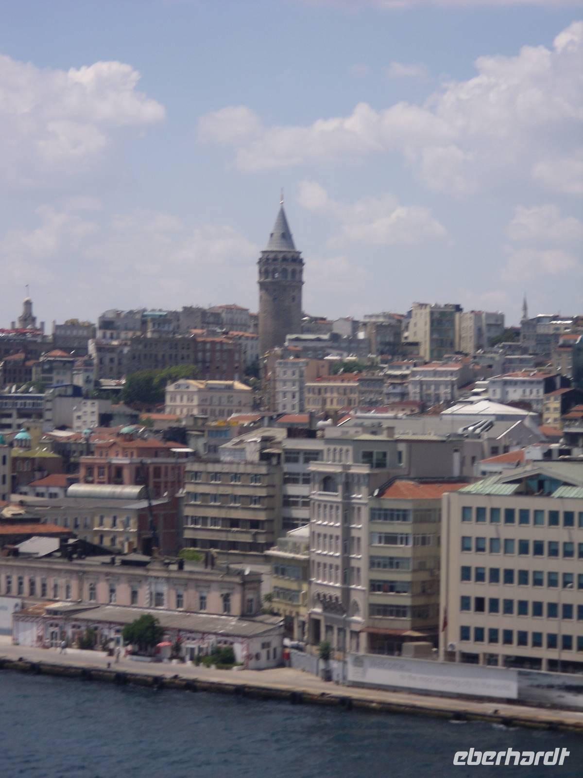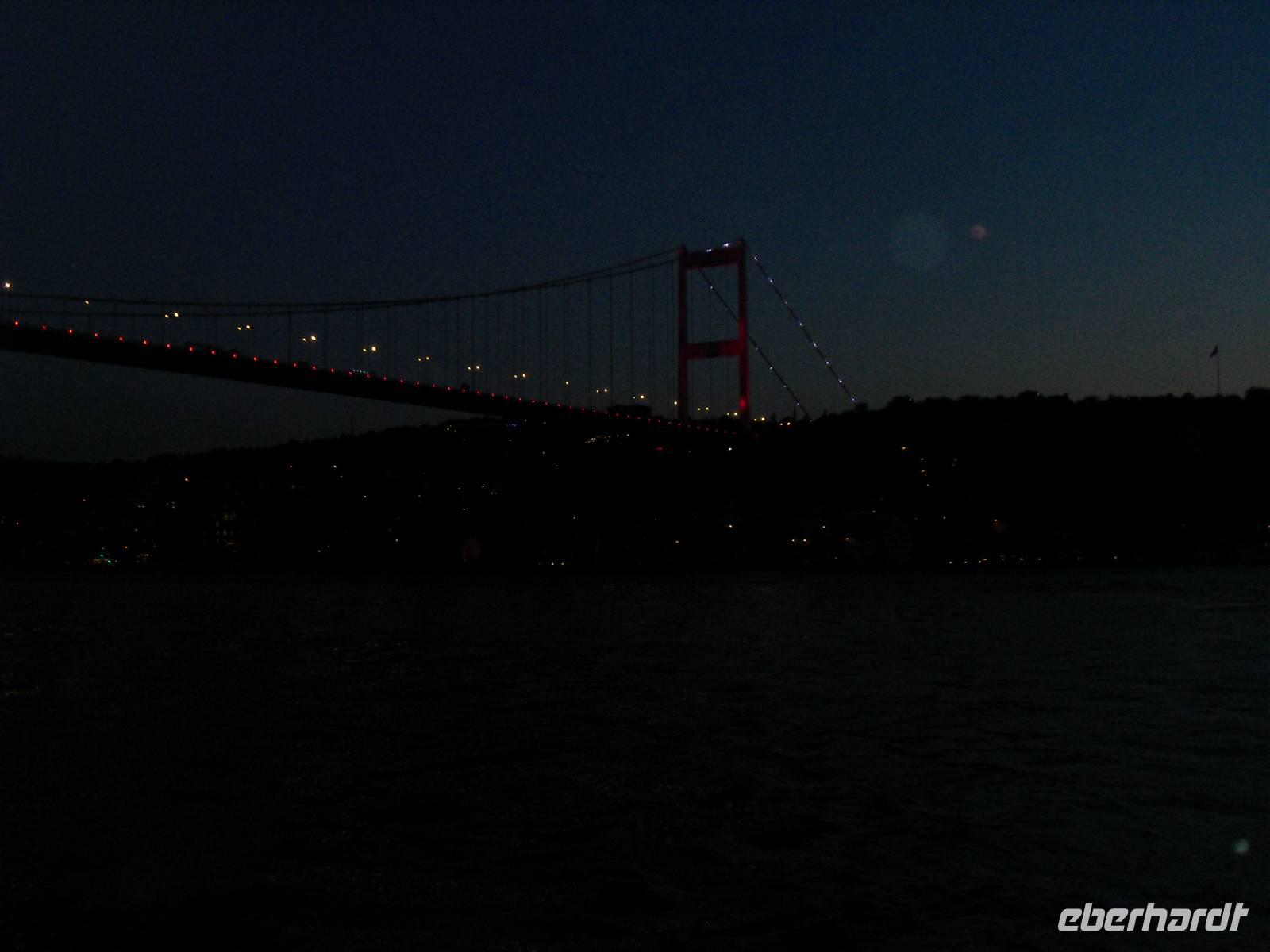 Leider war das in der Botschaft, wie das tägliche Prospekt von AIDA bei meinen Gästen genannt wurde, nicht so beschrieben das es sich darauf schließen ließ, dass es sich bei dem Künstler am Vortag um einen Travestie hielt, sonst wären mehrere aus unserer Reisegruppe im Theater gewesen. Aber davon ließen wir uns unsere gute Laune nicht nehmen und freuten uns auf, ich glaube das Highlight überhaupt während unserer Kreuzfahrt. Mit voller Kraft, also 21 Knoten, steuerte uns die Crew um unseren Kapitän bestens unterhalten nach Istanbul. Die Einfahrt vom Meer wurde mit netten Kommentaren eines Crewmitgliedes unterlegt, so wussten wir immer ganz genau was vor uns lag. Vorbei an der Sultan-Ahmet-Moschee, der Hagia Sophia und dem Topkapi-Palast erreichten wir zum zeitigen Nachmittag nach 267 Seemeilen die einzige Metropole auf zwei Kontinenten. Viele nutzten die Gelegenheit und erkundeten den Stadtteil Karaköy schon mal zu Fuß, ehe es abends für die meisten von uns auf den gebuchten Ausflug ging. Nach dem Abendessen bei untergehender Sonne hatten viele uns ihre gebuchten Ausflüge. Die pulsierende Stadt am Abend kennen lernen, das war unser Plan und so faszinierte uns die schillernde Stadt bei Nacht zu Wasser oder zu Land. Ein wenig abgeändert wurde das Programm durch die aktuell herrschenden Bedingungen in Istanbul, den Protesten am Taksim-Platz. Die Sicherheit stand an oberster Stelle und so bekamen wir die Freizeit nach einer abendlichen Bootsfahrt in einem anderen Stadtteil wie vorher beschrieben, doch damit hatte keiner von uns ein Problem und so genossen wir den angenehm warmen Abend in der Stadt.