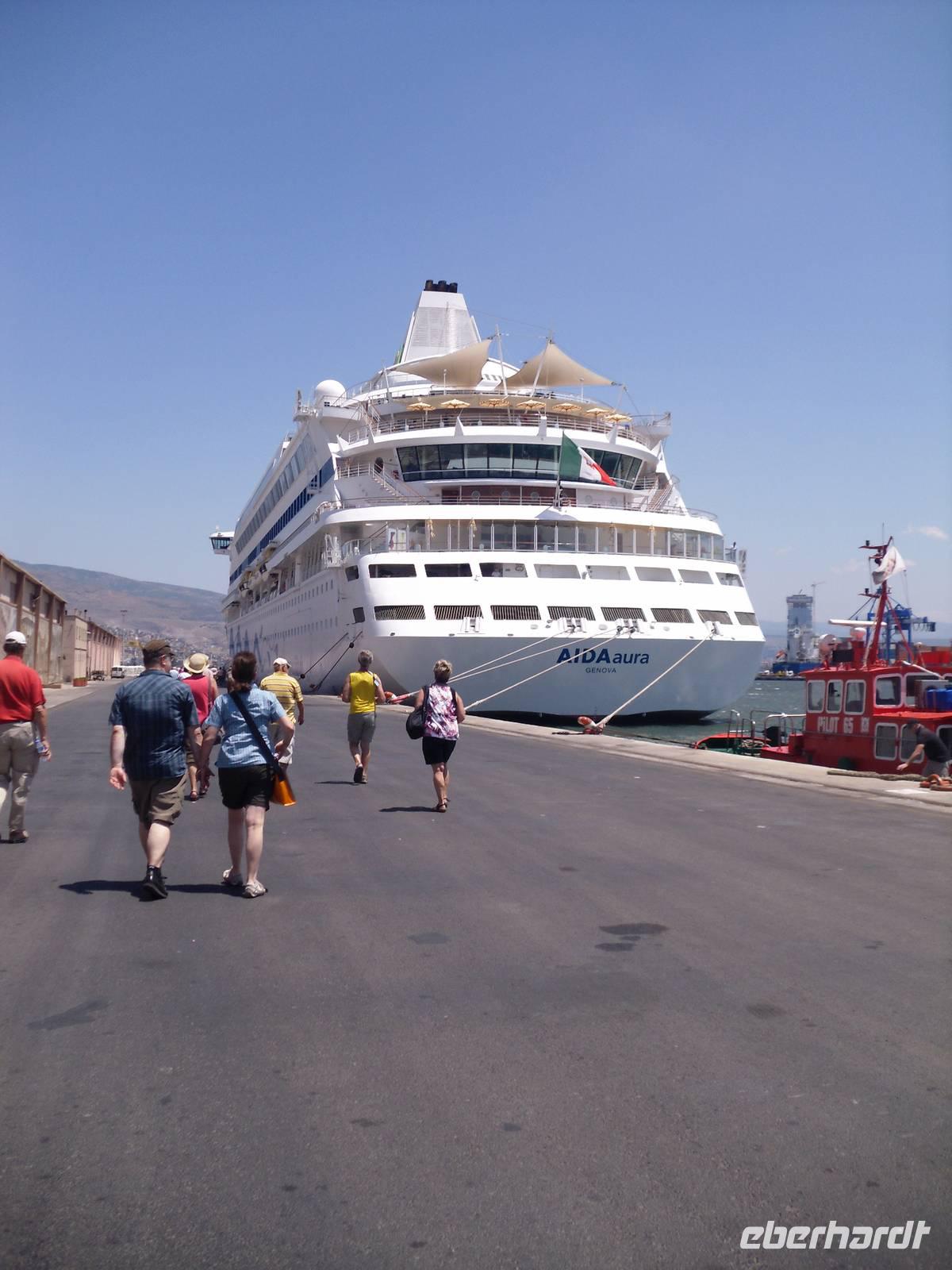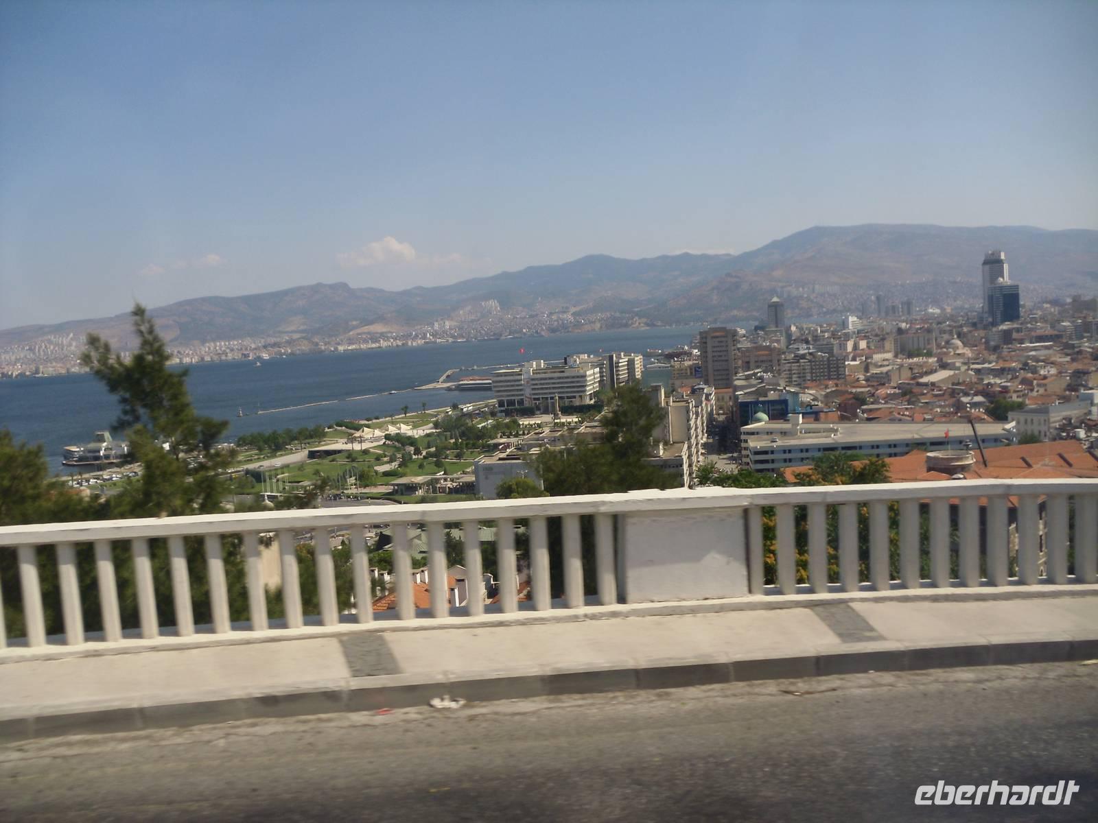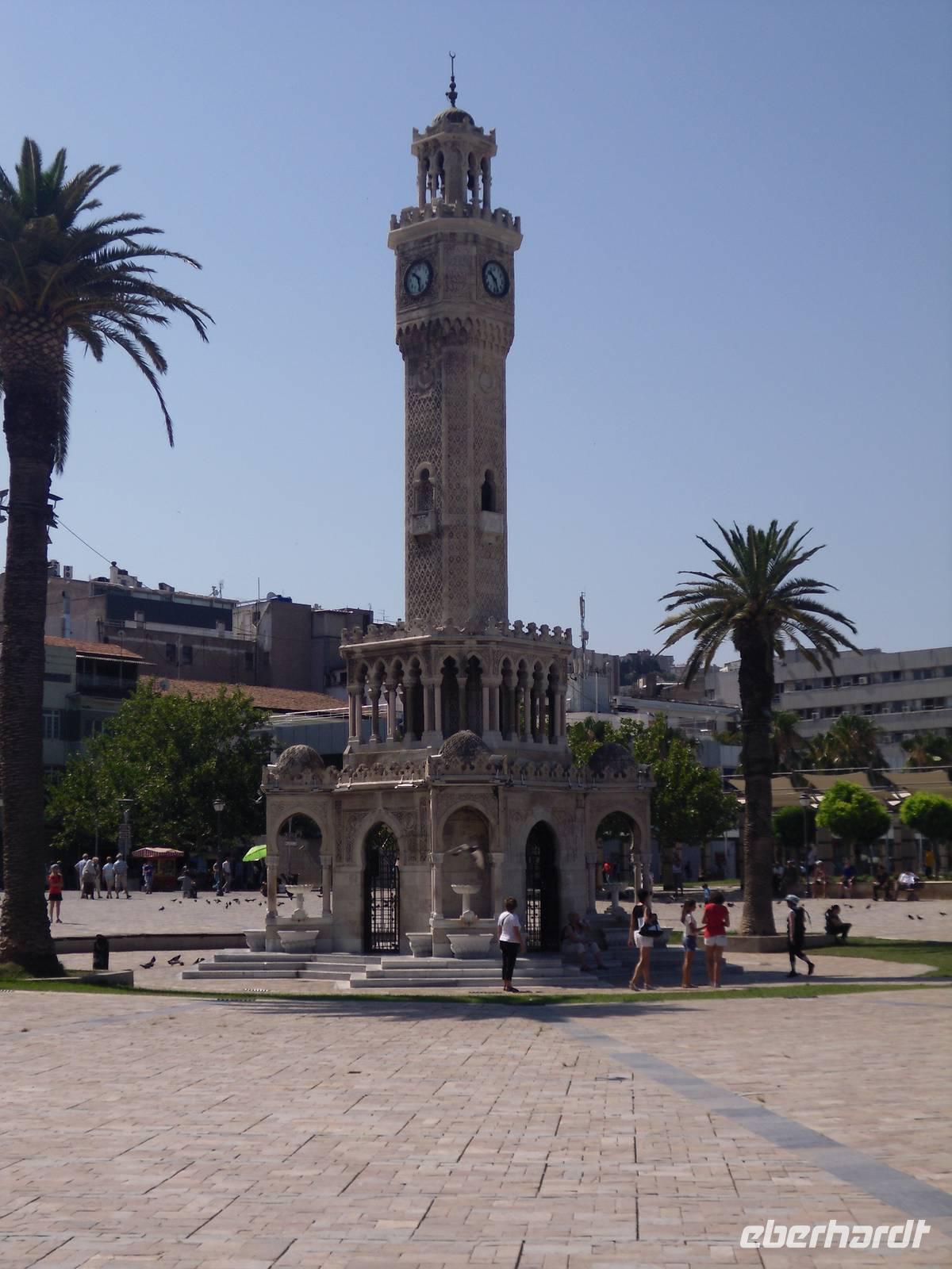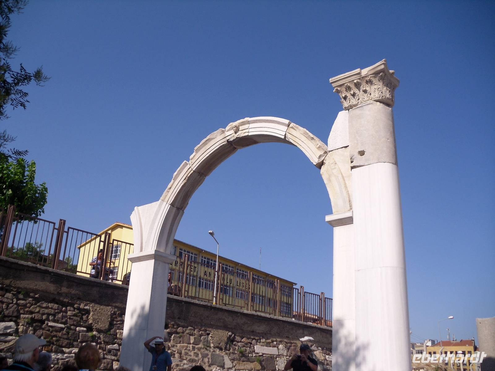 Ich besuchte mit den meisten unserer „kleinen Familie" die Hafenstadt Izmir mit der Agora, einer Panoramarundfahrt und einem Basarbesuch. Die Agora wurde so heißt es wurde von Hippodamos nahe dem Zentrum dreietagig erbaut. Leider verlief der Ausflug für „meinem" Bus dann nicht so wie ausgeschrieben. Wir besuchten sofort den Basar und bekamen hier lange Freizeit, doch zum shoppen war von uns eigentlich keiner hier gewesen. Der Uhrenturm auf dem Platz ist beliebter Treffpunkt und gilt als Wahrzeichen der Stadt. Er war ein Geschenk Kaisers Wilhelm II., den Namen sollten wir uns merken, denn es war nicht das letzte Mal das wir von ihm während unserer Reise hörten. Pünktlich zum Mittag waren wir wieder an Bord und ließen uns den Nachmittag von den Sonnenstrahlen, die wir in Deutschland vermissten verwöhnen.