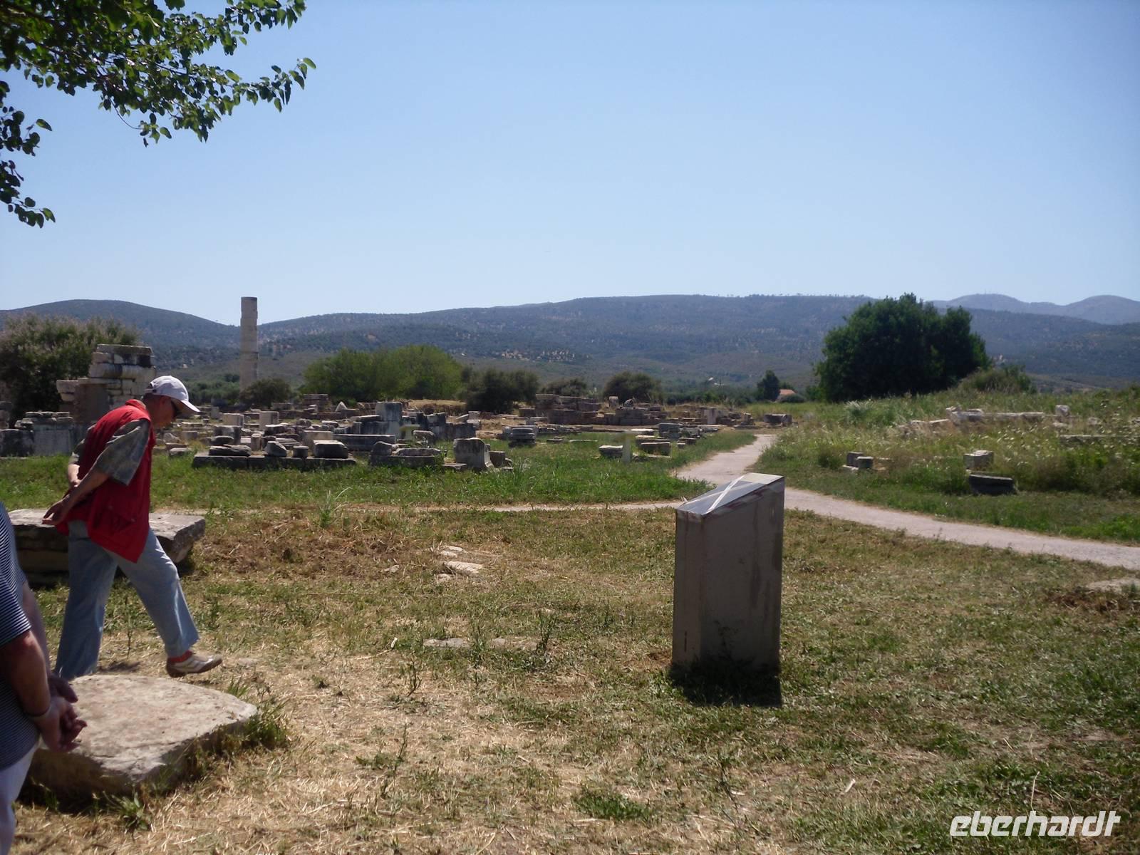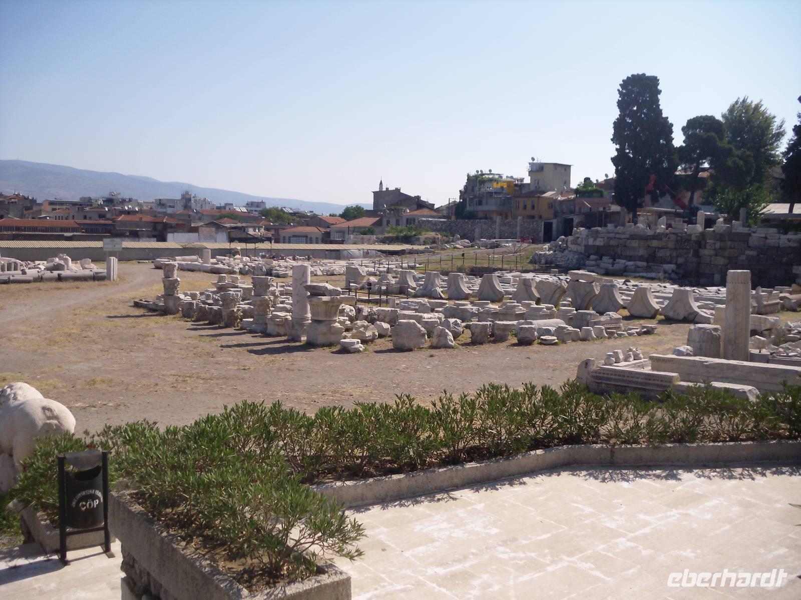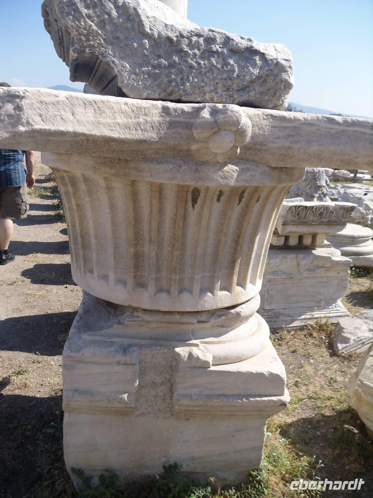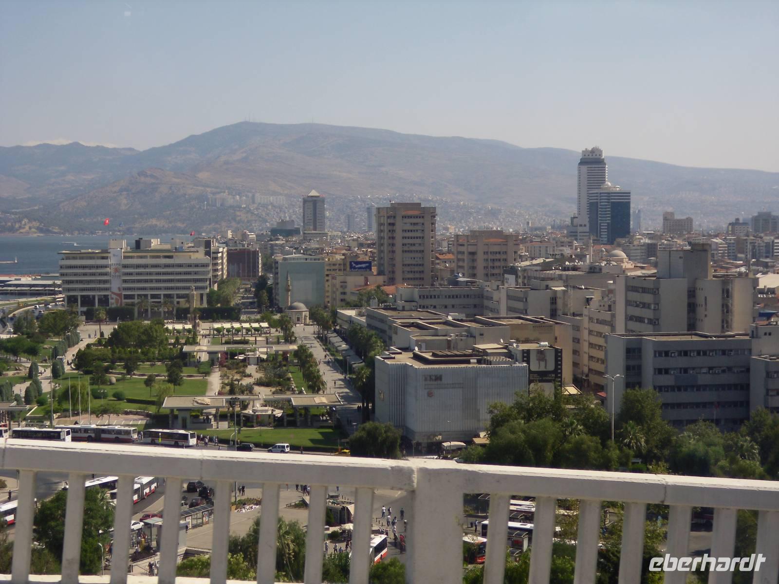 Ich besuchte mit den meisten unserer „kleinen Familie" die Hafenstadt Izmir mit der Agora, einer Panoramarundfahrt und einem Basarbesuch. Die Agora wurde so heißt es wurde von Hippodamos nahe dem Zentrum dreietagig erbaut. Leider verlief der Ausflug für „meinem" Bus dann nicht so wie ausgeschrieben. Wir besuchten sofort den Basar und bekamen hier lange Freizeit, doch zum shoppen war von uns eigentlich keiner hier gewesen. Der Uhrenturm auf dem Platz ist beliebter Treffpunkt und gilt als Wahrzeichen der Stadt. Er war ein Geschenk Kaisers Wilhelm II., den Namen sollten wir uns merken, denn es war nicht das letzte Mal das wir von ihm während unserer Reise hörten. Pünktlich zum Mittag waren wir wieder an Bord und ließen uns den Nachmittag von den Sonnenstrahlen, die wir in Deutschland vermissten verwöhnen.