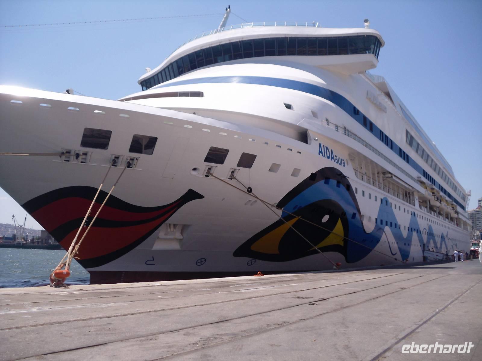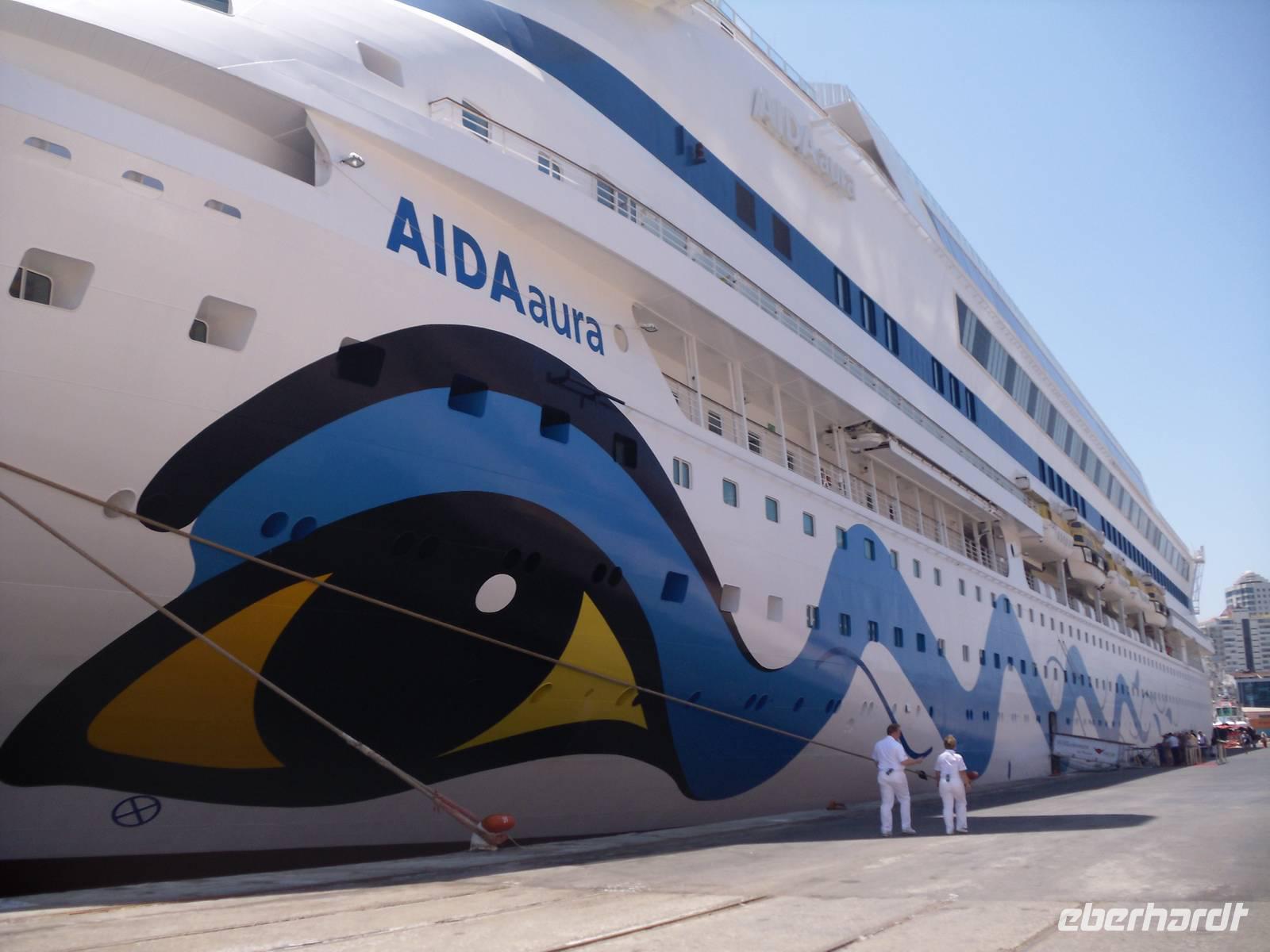 Als wir den Flughafen-Terminal verließen wurde uns erst richtig bewusst was in den kommenden 14 Tagen auf uns zukommt. Von herrlichem Sonnenschein begleitet erreichten wir nach kurzer Fahrtzeit auf schon den Passagierhafen in dem unsere AIDAaura lag. Noch mal hieß es Pass- und Gepäckkontrolle, doch Sicherheit ging vor und wir ließen alles über uns ergehen.