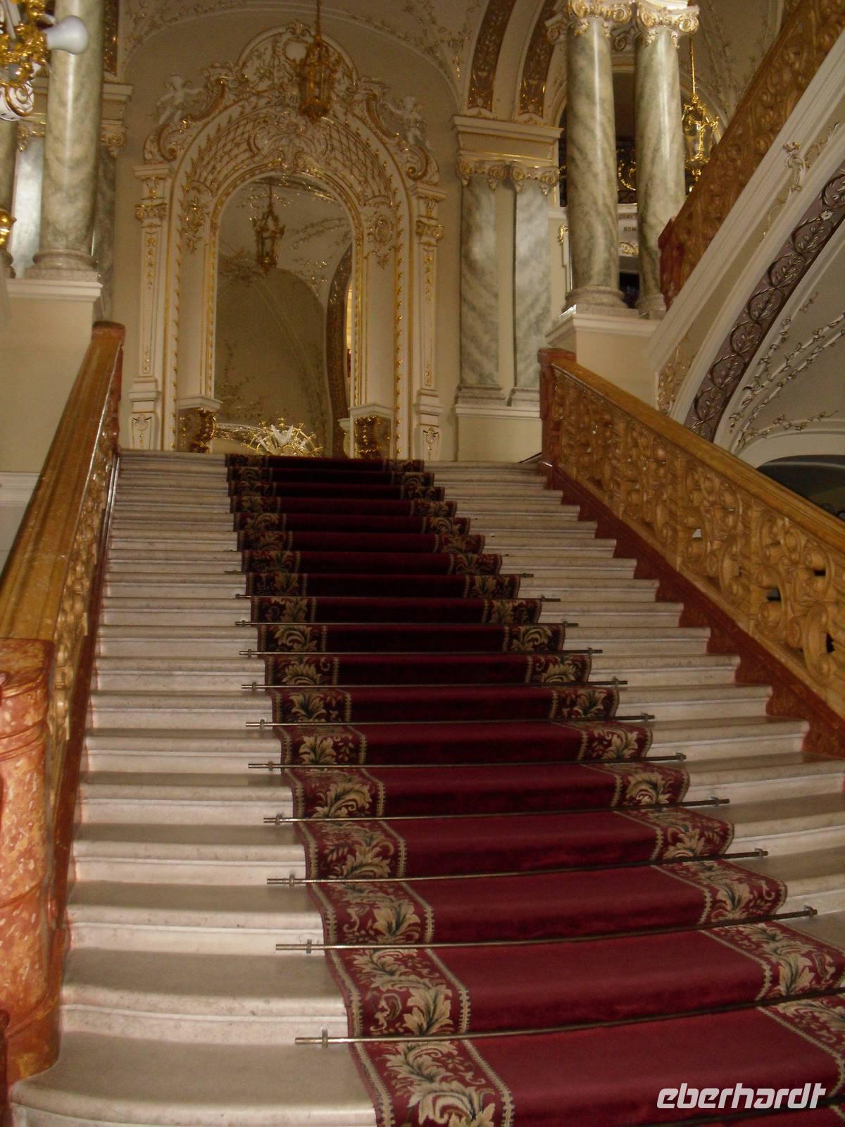 Durch die Straßen der Stadt erreichten wir schließlich die Oper. Von außen im neubarocken Stil erbaut, war die Oper bei ihrer Eröffnung 1887 die zweitgrößte auf der Welt. Im Inneren bestach die Oper im Rokoko Stil und vielen verschnörkelten Elementen. Prunk und Gold sollten natürlich auch nicht fehlen, in dem Bauwerk in dem heute noch Aufführungen wie Schwanensee und Cinderella gespielt werden.