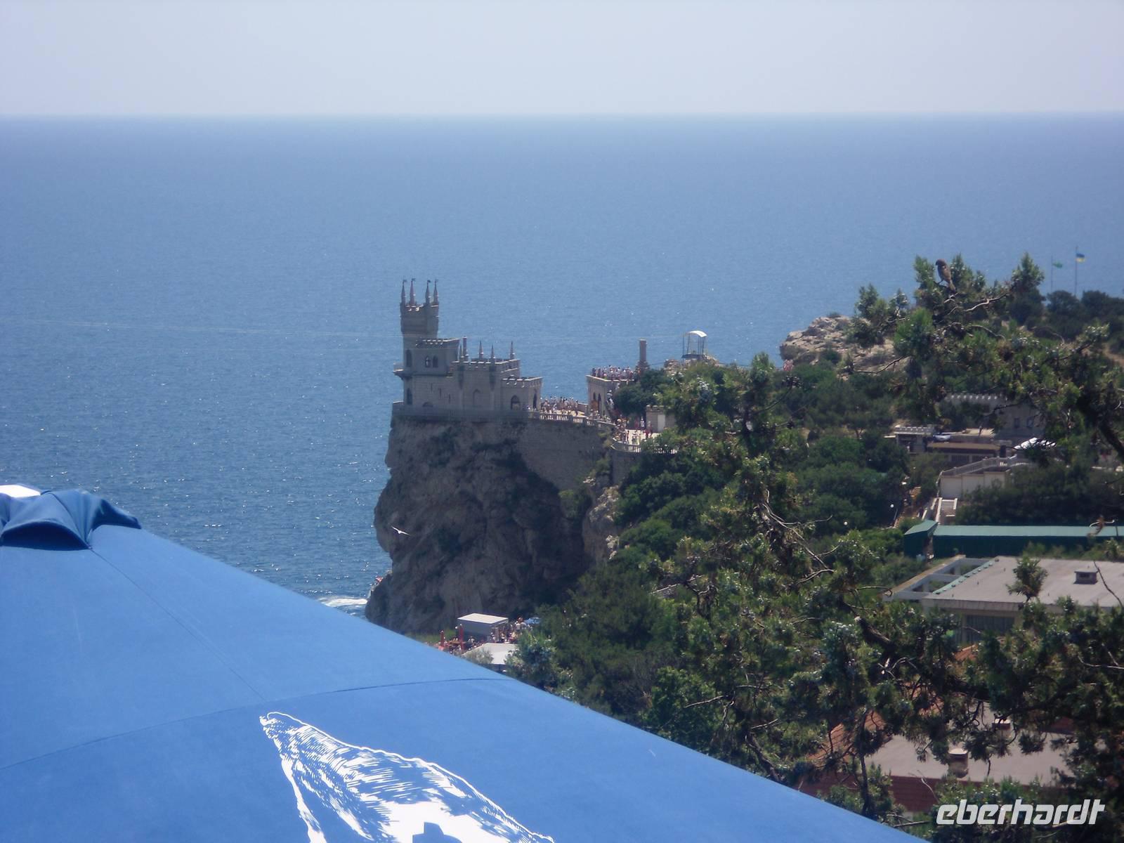 Doch die Halbinsel Krim hatte nicht nur einen Palast zu bieten, sondern auch noch ein Schloss zu bieten. Viele wissen sicher ohne, dass ich den Namen nenne, dass ich vom Schwalbennest, welches Elemente der schottischen Neugotik mit der orientalischen Architektur verbindet, rede. Und da wir schon mal hier waren, lud ich meine „durstige" Reisegruppe zu einem Gläschen Schaumwein, Krimsekt, ein. Natürlich gab es für jeden nur ein Glas, denn wir wollten ja an noch zu einem weiteren Ausflugsziel. „Der Mensch ist das, woran er glaubt", so lautet eines der berühmten Zitate des Schriftstellers Anton Tschechow. Sein Haus, die „Weiße Datscha" war unser letztes Ziel für den heutigen Tag. In der romantisch in einem kleinen Park angelegten Villa verbrachte der Tschechow die letzten Jahre seines Lebens und schrieb einige seiner berühmtesten Werke.