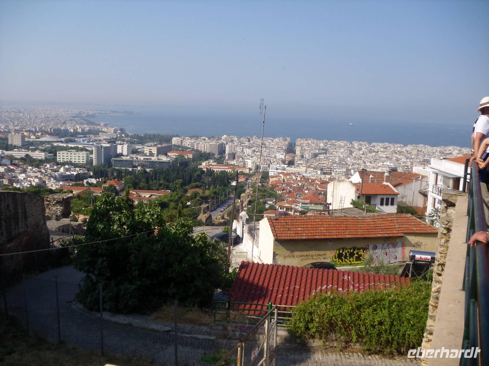 Schon im Laufe des Tages verkündete uns Kapitän Pedro, dass er unterwegs ein bisschen Gas gegeben hatte und wir unser Ziel eine Stunde eher erreichen würden als anfangs gedacht. Nach anderthalb Tagen auf hoher See und einer nächtlichen Durchfahrt durch die Dardanellen wollten wir auch alle mal wieder Festland unter unseren Füßen spüren. Als wir in Thessaloniki angelegt hatten, merkte man die Freude auf dem gesamtem Schiff darüber. Viele nutzten den bereits angebrochenen Abend um die Stadt schon mal ein wenig selbst zu erkunden. So auch ich und zwei meiner Reisegäste. Gemeinsam gingen wir ein wenig durch die Stadt um die Beine ein wenig in Schwung zu bringen und mal wieder etwas anderes zu sehen.