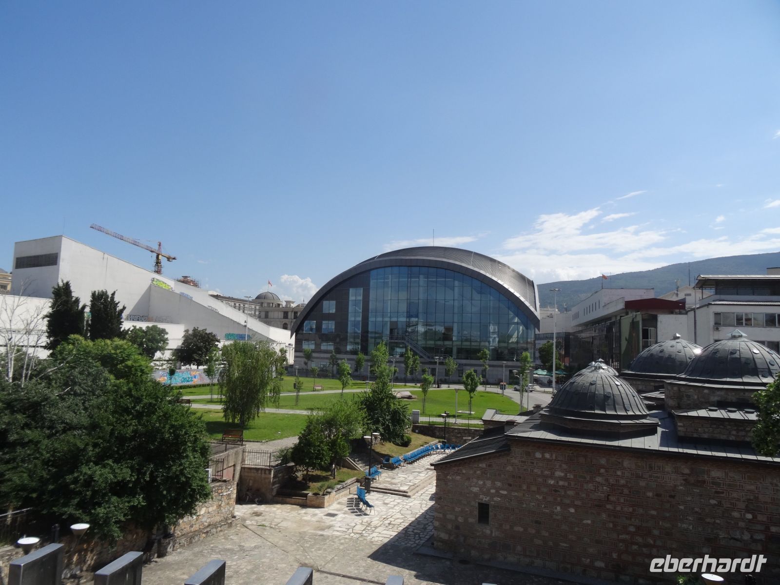 Skopje ist mit 540.000 Einwohnern die größte Stadt des Landes und das wirtschaftliche und wissenschaftliche Zentrum. Neben der modernen Neustadt gibt es auch noch Reste der Altstadt, Moscheen und alte Badehäuser und Karawansereien.