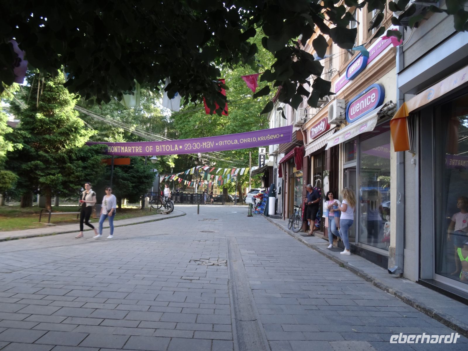 Danach geht es zu nordmazedonischen Grenze, an dieser Strecke ist Griechenland eine versorgungstechnische Wüste, keine Tankstelle und kein WC, da kann sich so eine Fahrt recht in die Länge ziehen. Endlich ist es doch geschafft und wir stehen an der Grenze. Die Kontrolle ist langsam, aber danach geht es mit voller Kraft Richtung Bitola, der drittgrößten Stadt Nordmazedoniens. In der Stadt leben ca. 75.000 Einwohner, neben den Mazedoniern sind es vor allem Albaner, Türken und auch die Minderheit der Aromunen. Die Türken nannten die Stadt im 14.Jahrhudert Manastir und machten aus ihr ein Verwaltungs- und Handelszentrum. Auch eine Militärakademie errichteten sie, an ihr lernte Kemal Atatütk. Bei einem Stadtbummel sehen wir das Gebäude, heute ist es ein Museum. Wir wandern die Fußgängerzone Breite Straße entlang und hören von den Problemen zwischen Albanern und Mazedoniern, die vor allem 2001 eskalierten.