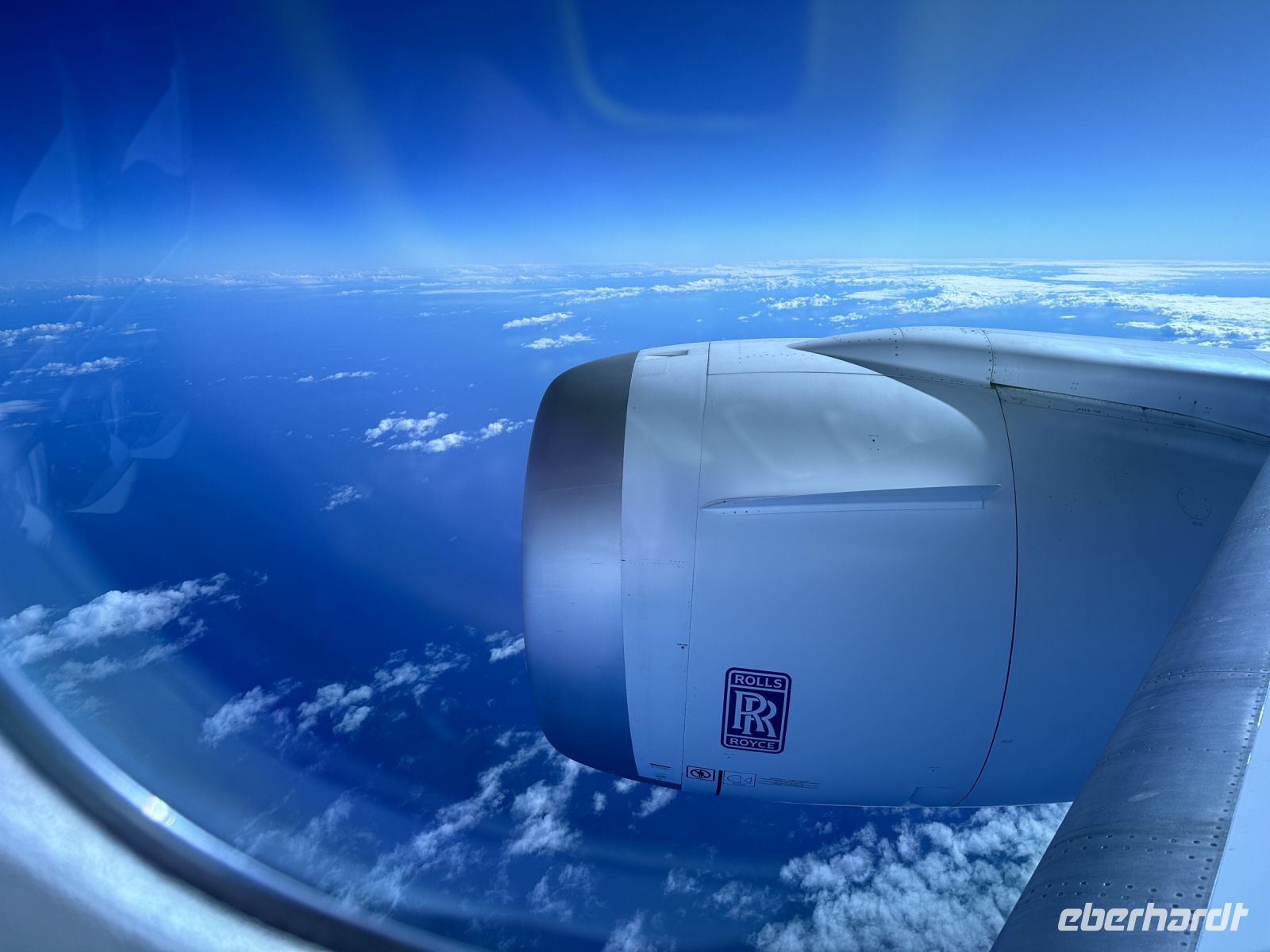 Wir fliegen mit der Fluggesellschaft LATAM. Die Sitze sind breit und komfortabel, an jedem Platz gibt es einen großen Bildschirm mit Unterhaltungsprogramm. Das Personal ist aufmerksam, hilfsbereit und freundlich. Nach etwa der Hälfte der Zeit gibt es ein Sandwich und etwas zu trinken. Nach viereinhalb Stunden erreichen wir die Osterinsel. Die Uhr stellen wir um zwei Stunden zurück.