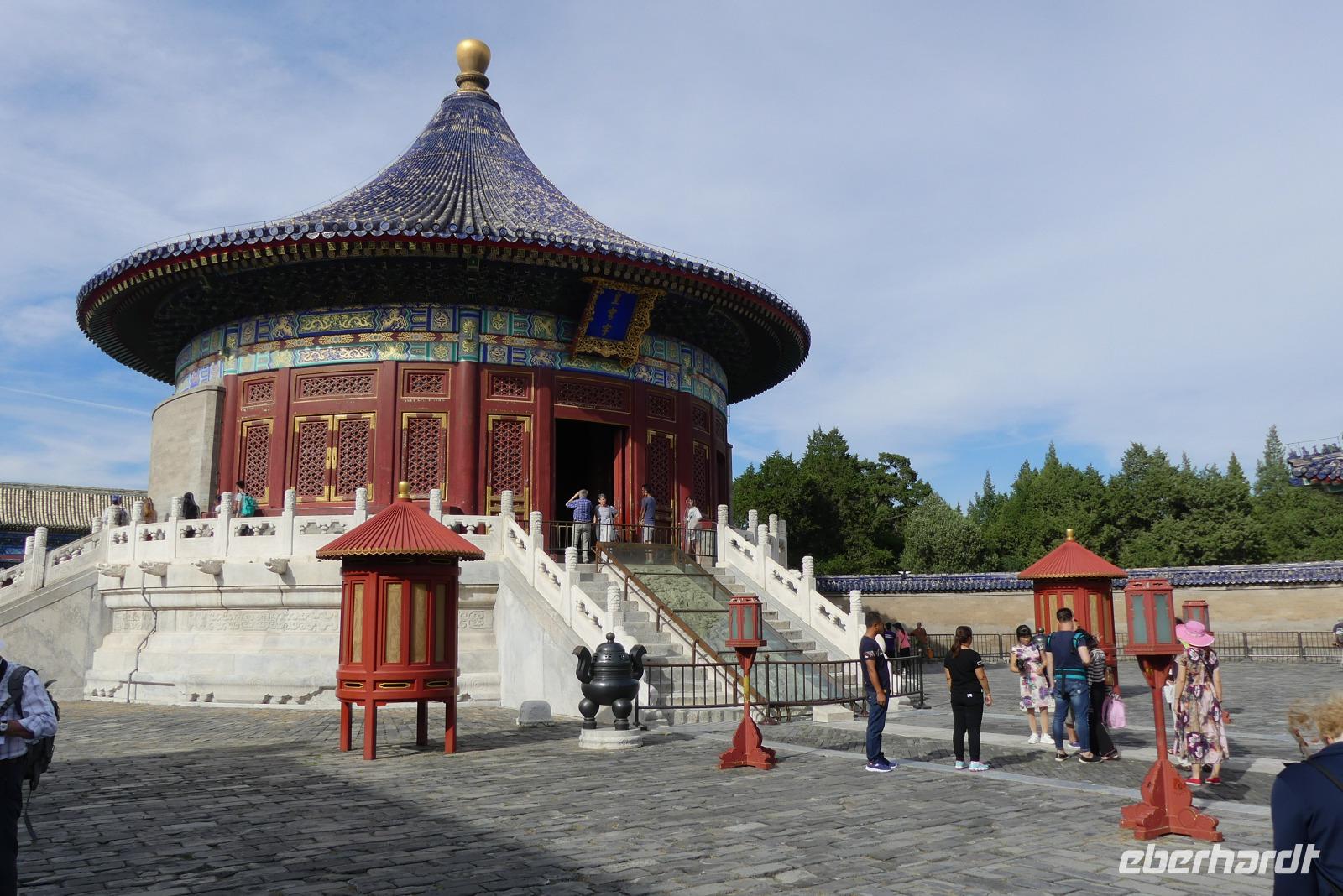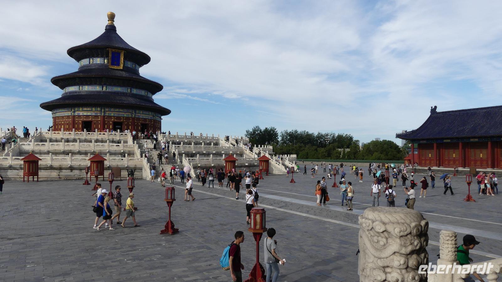 Es folgt die Besichtigung des weitläufigen Geländes mit Himmelsaltar und Himmelstempel. Jener Himmelstempel mit der Halle des Erntegebetes gehört mit seinem blauen, dreifachstufigen Dach zu den Wahrzeichen der Stadt.