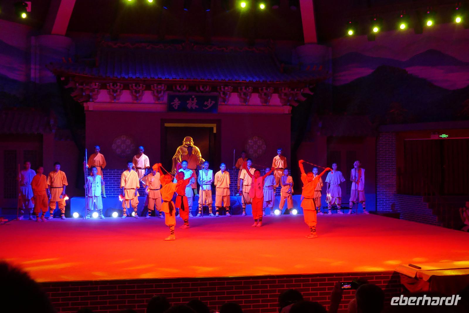 Nach den Abendessen gehen die Meisten von uns zur Kungfu-Show „Die Legende von Kungfu", eine passende Einstimmung für die morgige Besichtigung des Shaolin-Klosters. In der beeindruckenden Show wird die Lebensgeschichte eines kleinen Jungen erzählt, der durch intensives Lernen des Kungfu ein großer Meister wird.