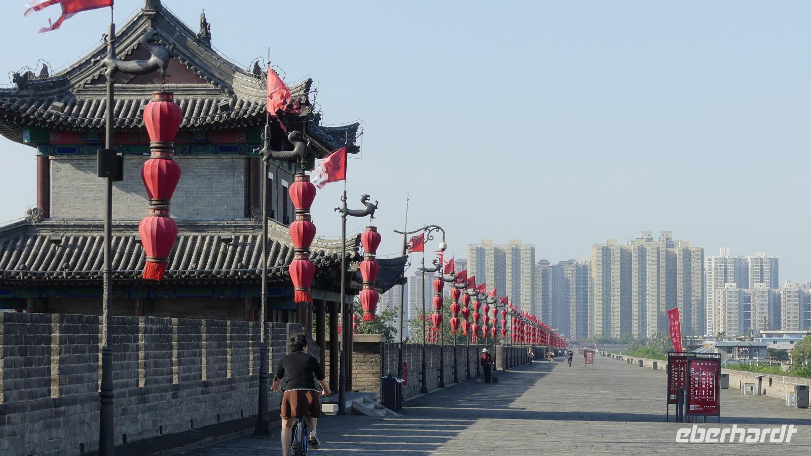 Xi´an war die alte Hauptstadt Chinas. Ihr Name bedeutet „westlicher Frieden". Heute leben so etwa 8 Millionen Menschen in der Stadt. Wir schauen uns heute die historische Stadtmauer, geschmückt mit unzähligen roten Lampions an. Mit fast 14 Kilometer Länge gilt sie als die größte erhaltene Stadtmauer in China.
