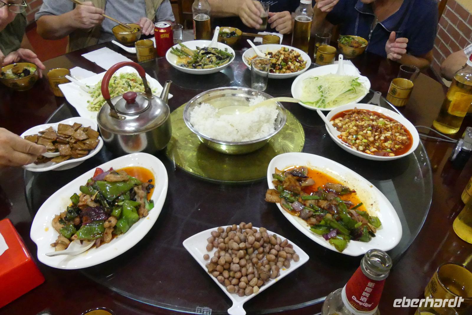 Unser Abendessen ist heute nicht inklusiv, aber Lin hat schon für uns ein einfaches Lokal ausgesucht. Für 10-12 Yuan bekommen wir schon ein schmackhaftes Essen.