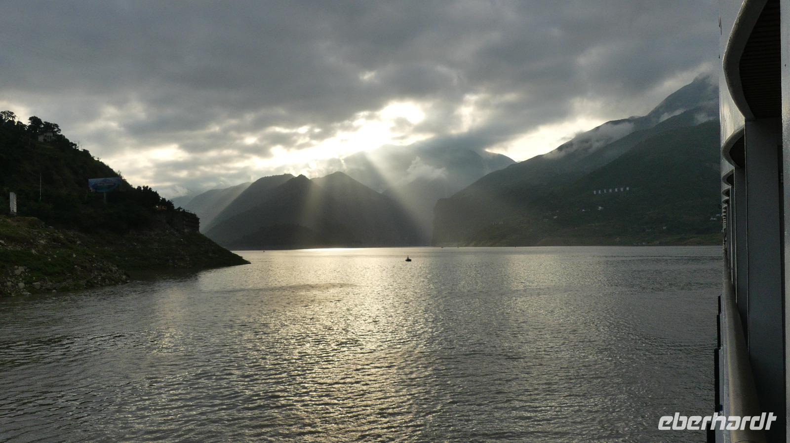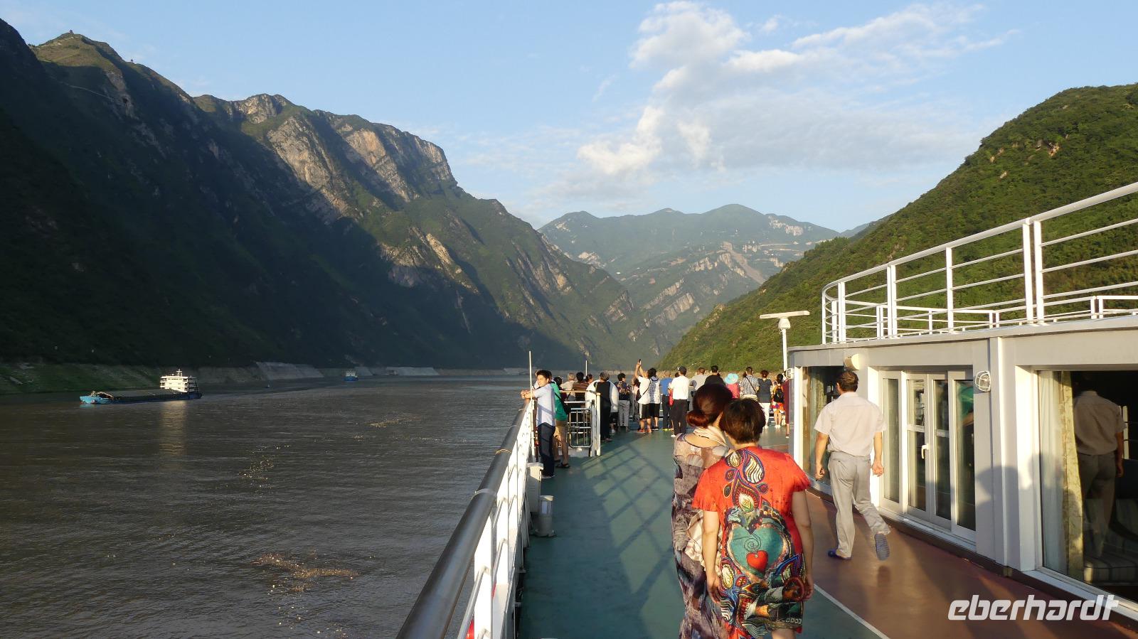 Nachts werden wir die dritte Yangtze-Schlucht erreichen und das Schleusensystem am Staudamm passieren.