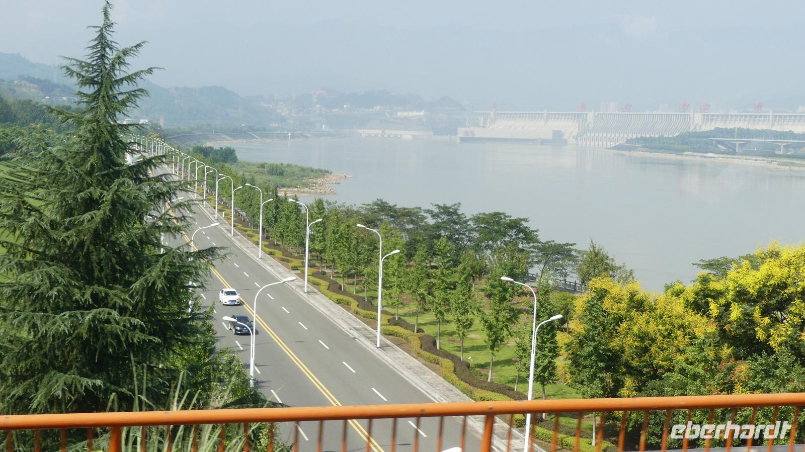 Wir fahren gerade im Schnellzug Richtung Nanjing. Zeit aufzuschreiben, was wir heute bisher erlebt haben: Der ein oder andere wurde am Morgen vielleicht durch seltsame Geräusche in den Schleusen schon zeitig wach. Nach dem Frühstück unternehmen wir einen von der der Reederei organisierten Ausflug zum den 3-Schluchten-Staudamm und seinen Schleusen. So können wir nachvollziehen, wie letzte Nacht unser Schiff 5 Schleusen hinabgestiegen ist. Von einer Aussichtsplattform, welche man per Rolltreppe (!) erreicht, können wir den weltgrößten Staudamm, Schiffshebeanlage und Schleusen besichtigen. Nur das schwül heiße Wetter beeinträchtigt die Sichtverhältnisse etwas. Gemeinsam mit unseren indischen Mitreisenden und einem gemischten Paar aus Österreich, kehren wir noch einmal zum Kreuzfahrtschiff zurück, um die letzte Etappe auf dem Yangtze bis Yichang zurückzulegen. Dabei durchquerten wir die letzte, die Xiling-Schlucht. Schließlich gehen wir in Yichang von Bord, halten in Yichangs Innenstadt um Mittag zu essen und ein Bierchen für die 6-stündige Bahnfahrt nach Nanjing einzukaufen, schließlich ist heute Bergfest.