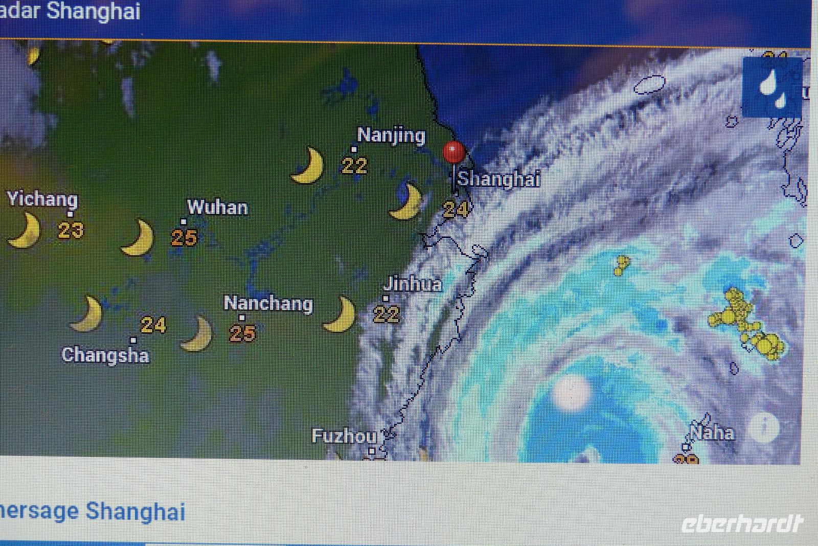 Nachher sehe ich mir im Internet die Wetteraussichten an: ein Taifun wird morgen die Küste erreichen und Shanghai streifen. Ich hoffe, wir können unser Programm trotzdem durchführen...