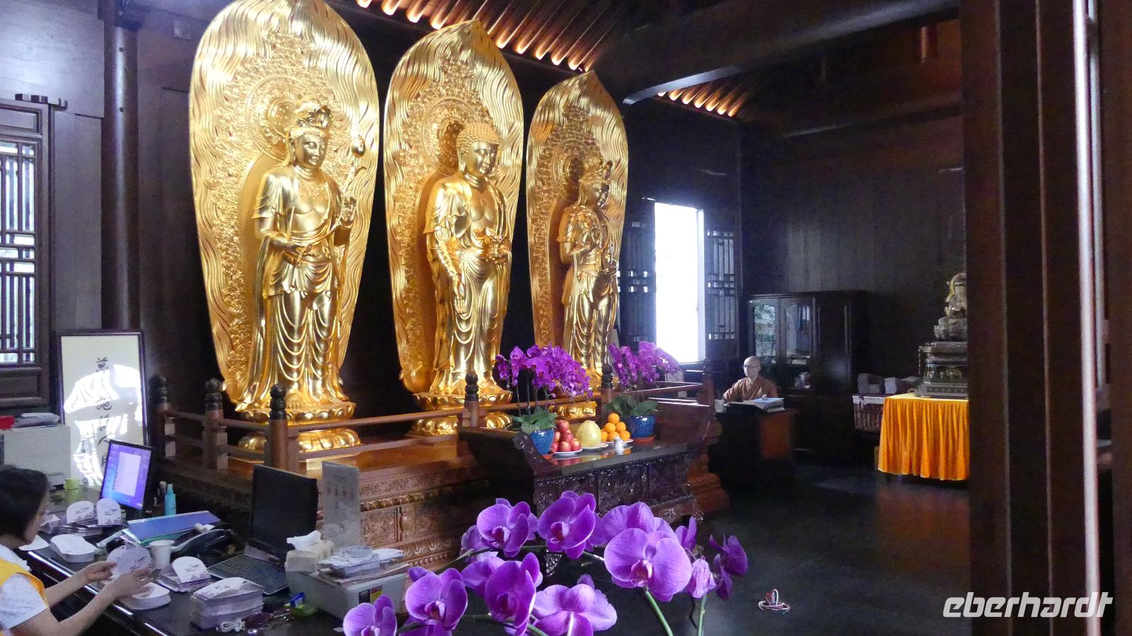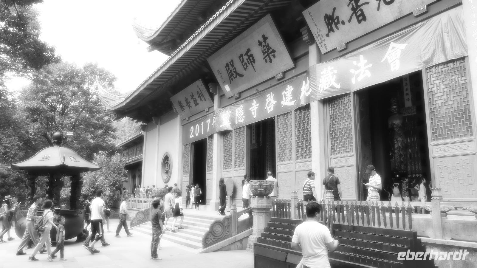 Wir erkunden heute Hangzhou, 2016 Gastgeber des G 20 Gipfels. Den berühmten Westsee von Hangzhou heben wir uns für den Nachmittag auf. Zunächst kommen wir zur Klosteranlage Lingyin Si „Tempelkloster der Wunder wirkenden Weltferne". Ein Rückzugsort für Buddhisten in einem grünen Tal, um sich der Welt zu entsagen. In einer der größten buddhistischen Tempelanlagen Chinas sind wir nicht die Einzigen. Aber zwischen den Besuchermassen finden wir unseren Platz.