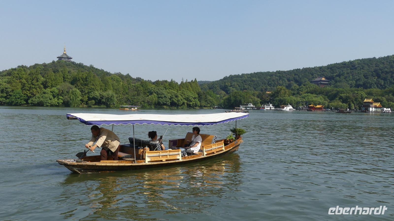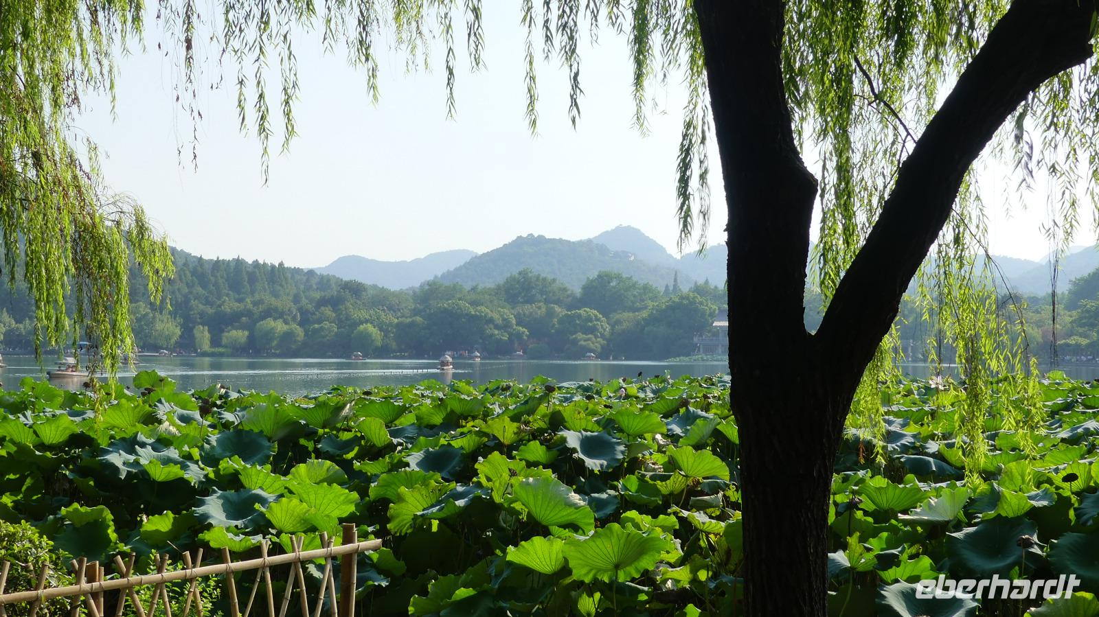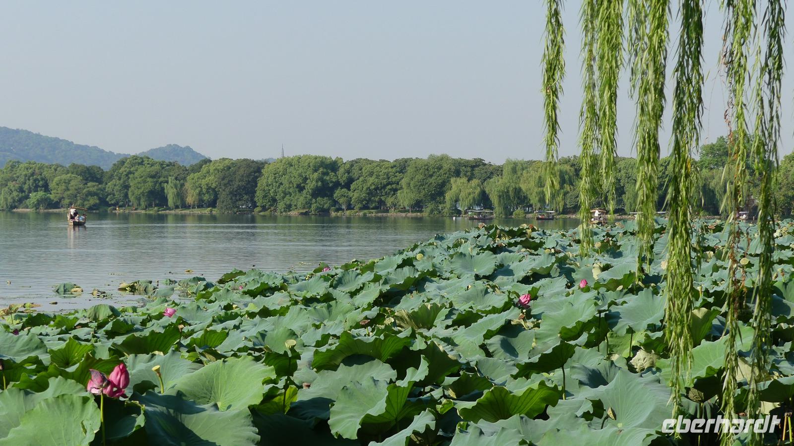Den Nachmittag verbringen wir am und auf dem Westsee, berühmtester See Chinas, von Kaisern in Peking kopiert und von Marco Polo hoch geschätzt. Zu schätzen wissen es auch sehr sehr viele Chinesen, besonders am Wochenende... Zunächst unternehmen wir eine Bootsfahrt auf dem Westsee und entdecken anschließend noch die weitläufigen Parkanlagen mit kleinen und größeren Seen und Lotuspflanzen.