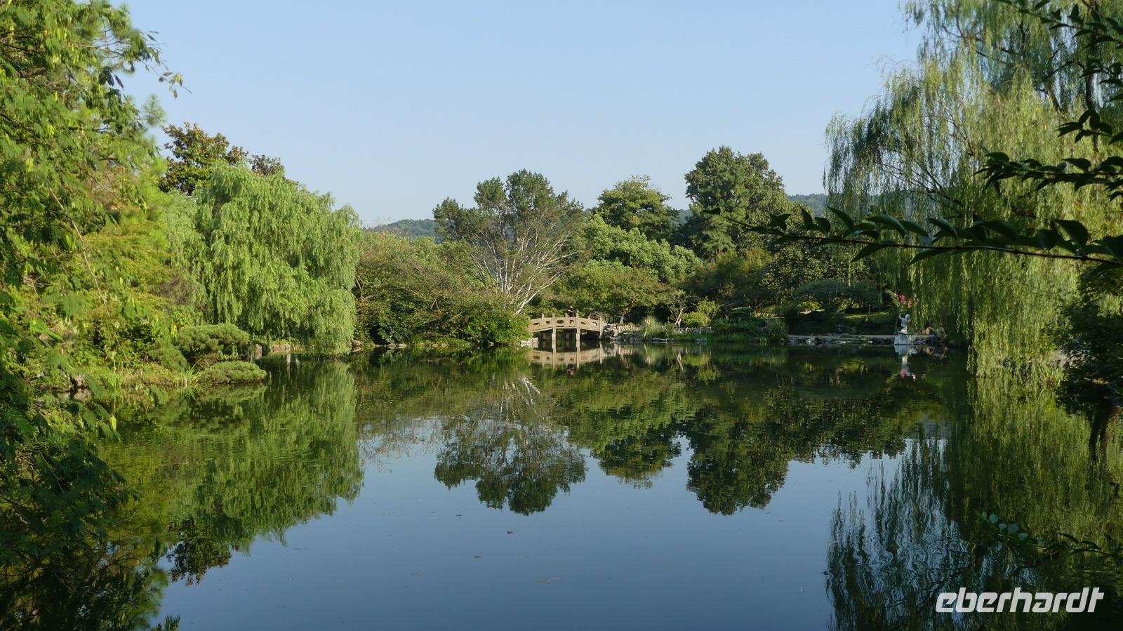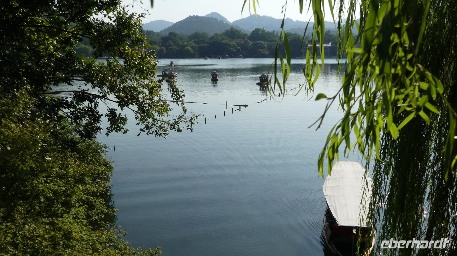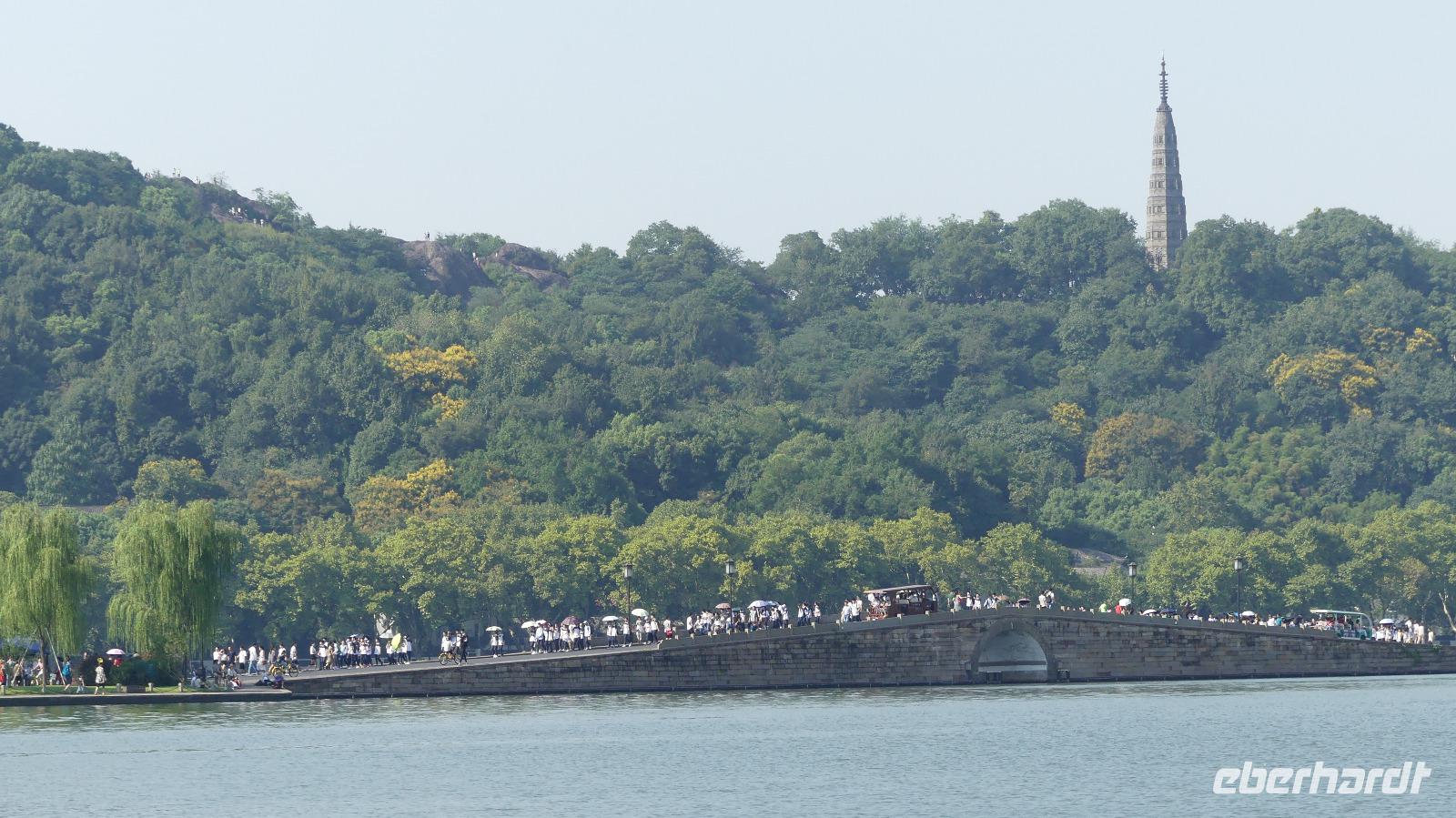 Den Nachmittag verbringen wir am und auf dem Westsee, berühmtester See Chinas, von Kaisern in Peking kopiert und von Marco Polo hoch geschätzt. Zu schätzen wissen es auch sehr sehr viele Chinesen, besonders am Wochenende... Zunächst unternehmen wir eine Bootsfahrt auf dem Westsee und entdecken anschließend noch die weitläufigen Parkanlagen mit kleinen und größeren Seen und Lotuspflanzen.