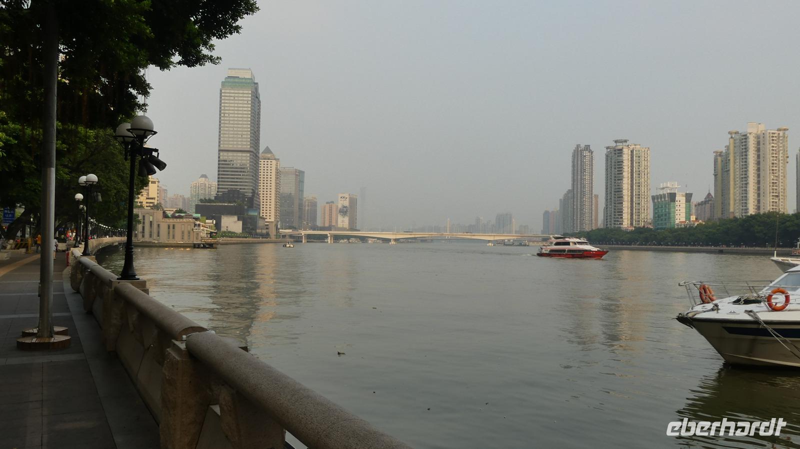 Am Nachmittag beziehen wir unser Hotel in der Nähe des Perlenflusses. Uns bleibt noch Zeit, die Umgebung auf eigene Faust zu erkunden, zum Beispiel mit einem Spaziergang an der Uferpromenade oder durch die Fußgängerzone der Bejing Road. Abends essen wir zwar lokale Gerichte, verzichten aber auf exotische Tiere. Lin meinte mal: die Kantonesen essen alles was fliegt, außer Flugzeuge, sie essen alles was im Wasser schwimmt, außer Boote und sie essen alles was vier Beine hat außer Tische und Stühle.