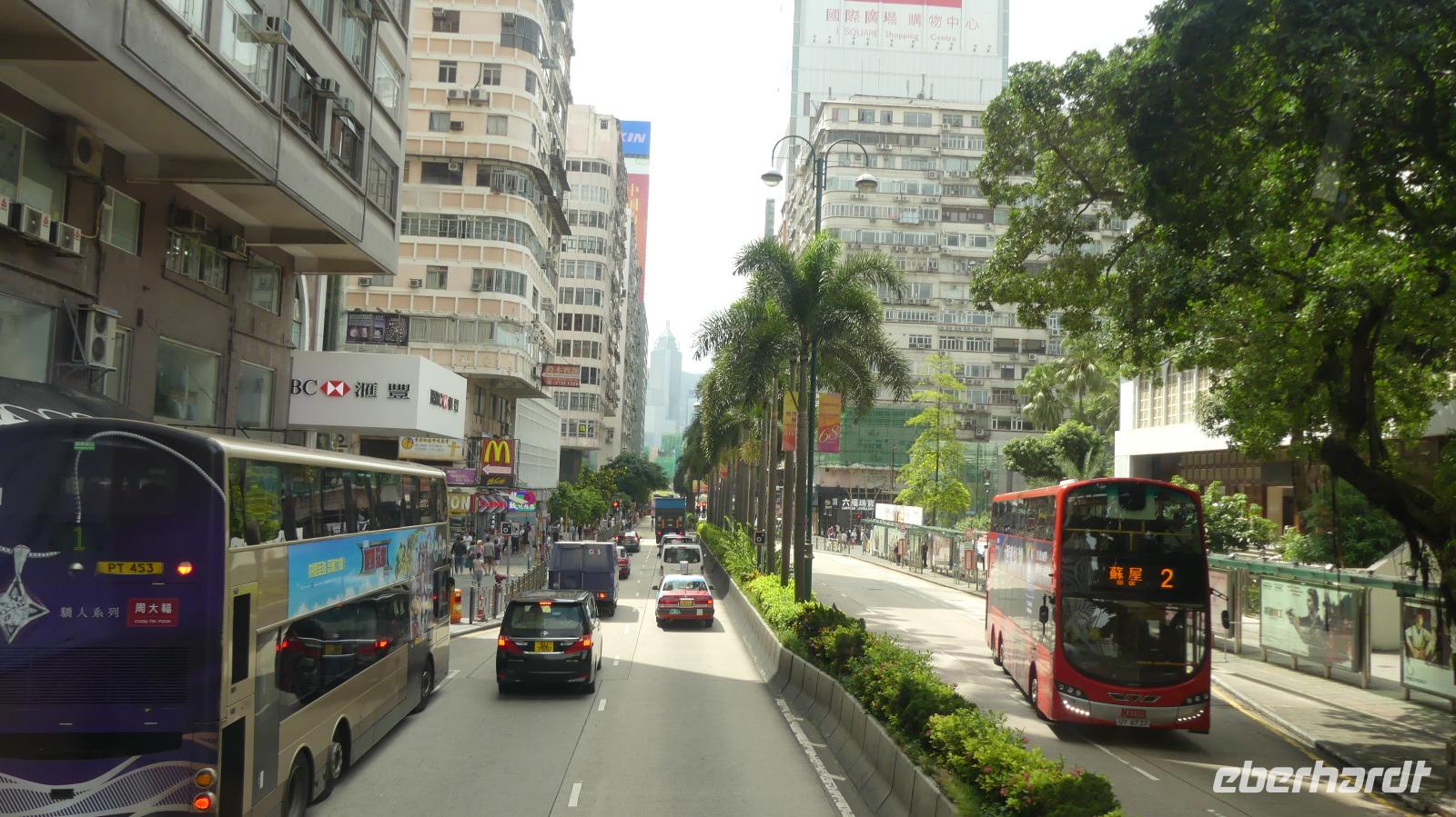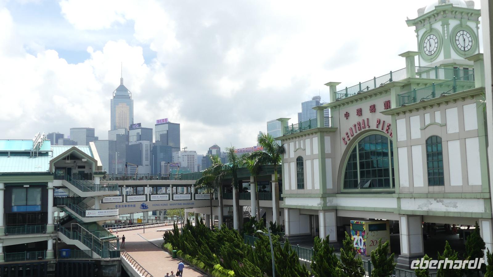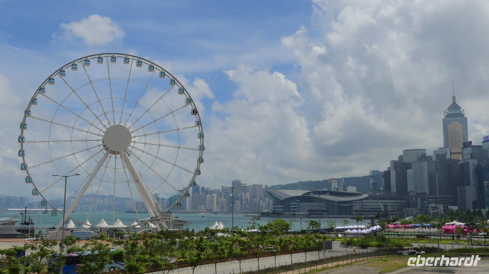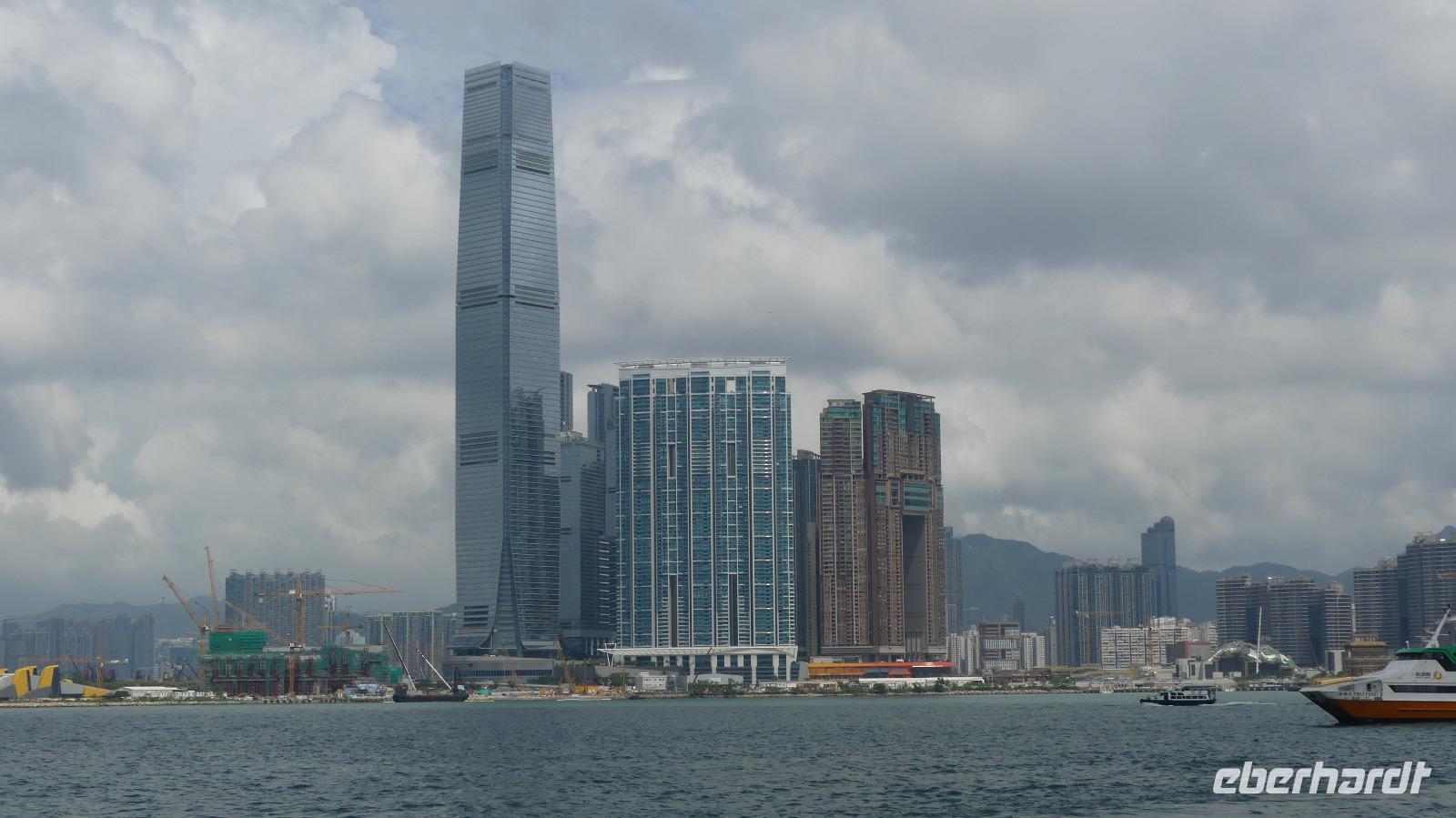 Mit der Fähre, einem schnellen Katamaran reisen wir jetzt nach Hongkong. Je näher wir der Sonderzone Hongkong kommen, umso besser wird das Wetter und meine Hoffnung auf gute Sichtverhältnisse wachsen. Schließlich gehen wir bei schönem Sonnenschein in Hongkong von Bord. Obwohl seit 1997 zu China gehörend ist es doch eine Reise wie in ein eigenes Land: Aus- und Einreiseformalitäten, sie haben ihre eigene Währung, auf den Straßen fahren sie links, sie haben eigen Pässe und plötzlich können alle Chinesen englisch sprechen zu dem berühmten Aussichtspunkt und es wirklich ein sehr beeindruckender Blick! Hier liegt uns bei besten Sichtverhältnissen Hongkong zu Füßen, was für ein Glück wir haben.