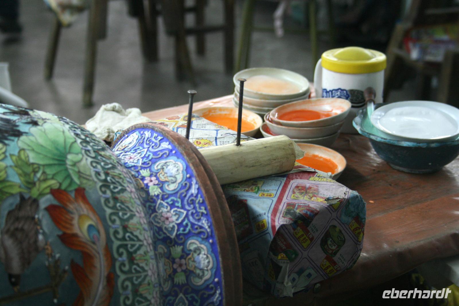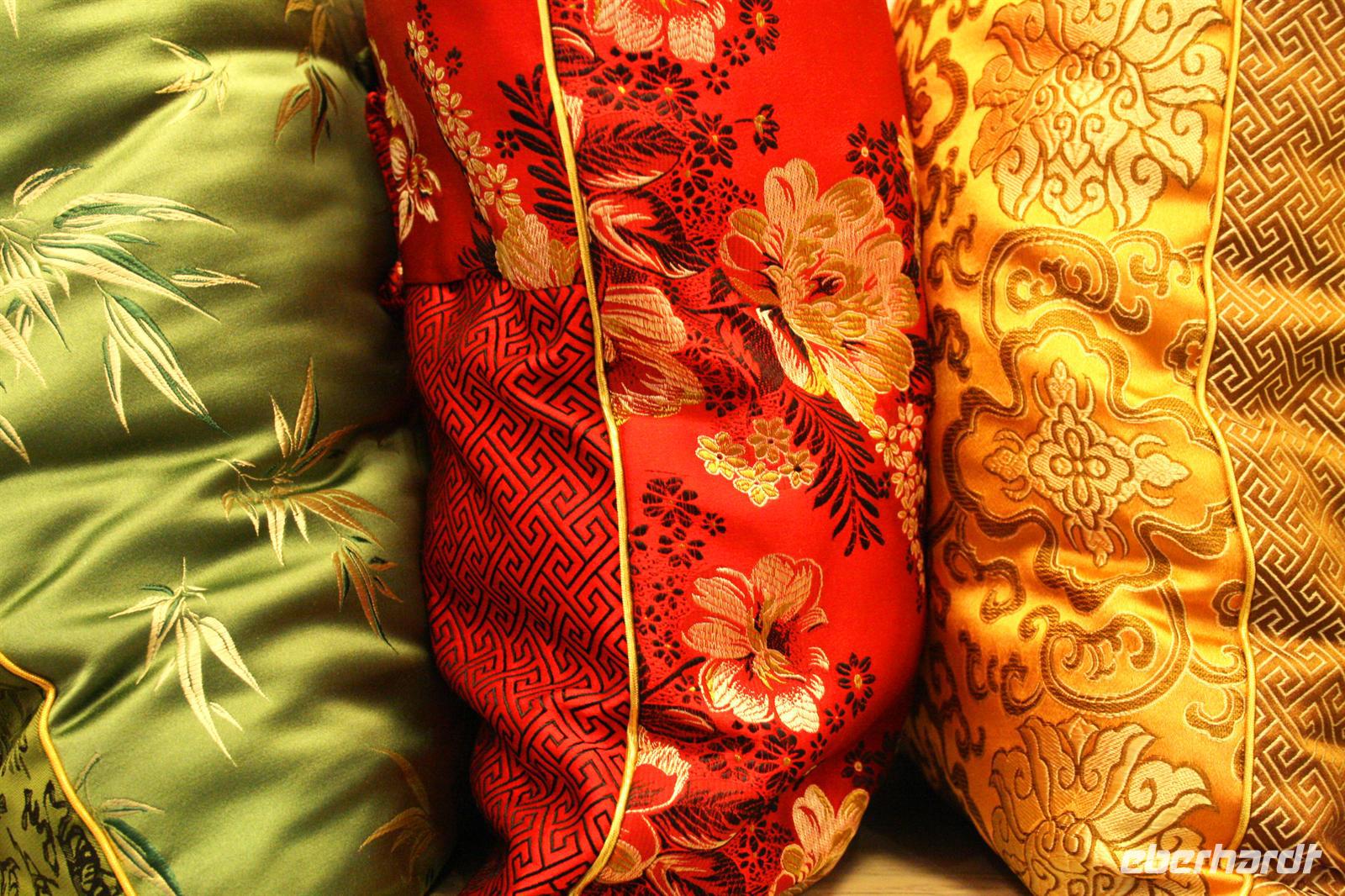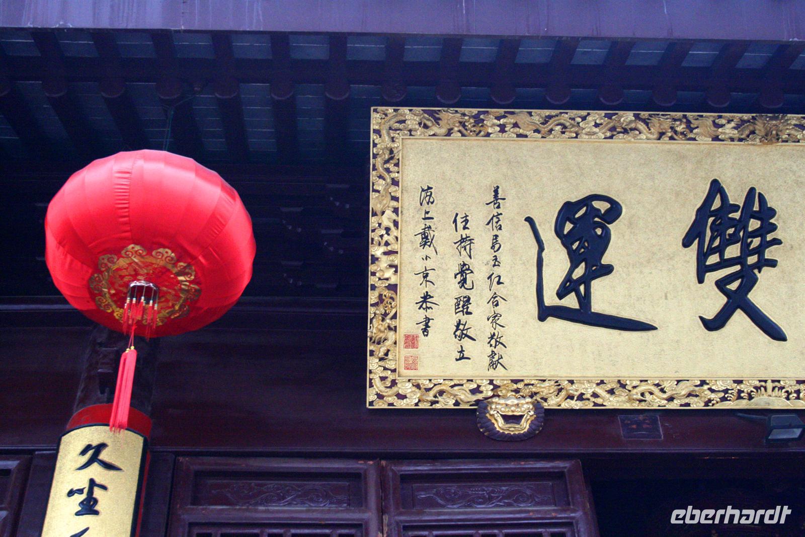 In Hangzhou hatten wir die Möglichkeit, durch die wundervolle Altstadt zu schlendern. Entlang der Hefang-Straße hingen überall rote Lampions, die Atmosphäre war auch durch die traditionelle Architektur unvergesslich. Wir machten Halt an einer TCM-Apotheke, die zu den schönsten in ganz China zählt und landesweit bekannt ist (TCM = Traditionelle Chinesische Medizin). Alles war reich mit Holzschnitzereien verziert, die Angestellten wuselten herum und packten Aufträge nach Rezept zusammen, indem sie aus verschiedenen Kräutersäckchen eine Mischung zubereiteten.