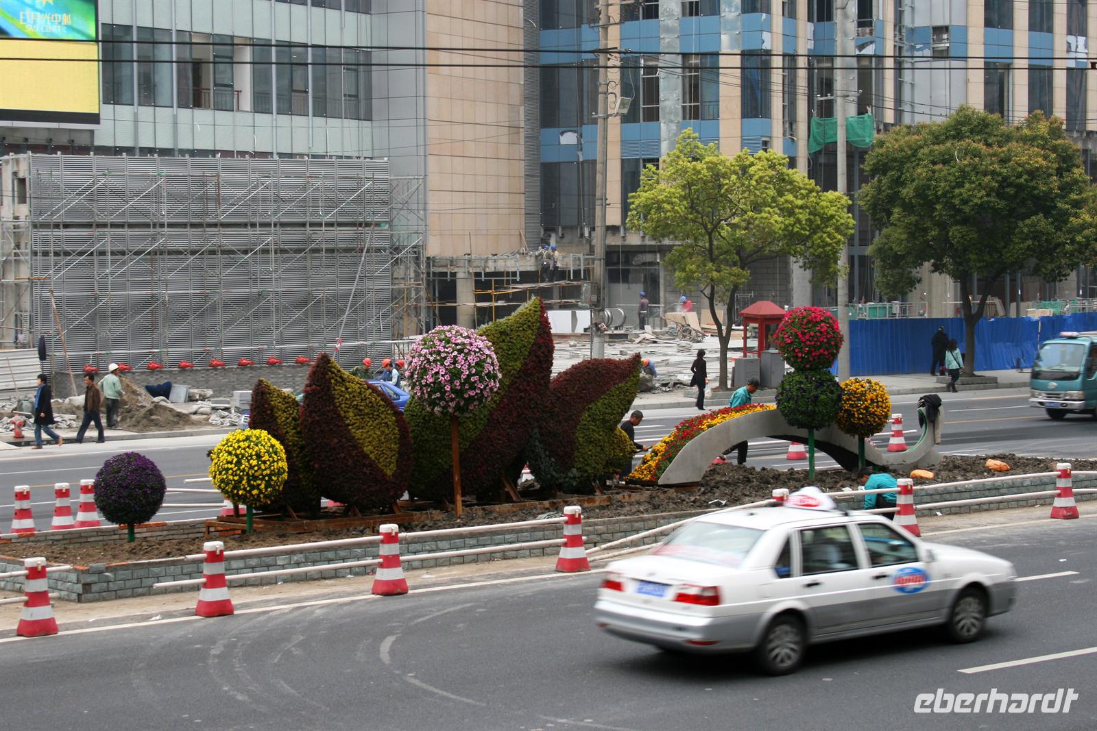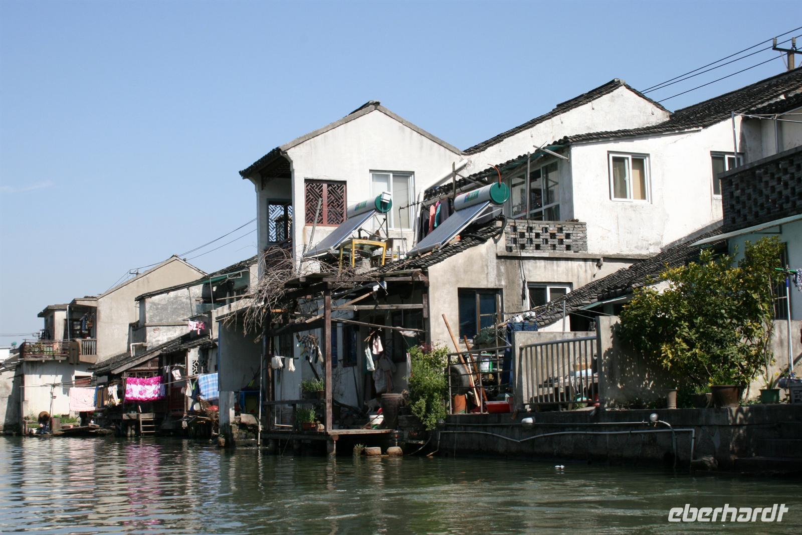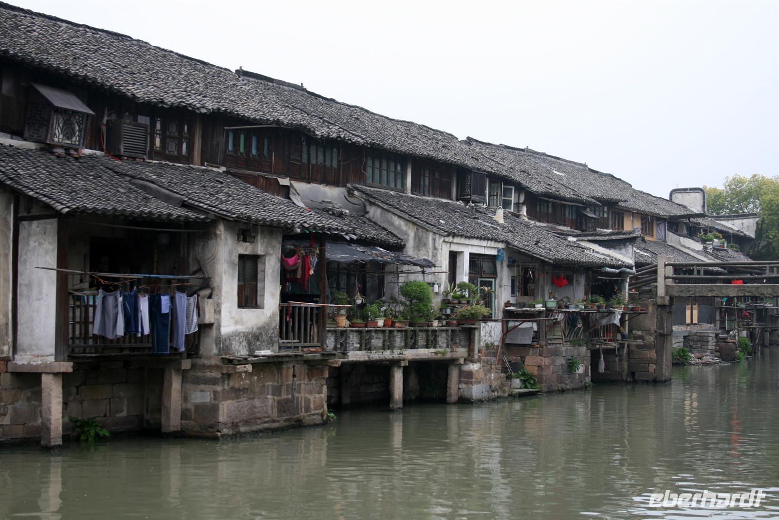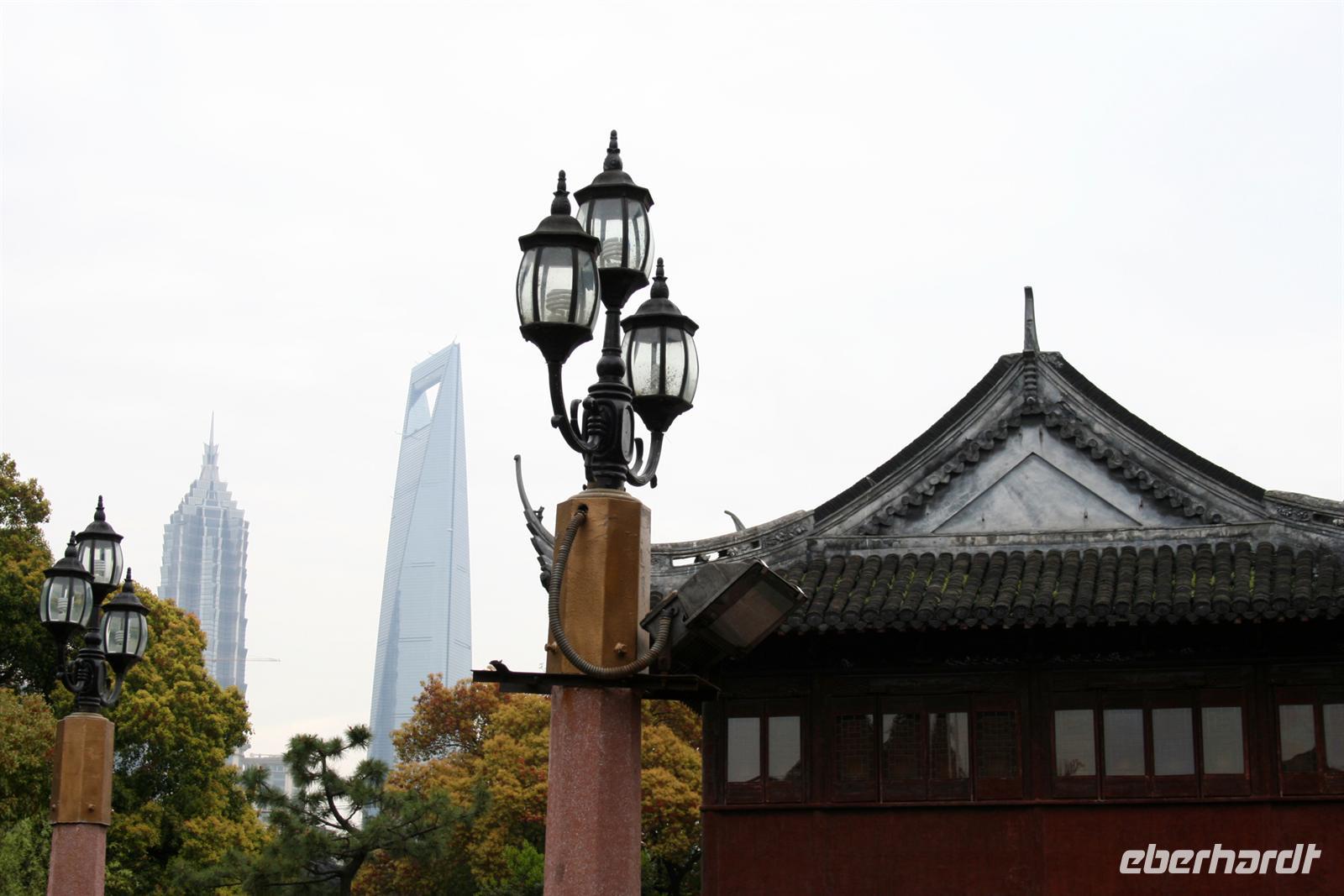 In Suzhou, auch „Venedig des Ostens“ genannt, hatten wir fakultativ die Möglichkeit, eine mehrstündige erlebnisreiche Rikschafahrt zu unternehmen, an der auch alle teilnahmen. Zwischendurch hielten wir in einem Lebensmittel-Markt, für einen Bummel auf einem Tiermarkt und in einem der typischen Gärten, die so viel Ruhe ausstrahlen. Unser Rikschafahrer war sehr nett und half uns immer beim Einsteigen in das Gefährt. Er lachte viel und legte sich ins Zeug für uns. Bei der Fahrt durch die Straßen wurde es teilweise ganz schön eng und überall fuhren Autos, Mopeds und Fahrräder durcheinander. Vorbei an den Kanälen der schönen Stadt genossen wir den Fahrtwind. Danach fuhren wir mit dem Bus weiter nach Shanghai.