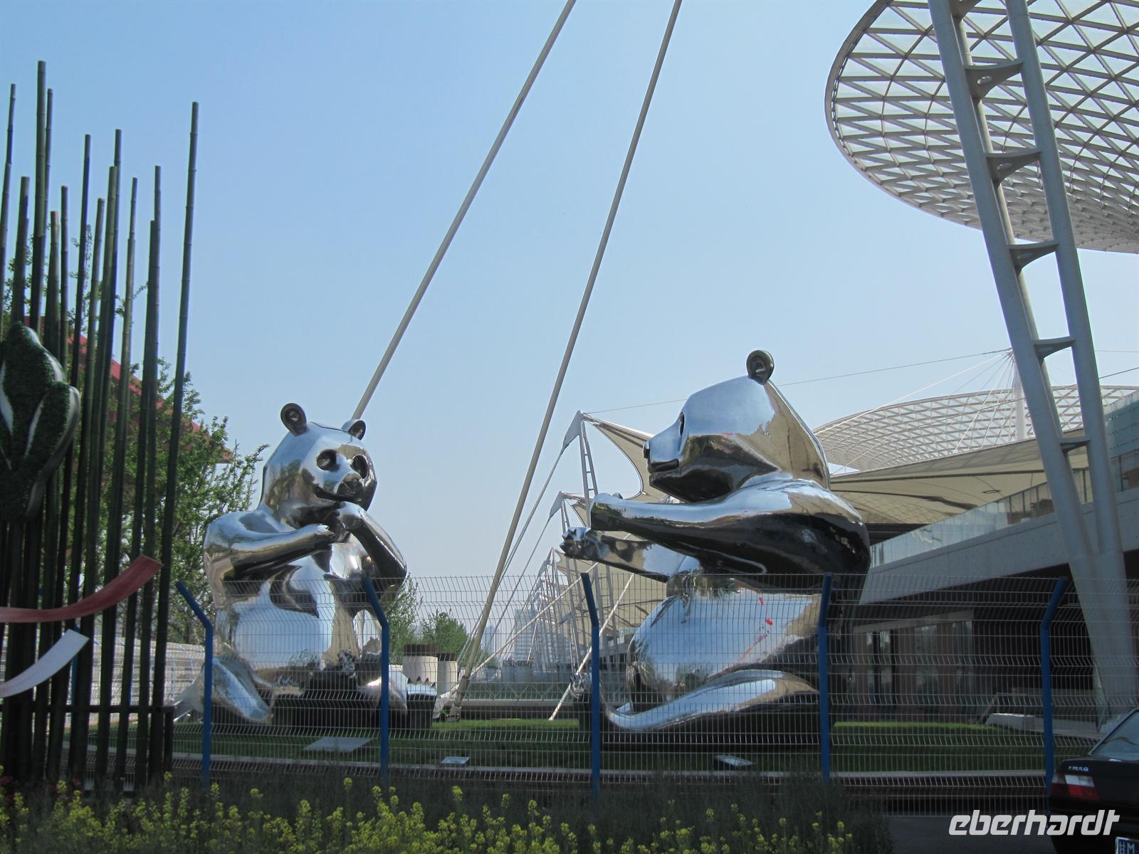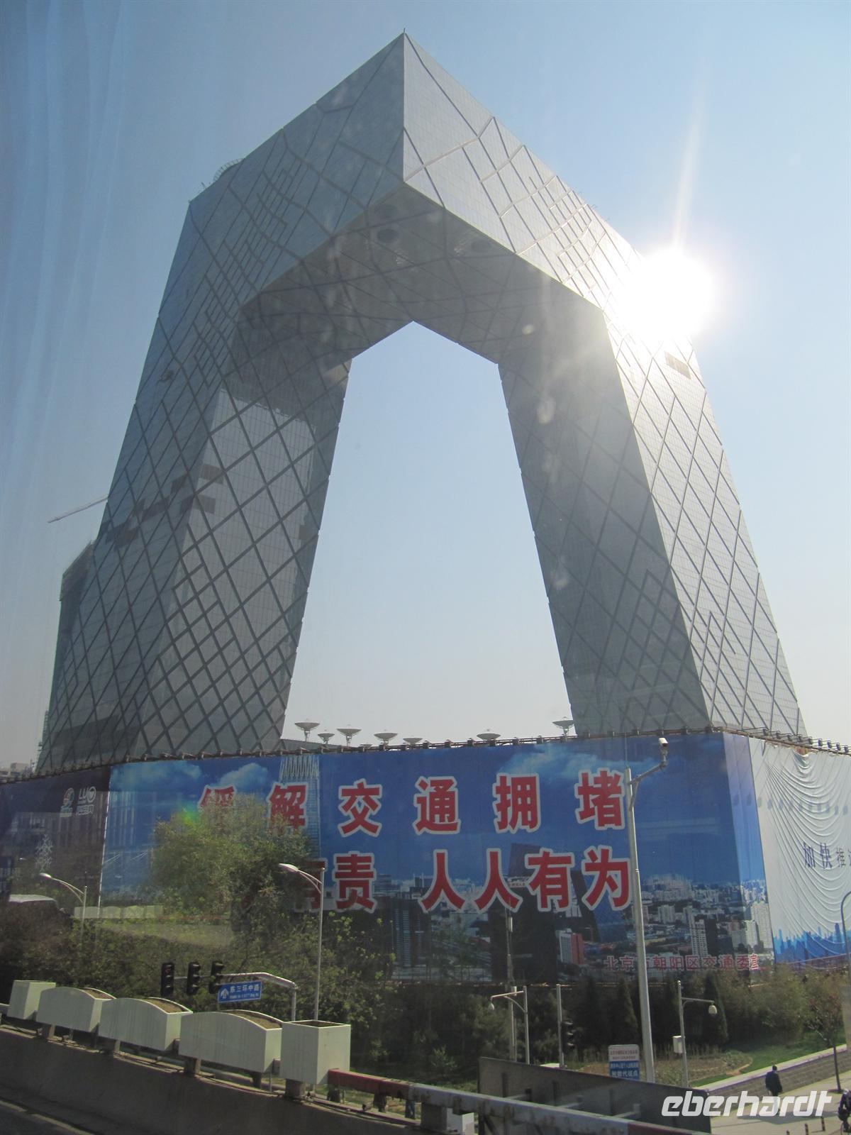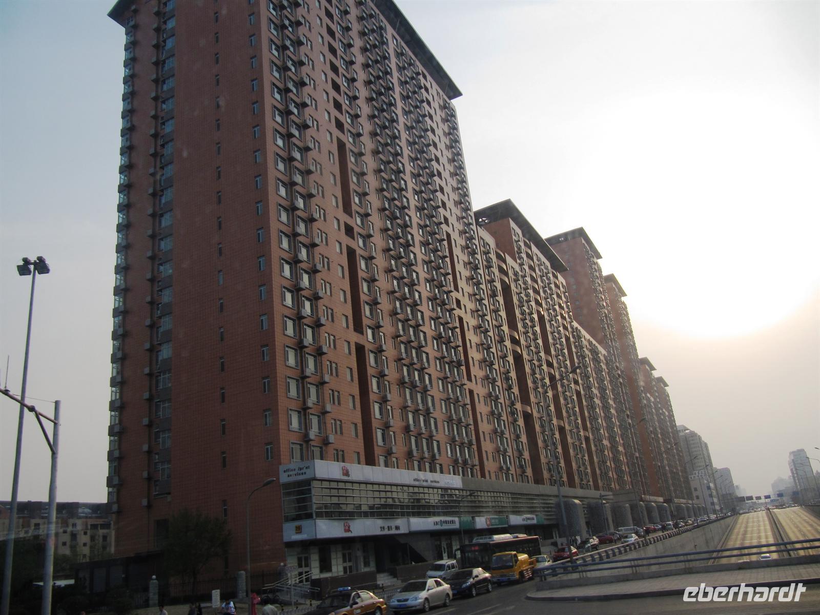 Auf der Rückfahrt nach Peking machten wir einen kleinen Abstecher zu einem Teil der Olympiaanlagen, auf welche wir im vorbeifahren einen kurzen Blick erhaschen konnten. Vor allem das architektonisch außergewöhnliche Olympiastadion, das “Schwalbennest“, bildete einen wunderbaren Kontrast zu den hoch aufragenden Bürotürmen der City.