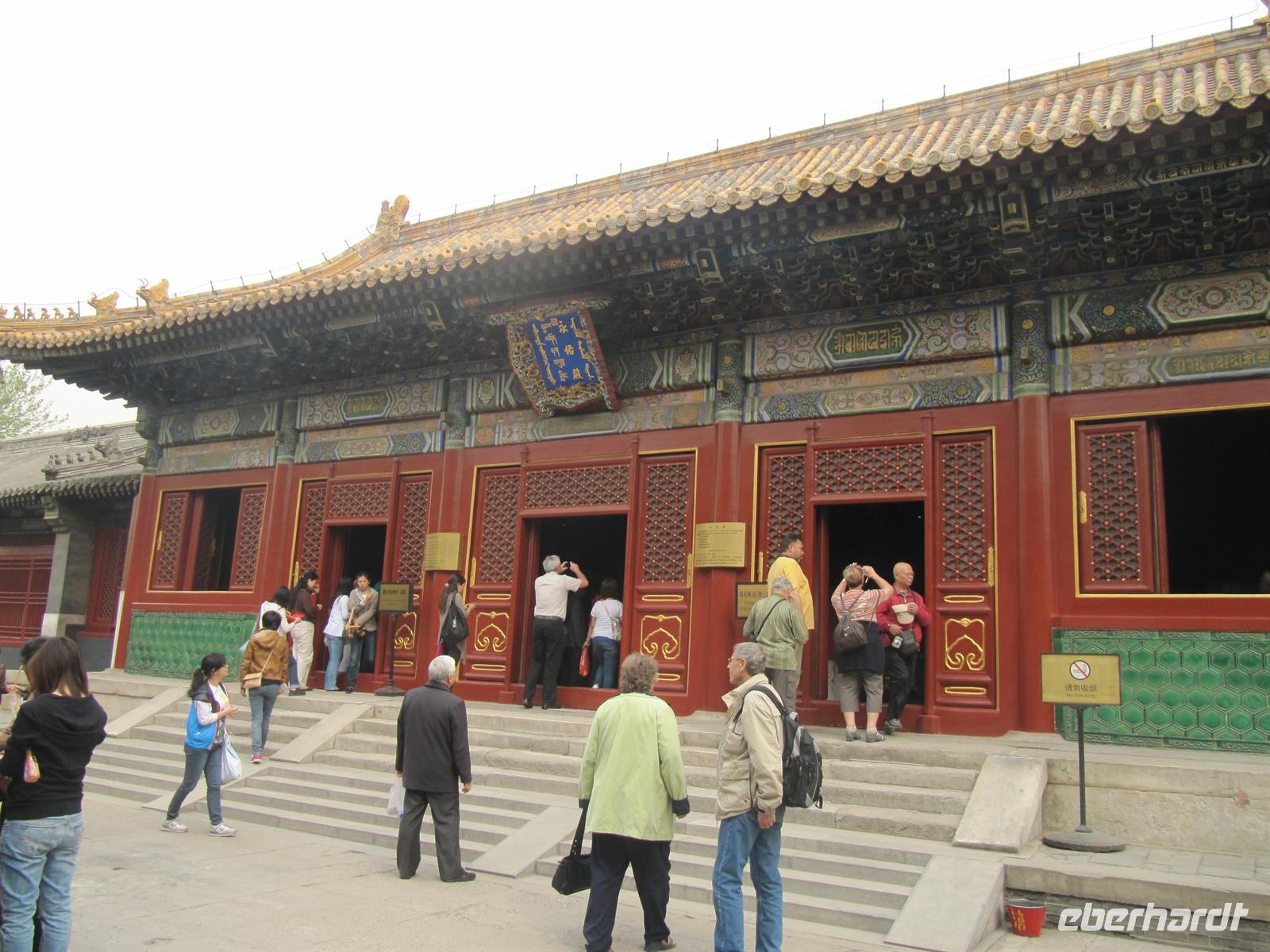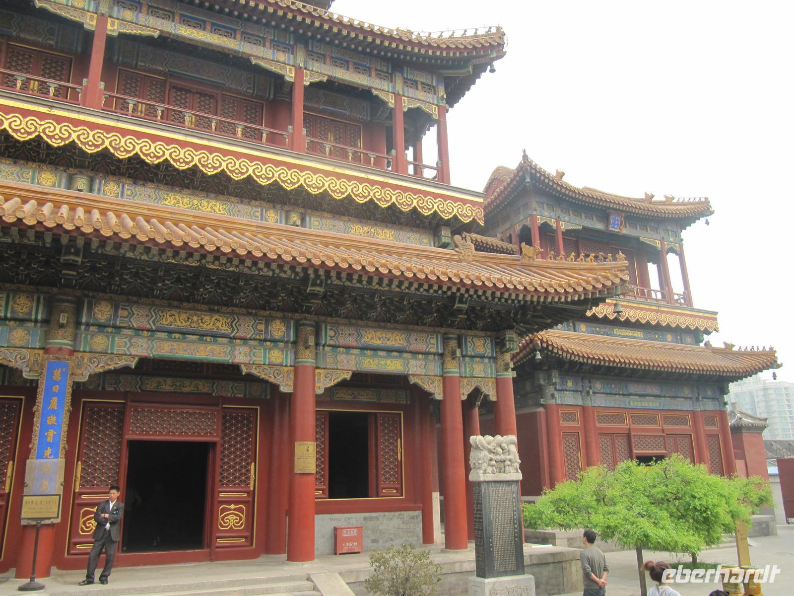 Heute war unser letzter Tag in Peking, den wir verließen die Stadt Richtung Xi’An. Doch bevor es zum Flughafen ging, machten wir noch einen letzten Stopp im tibetischen Lamatempel. Die Anlage besteht aus mehreren Gebäuden, die viele buddhistische Statuen und Reliquien der sogenannten Gelbmützensekte beherbergen. In der letzten Halle, der Pagode des unendlichen Glücks, ist eine 26 Meter hohe Statue des Buddhas Maitreya zu bewundern, die aus einem Stamm hergestellt wurde und dadurch einen Eintrag in das Guinness Buch der Rekorde 1990 bekam.