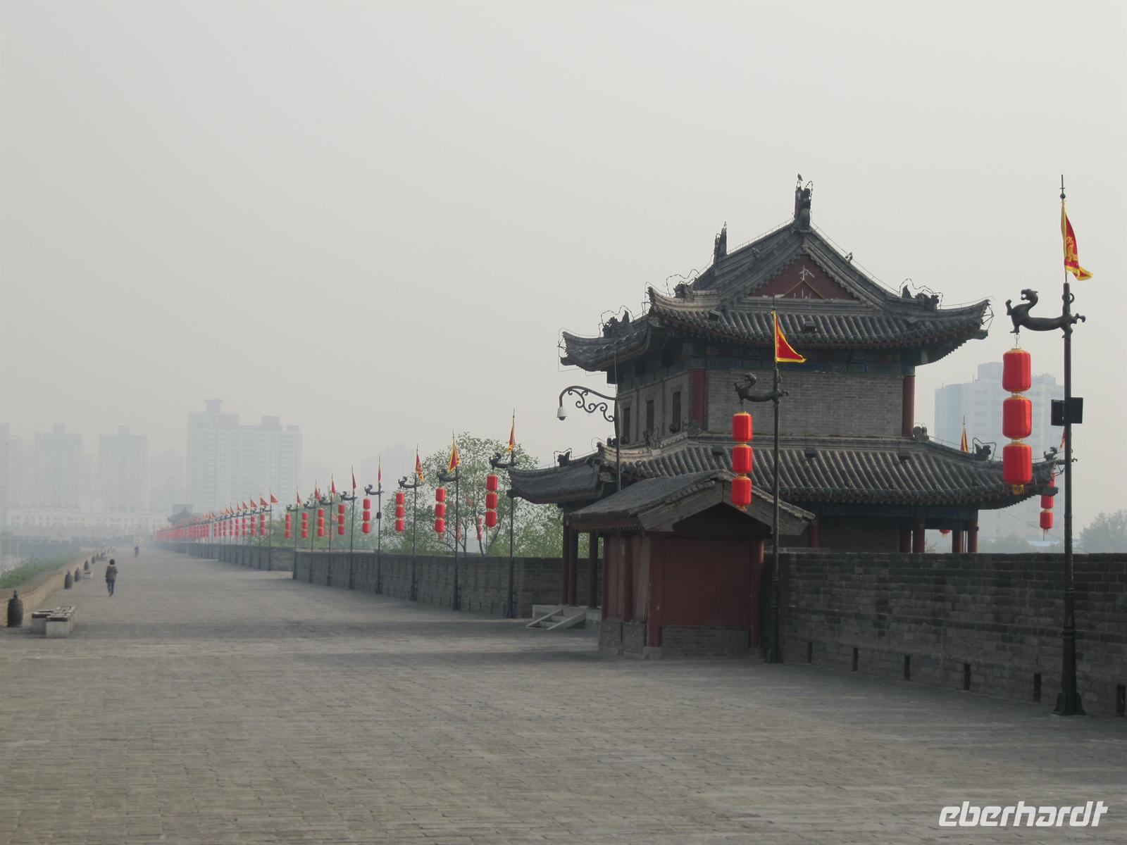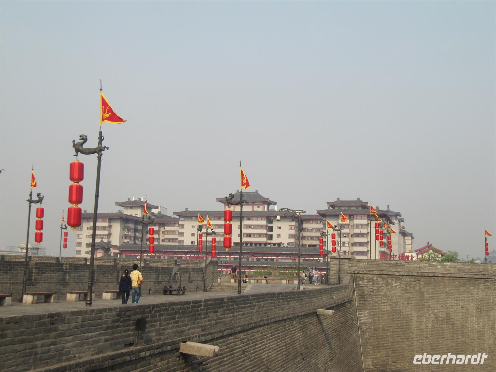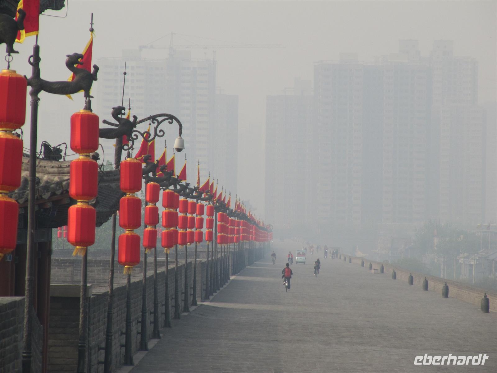 Anschließend ging es zum Flughafen, von wo aus wir nach Xi’An, der Hauptstadt der Provinz Shaanxi, starteten und am frühen Nachmittag nach knapp anderthalbstündigem Flug wohlbehalten ankamen. Unsere örtliche Reiseleiterin Han Mei, was übersetzt soviel wie Kirschblüte bedeutete, erwartete uns bei strahlendem Sonnenschein, um uns die ersten Eindrücke von Xi’An zu