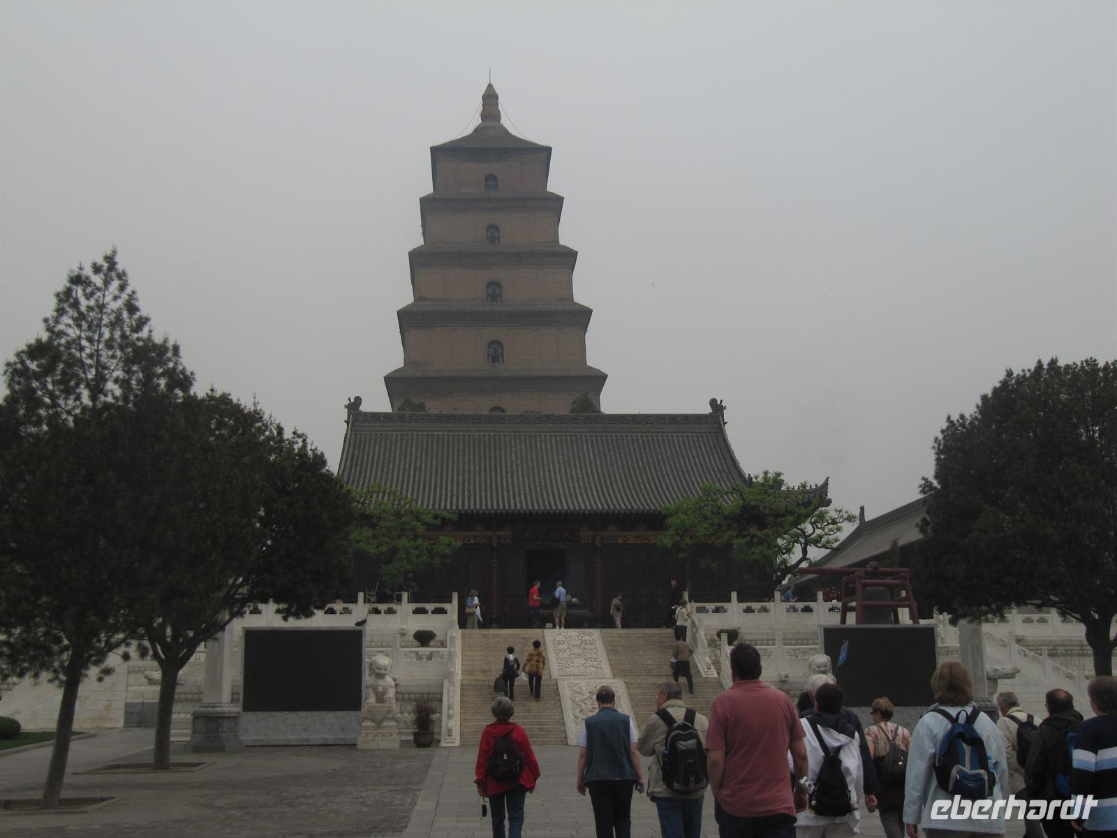 Unser erster Weg an diesem Tag führte uns in den Süden der Stadt, zur 64 Meter hohen, siebenstöckigen Großen Wildganspagode. Wer will, kann bis in das oberste Stockwerk steigen und hat von dort aus einen fantastischen Blick über die Stadt. Weiter ging es dann zu einer Jadeschleiferei, ein Handwerk, welches in und um Xi’An seit Jahrhunderten große Tradition besitzt. Wir erfuhren hier vieles zu den einzelnen Jadequalitäten, zu Vorkommen in der Region und zur Bearbeitung.