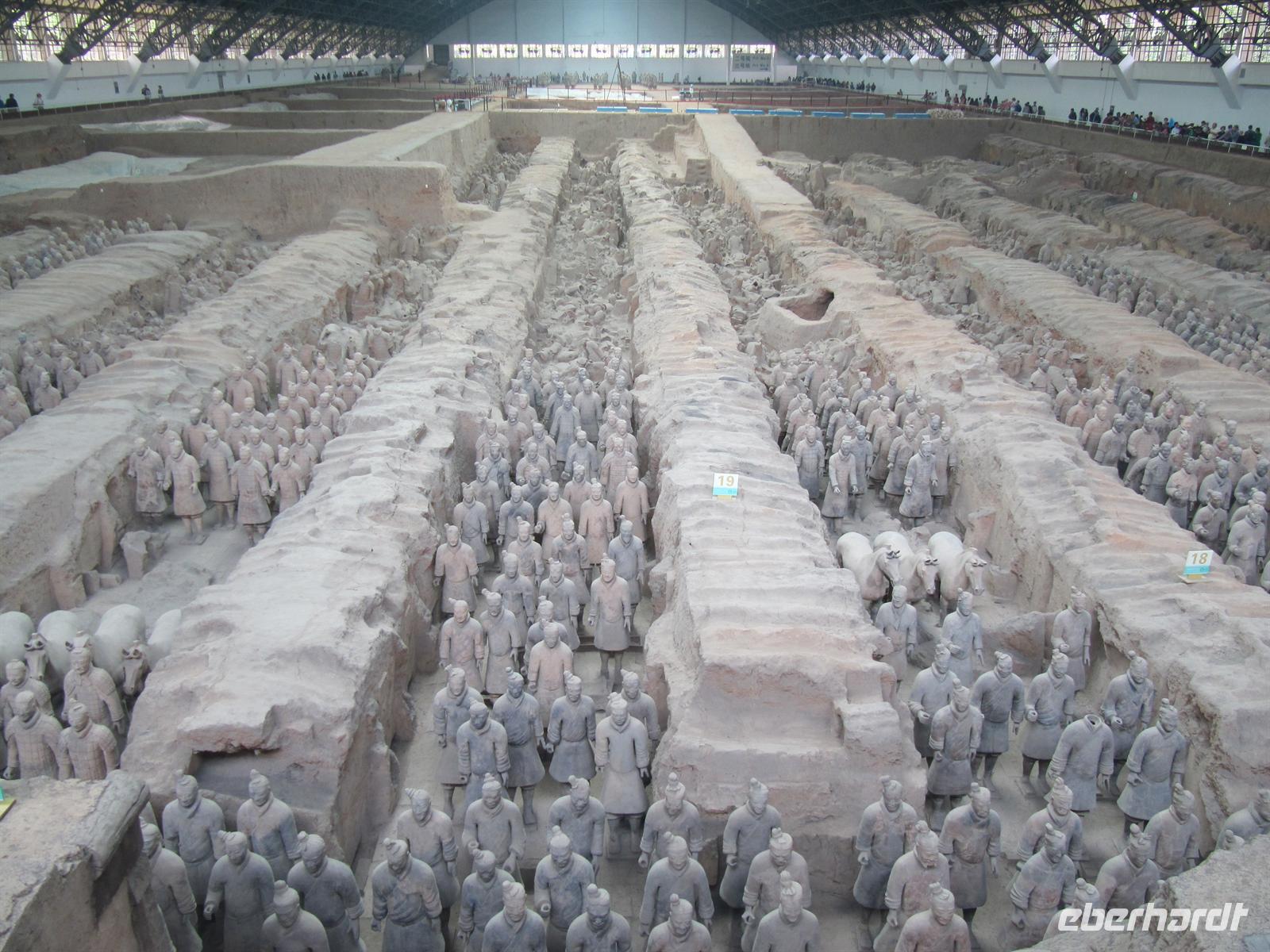 Grabanlage wurde durch Zufall im Jahr 1974 wiederentdeckt und versetzt seitdem durch die Ausgrabungen der Terrakotta-Armee die interessierte Welt in Staunen und Verzücken. Jeder, der einmal diese tönernen Zeitzeugen in Lebensgröße bewundern durfte, kann verstehen, was Millionen Besucher aus aller Welt alljährlich hierher zieht.