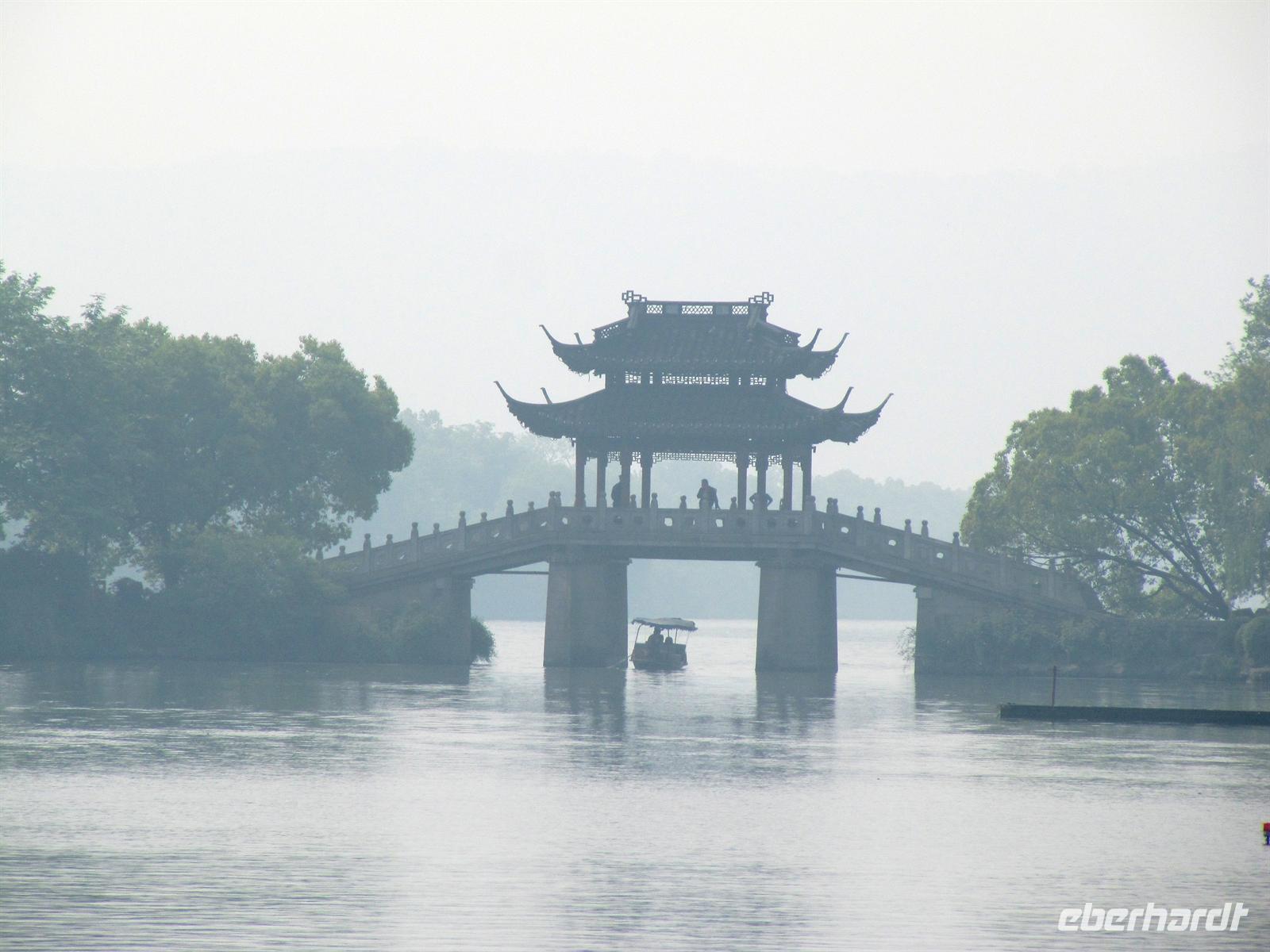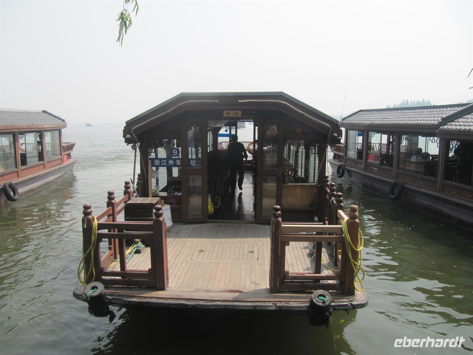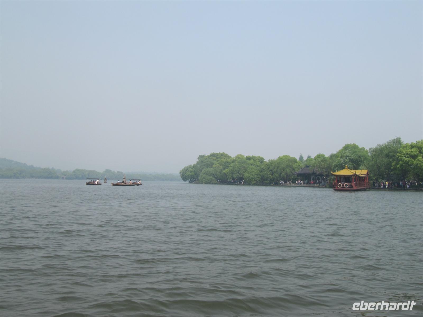 Heute steht ein anstrengendes Programm auf unserer Tagesordnung. Nach einem reichhaltigen Frühstück besteigen wir unseren Bus und fahren zum sagenumwobenen Westsee, mit einer Fläche von 5,6 km² und einer maximalen Tiefe von 3 Metern das städtische Kleinod und der Ruhepol der, laut dem Venezianer Marco Polo, einstmals schönsten Stadt der Welt. Zuerst besichtigen wir den Bonsaigarten bevor wir eine kleine Bootsrundfahrt über den Westsee unternehmen. Anschließend lassen wir uns von den unzähligen Besuchergruppen durch die wunderschönen Parkanlagen schieben und genießen jeden Quadratzentimeter freien Raumes zur selbstbestimmten Entdeckung der Fauna und Flora. Schönheit will halt geteilt sein.