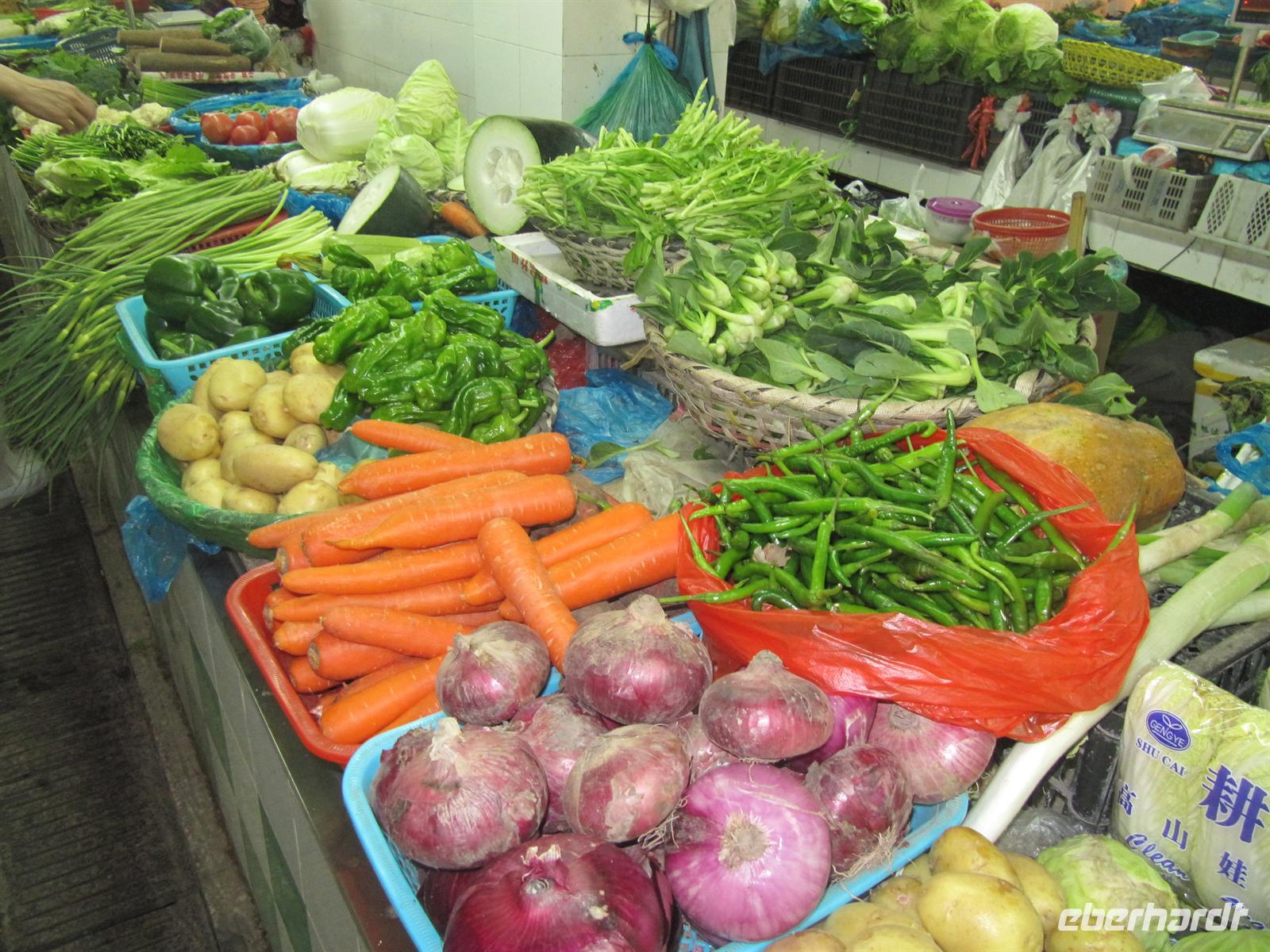 Zurück in Pekings Innstadt genossen wir ein leckeres Abendessen mit Hühnchen, Rind- und Schweinefleisch, diversem Gemüse, Reis, Suppe und Früchten. Wie immer wurde alles auf an einem runden Tisch auf einer großen, drehbaren Glasplatte serviert, so dass jeder nach Geschmack und Vorlieben speisen konnte.